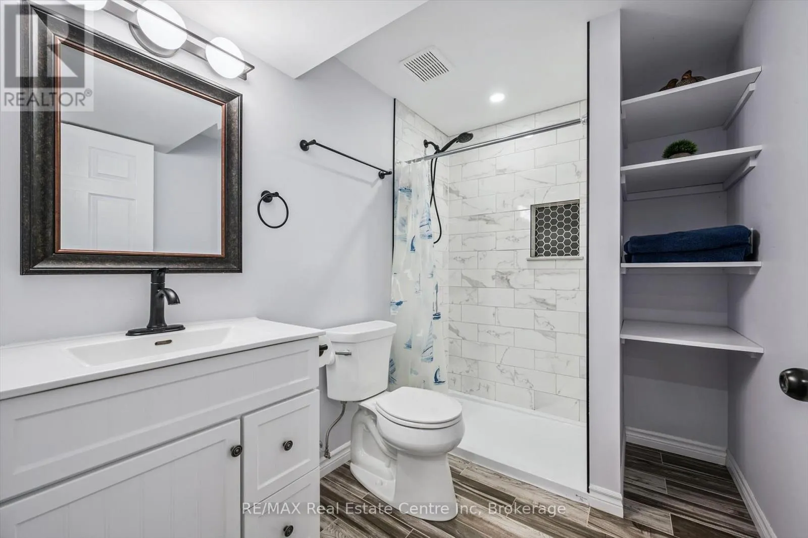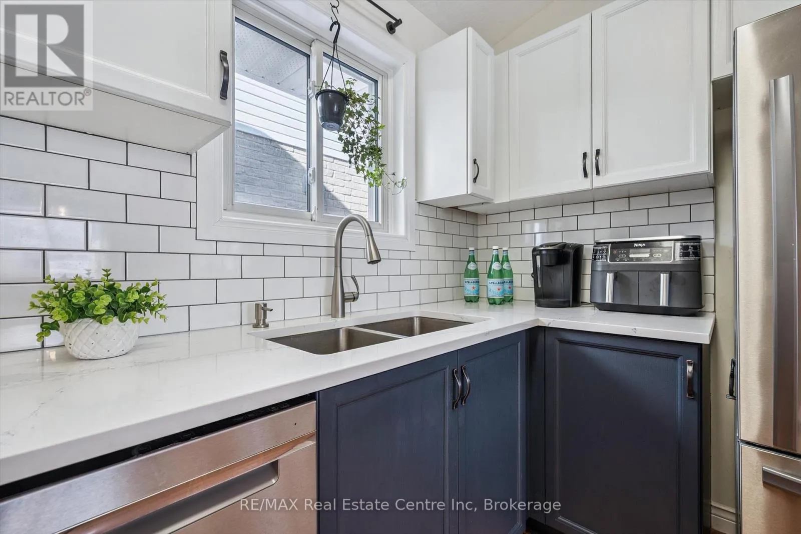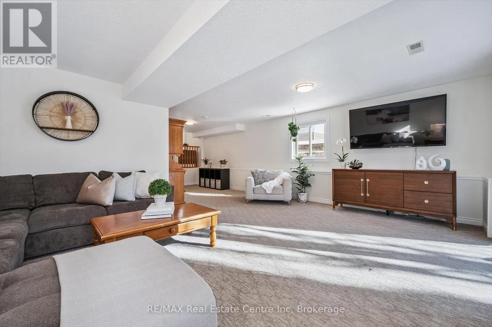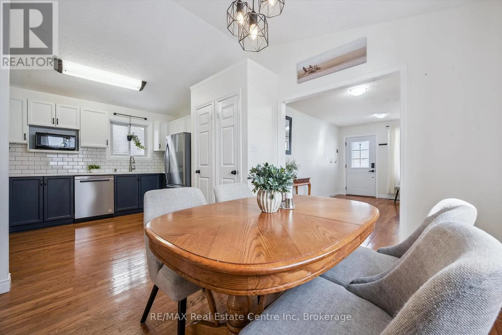 Cross Streets: Belsyde/Scotland. ** Directions: Belsyde to McTavish. Large Backsplit in Fantastic Neighbourhood! You'll be impressed with how big this well maintained home is inside. Over 1600 sqft of generous space complete with 3+1 bedrooms, 2 full renovated baths. The first level offers a large front room ideal for a cozy sitting spot and spacious entryway with lots of storage space. Hardwood floors flow through to the dining room and kitchen with vaulted ceilings. Kitchen updates (2022) include quartz counters, subway tile backsplash, undermount sink, fridge and dishwasher (2025) + features 2 pantry closets. Down a couple of steps to the lower main floor you'll find a huge family room with sliding doors out to your fenced (2021) backyard with concrete patio (2021) and hot tub (2023). An office or 4th bedroom completes this level. Upstairs are 3 right sized bedrooms; the Primary features a large walkin closet. The main full bath has undergone an incredible renovation (2022) with heated floors, extra deep soaker tub, lighted mirror, builtin shelving and stunning tile. Down in the recently finished basement (2021) is a den perfect for kids to play video games, another stunning bathroom (2021) with walkin shower and builtin shelving, plus TONS of storage space! Finishing off this great home is an attached 1 car garage, lovely front deck (2024), paved driveway (2024), integrated gemstone lighting (2023), tasteful landscaping, fresh paint throughout (2021) and new water softener (2023). Situated in South End Fergus close to main roads for commuters, schools and shopping. This is a must see, book your showing today! (id:27476)