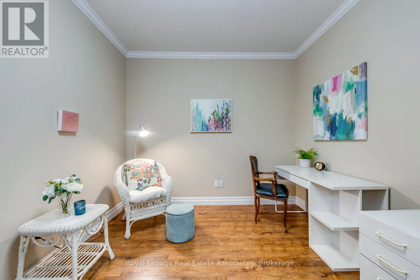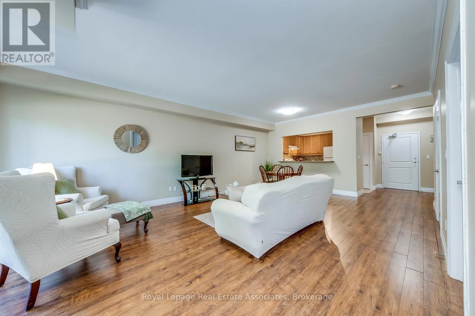 Cross Streets: Elizabeth/Woodhill. ** Directions: HWY 6 to Woodhill. Lovely adult community complex, featuring condo bungalow style apartments. Drive up to your front door, no elevator hassels & the snow is shoveled for you! Peaceful treed view from your large open concept living & dining area is great for easy entertaining and relaxing. The kitchen features a breakfast bar & pantry. Ensuite laundry & storage room. Large Primary Bedroom with ensuite, walk in shower and linen closet, wheelchair accessable. The den can also double as a guest suite/office and offers a 2 piece bath. Convenient shopping and dining within walking distance. A lovely community meeting space for social activities. Pets allowed with restrictions, visitor parking . Great neighborhood... peaceful living! Just move in ...relax and enjoy! (id:27476)