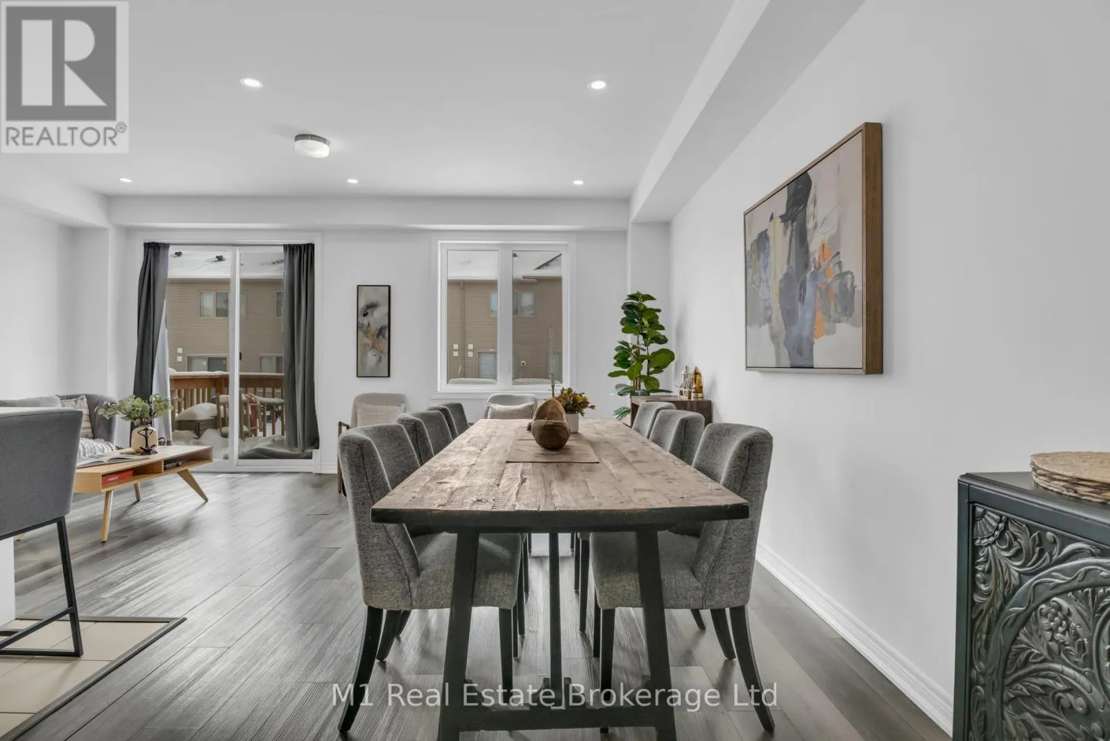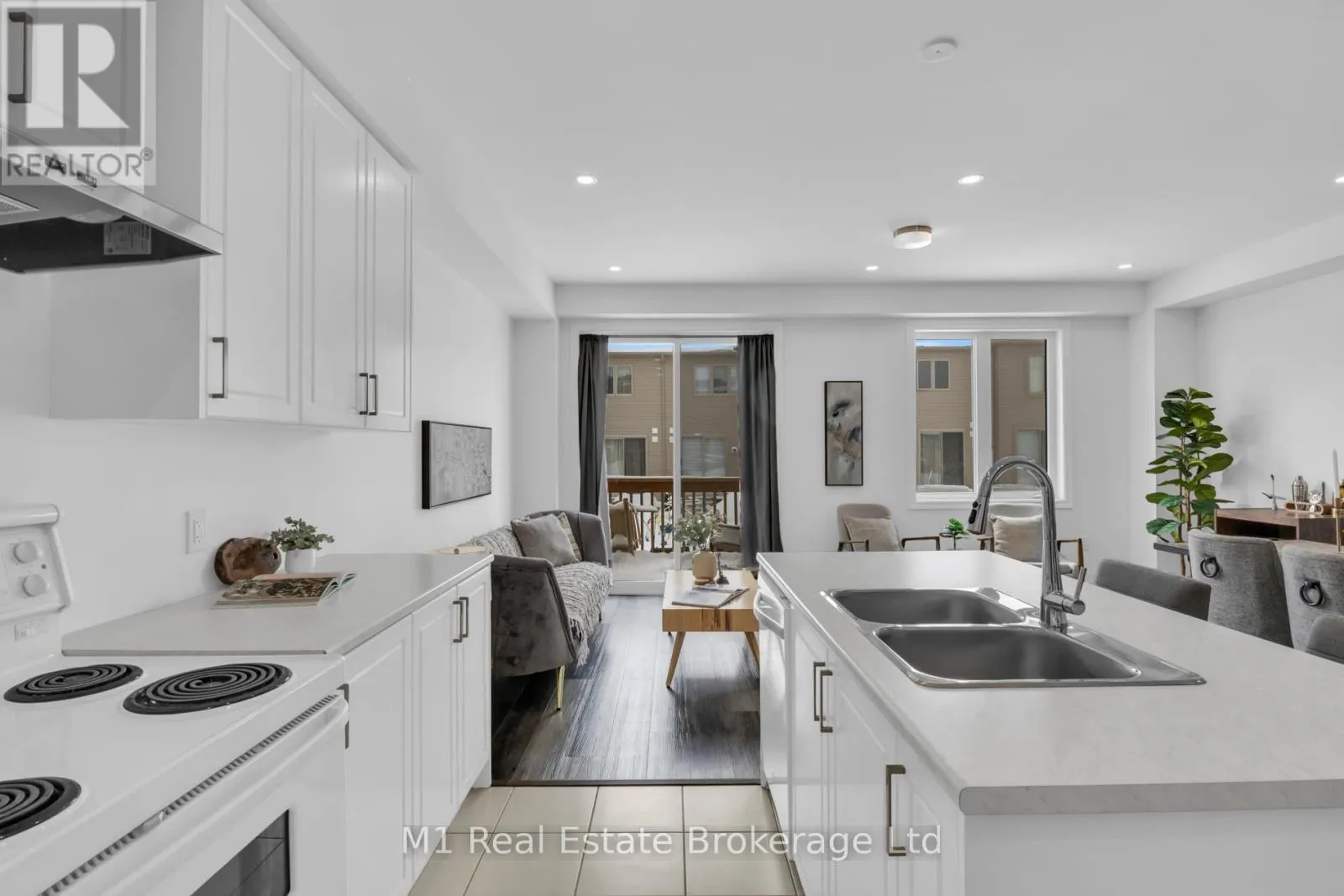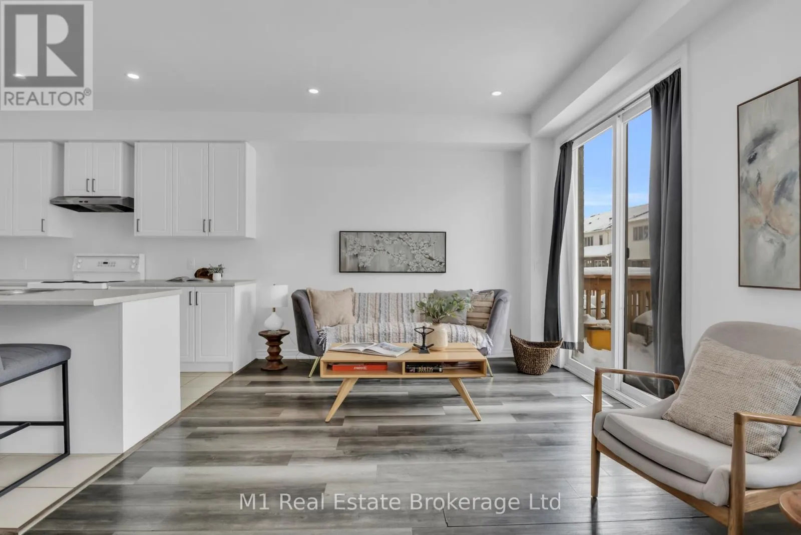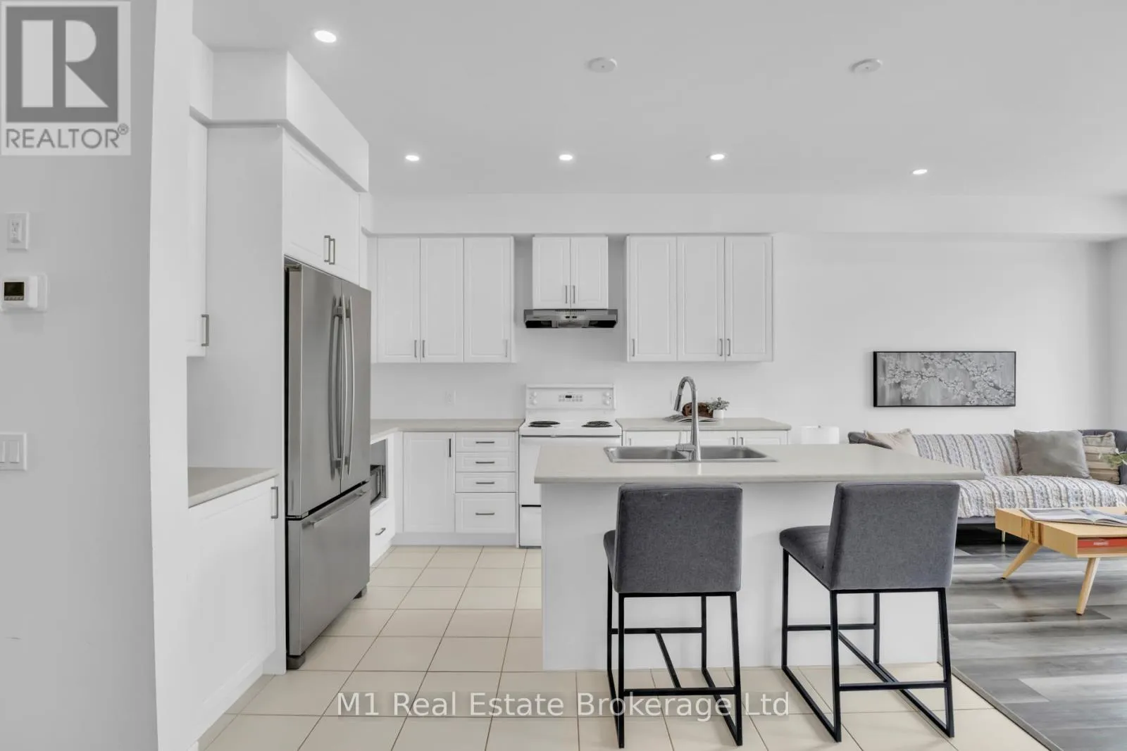 Cross Streets: Elliot Ave. ** Directions: Turn West onto Farley Rd. from Beatty Line. Welcome to 197 Farley Road, a well-designed freehold townhome located in the desirable Storybrook community of Fergus. This modern two-storey home offers approximately 1,742 sq. ft. of finished living space with three bedrooms and three bathrooms, providing a practical layout suited to everyday living. The main floor features a bright, open-concept design anchored by a contemporary kitchen with ample cabinetry, a large centre island, and quality finishes throughout, flowing seamlessly into the main living area. Upstairs, the primary bedroom includes a walk-in closet and a private four-piece ensuite, while two additional bedrooms share a full main bath. Upper-level laundry adds everyday convenience, and the unfinished basement offers excellent potential for future living space with existing rough-ins already in place. Exterior highlights include attractive brick and stone finishes, a covered front porch, and an attached garage with interior access. Ideally located close to schools, parks, trails, recreation facilities, and Groves Memorial Community Hospital, this home offers a low-maintenance lifestyle in one of Fergus's established newer neighbourhoods. (id:27476)