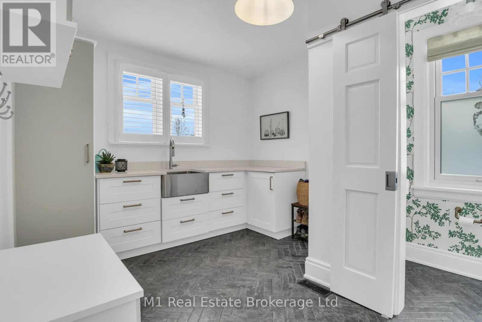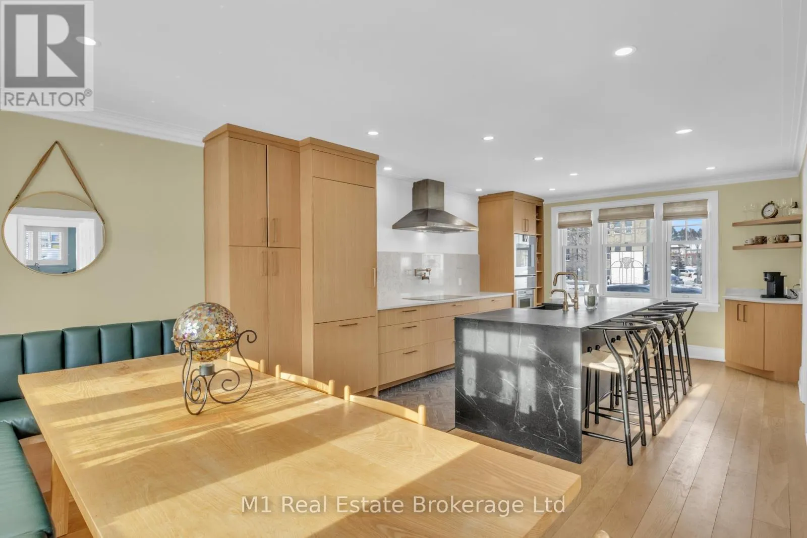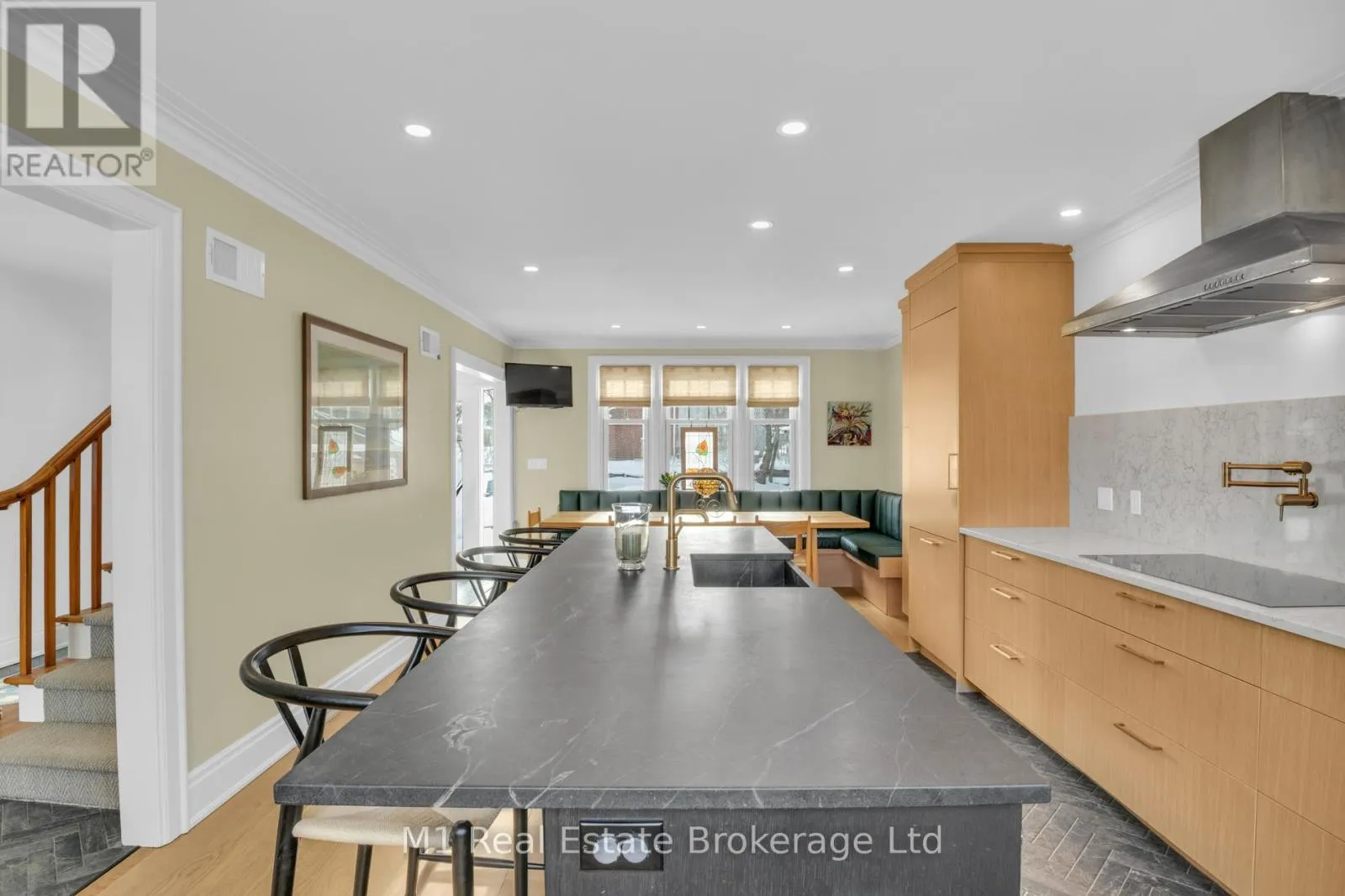 Cross Streets: Property at northwest corner of Tower Street (Hwy 6) and Elora Street. ** Directions: On the corner of Tower St S and Elora St. This classic red brick gem in Fergus has serious curb appeal that stops people in their tracks. Solid and timeless outside, but inside? Pure modern comfort that pulls you right in and won't let go. Step through the door, and the bright herringbone tile flows into wide white oak floors, setting an easy, open vibe. The kitchen grabs you first-big soapstone island, custom cabinets, built-in barista bar, sleek Gaggenau appliances, and a cozy banquette perfect for family meals or friends hanging out late. Across the hall sits the living room, then a generous mudroom/pantry with powder room (goodbye tracked-in dirt). Upstairs: four well-sized bedrooms, all fresh and stylish, sharing a crisp 4-piece bath. Climb one more flight to the showstopper loft-ultimate family room with a gas fireplace and a long wall of west-facing dormer windows pouring in warm afternoon light. Movie marathons, game nights, lazy weekends... this space makes it all feel effortless. Downstairs, a bright rec room waits (extra bedroom, gym, office-your call), plus laundry, utility, and smart storage. Outside is your private oasis: pro landscaping, huge custom patio, firepit, lush lawn, mature trees, thick cedar hedging for serious privacy, garage access, plus TWO driveways (one double) so parking fights are history. Right in the heart of Fergus, quick to shops, schools, river trails, and easy commutes. This isn't just a house... It's where every day feels warmer, easier, and way more fun. You have to see it. One walk-through and you'll be sold. (id:27476)