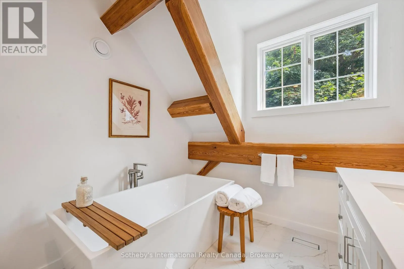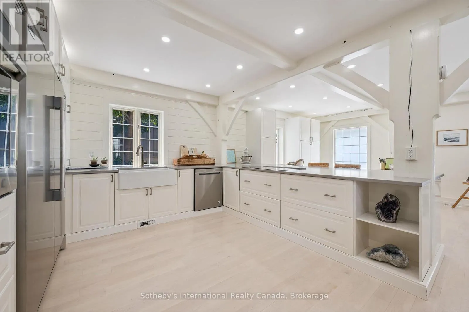 Geddes and East Mill Welcome to 18 East Mill Street, a rare opportunity to live and work in one of Ontario's most charming villages. Zoned commercial with a dwelling unit above, this updated timber-frame property blends character, flexibility, and location (including coveted parking). The main floor features exposed beams reclaimed from ahistoric factory and an abundance of natural light. With a spacious kitchen, two bathrooms, and multiple adaptable workspaces, it's ideal for entrepreneurs, creatives, or business owners. Whether you envision an art studio, retail shop, café, professional office, or something entirely your own, the street-level presence makes it easy to welcome clients and customers. Upstairs, a private residence with a loft-like feel offers a retreat from the bustle below. High ceilings, an open-concept kitchen and living area, and a walkout patio create a bright, contemporary home base or pied-à -terre. Three bedrooms, a spa-inspired bathroom, and in-suite laundry complete the space - perfect for everyday living or hosting overnight guests. Set within Elora's vibrant core, just steps from boutiques, cafés, and the Grand Rivers scenic trails, this one-of-a-kind property offers endless potential to build your business, live comfortably, or do both beautifully. Whether you keep it all for yourself, share it with tenants, or explore creative mixed-use ideas, this special property is poised to make your vision a reality. (id:27476)