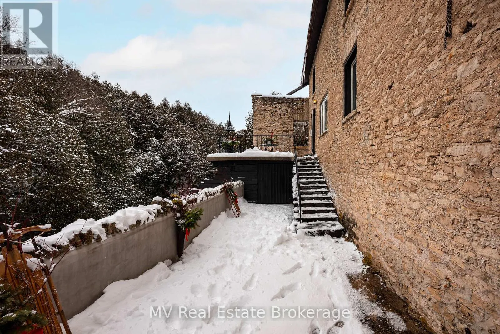 Cross Streets: Geddes & John. ** Directions: Geddes to John. Originally built in 1856 as a mill, this extraordinary property blends historic significance with masterful craftsmanship. Set high above the gorge with the peaceful sound of the waterfall below, this is a private, serene, and truly magical piece of Elora you may not have known existed. Owned by the same family since 1965, there is truly no other property like it.The original stone exterior, hand-chiseled out of limestone from the riverbed, has been meticulously preserved, while the interior has been completely rebuilt and restored from the foundation up. Step inside to discover stunning post-and-beam construction with reclaimed, hand-hewn beams, thick handmade doors, and the unmistakable warmth of a century-old structure-yet updated for comfortable living. The kitchen counters, crafted from 100-year-old planks, pair beautifully with art-deco lighting throughout. With no interior supporting walls, the layout offers flexibility for future redesigns if desired.With five bedrooms and generous yet comfortable living spaces, the home is ideal for a single family seeking their dream home, while also being well-suited for multi-generational living. Additional highlights include a unique drive-through stone garage with upper storage, a large, dry unfinished basement plus wine cellar, and a concrete deck overlooking the river and waterfalls-an exceptional place to relax and take in the natural beauty surrounding this one-of-a-kind home.Tired of traffic to the cottage or the noise once you arrive?At 6 MillRidge Estates, you'll find the peace, quiet, and beauty you've been searching for-right here in Elora.A truly one-of-a-kind historic residence, thoughtfully reimagined as a warm, inviting, and unforgettable home. (id:27476)