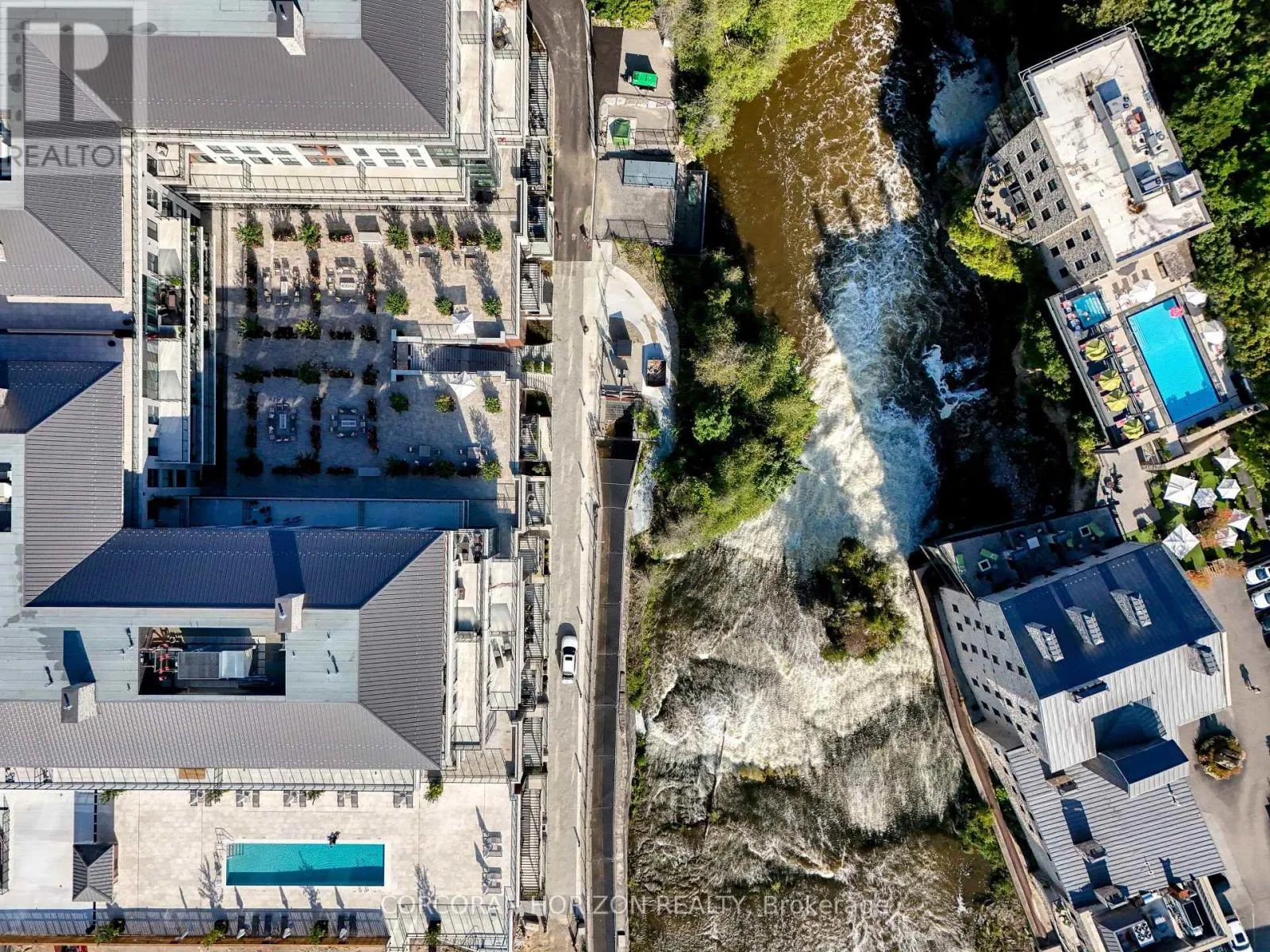 Cross Streets: Victoria St. ** Directions: Wellington Rd 7 and Victoria St. Experience elevated living at its finest in The Mill Penthouse! Set within the coveted Elora Mill Residences, this penthouse redefines luxury with soaring 10-foot ceilings, designer lighting, and curated finishes throughout. A gas fireplace adds warmth and sophistication to the open-concept living space, while the expansive private terrace, boasting over 650 sq. ft., offers a built-in gas line perfect for a custom outdoor kitchen, grill, or fireplace. Glass railings reveal panoramic, unobstructed views of the Elora River and its iconic bridges, with four separate walkouts creating seamless indoor-outdoor living. At the heart of the home, the chef-inspired kitchen impresses with a grand island with seating, full-height cabinetry, and upgraded Miele appliances. The open living and dining areas provide flexibility to design your perfect entertaining space, while a private den with sliding doors is ideal as a home office, media room, or formal dining area. The primary suite is a tranquil retreat, complete with a custom walk-in closet and a spa-like ensuite featuring a deep soaker tub, oversized glass shower, double vanity, and private water closet. A second bedroom, in its own private wing with a dedicated full bathroom, is perfect for guests or family. Residents enjoy exclusive access to resort-style amenities including a concierge, lobby coffee bar, residents' lounge, formal dining room, outdoor furnished riverfront terrace with firepits, and an outdoor pool with spectacular river views. Just steps from Elora's gourmet restaurants, boutique shops, and charming cafés, you'll enjoy living in this picturesque, walkable community. Complete with fully automated blinds, two parking spaces, and a storage locker, an opportunity to own a penthouse suite at one of Elora's most prestigious and sought-after addresses. (id:27476)