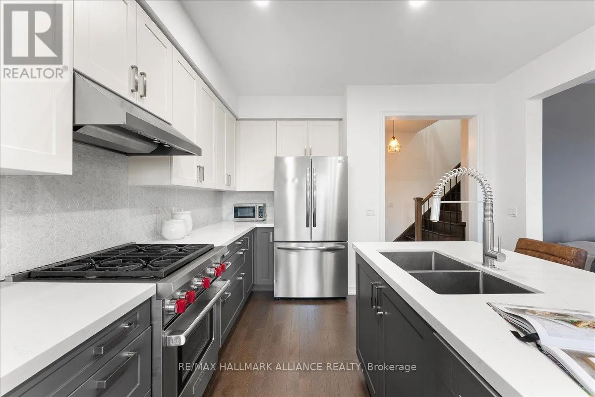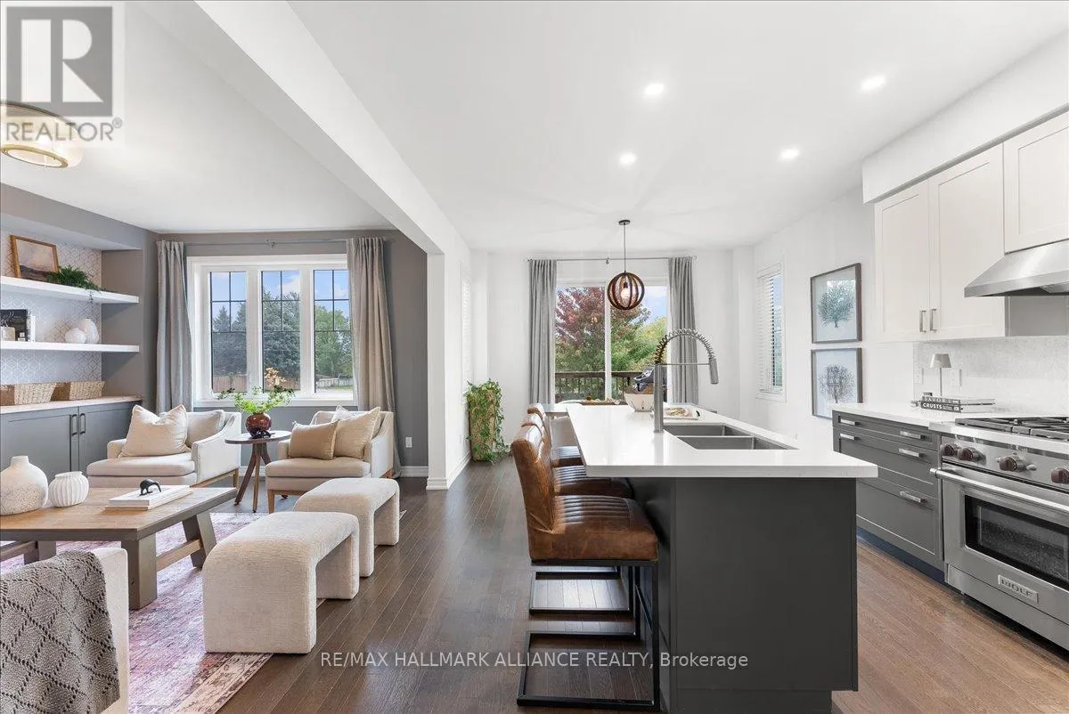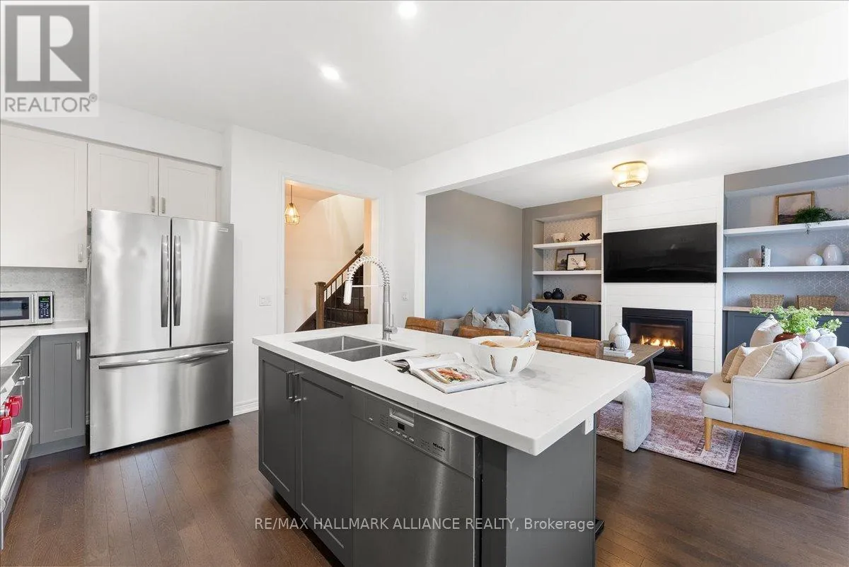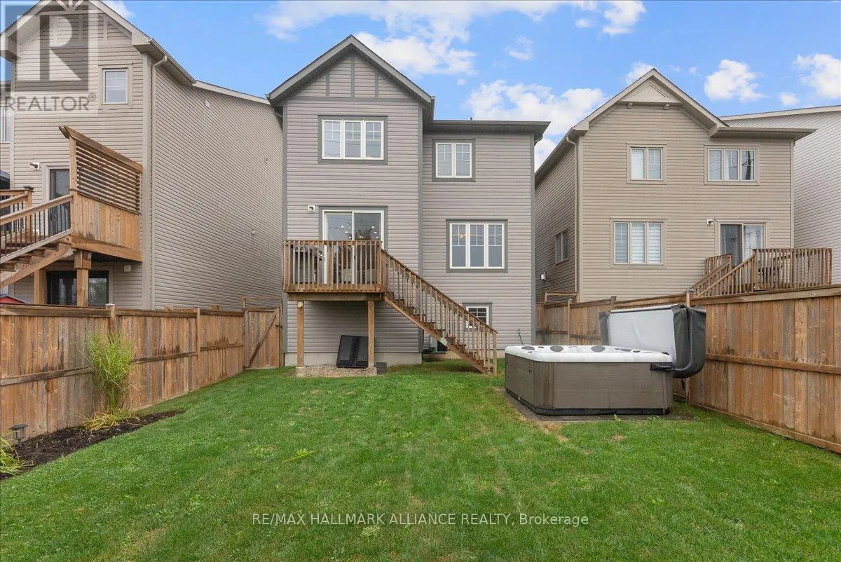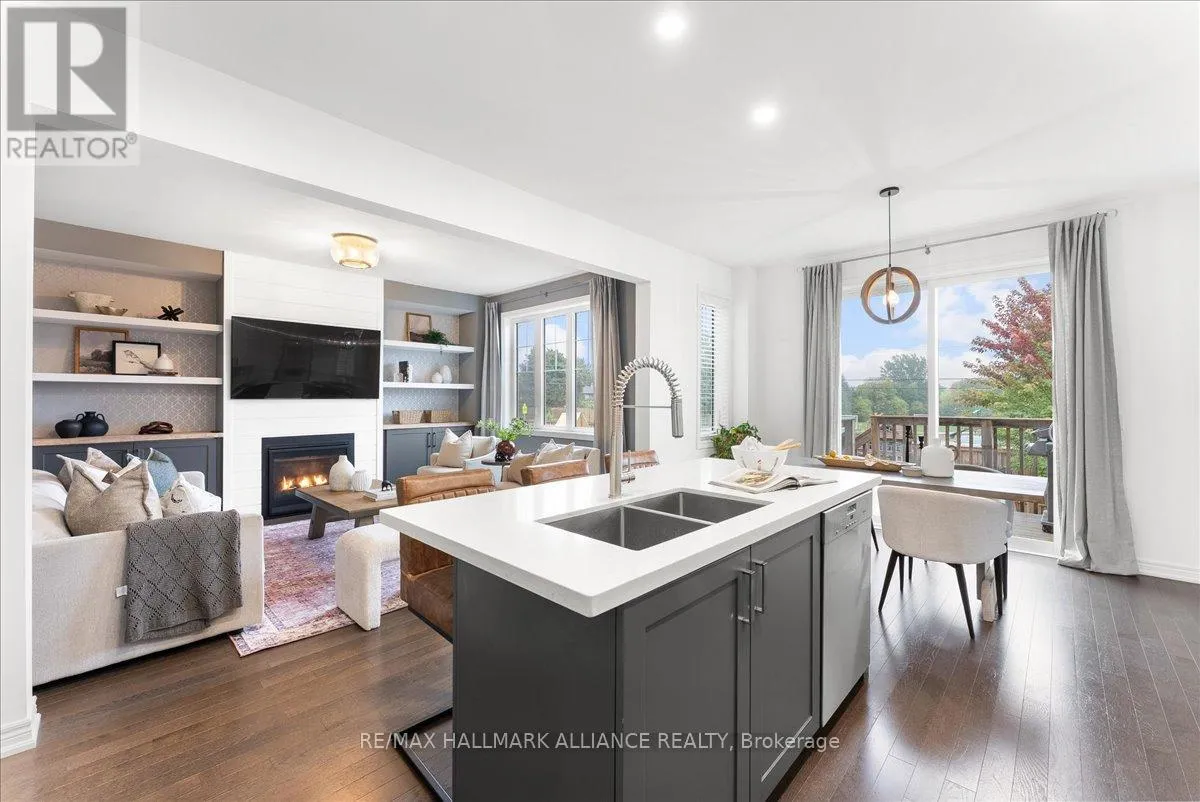Cross Streets: Gartshore St & Garafraxa St E. ** Directions: Gartshore to Middleton. Left on Kay. Step into comfort and style in this beautifully upgraded 4-bedroom, 3-bath detached home in Fergus. Backing onto the peaceful green space of Forfar Park and just steps from the Elora Cataract Trail, this home offers the perfect blend of nature and modern living.The main floor features an open-concept layout with 9-foot ceilings, rich hardwood flooring, oak staircase and striking custom woodwork throughout. The chefs kitchen stands out with sleek tuxedo-style cabinetry, premium finishes, Wolf Gas Stove, and a functional design ideal for entertaining. Gather in the family room around the cozy gas fireplace, framed by custom built-in's and flooded with natural light. Upstairs, four generously sized bedrooms provide ample closet space and plush broadloom, with the primary suite offering a luxurious 5-piece ensuite with soaker tub, double vanity, and walk-in shower. The unfinished basement offers endless potential - whether you're dreaming of a home gym, recreation space, or in-law suite, it's a blank canvas ready for your personal touch. Step outside to your own backyard retreat, featuring a hot tub, children's play area, and lush green space with no rear neighbours! (id:27476)