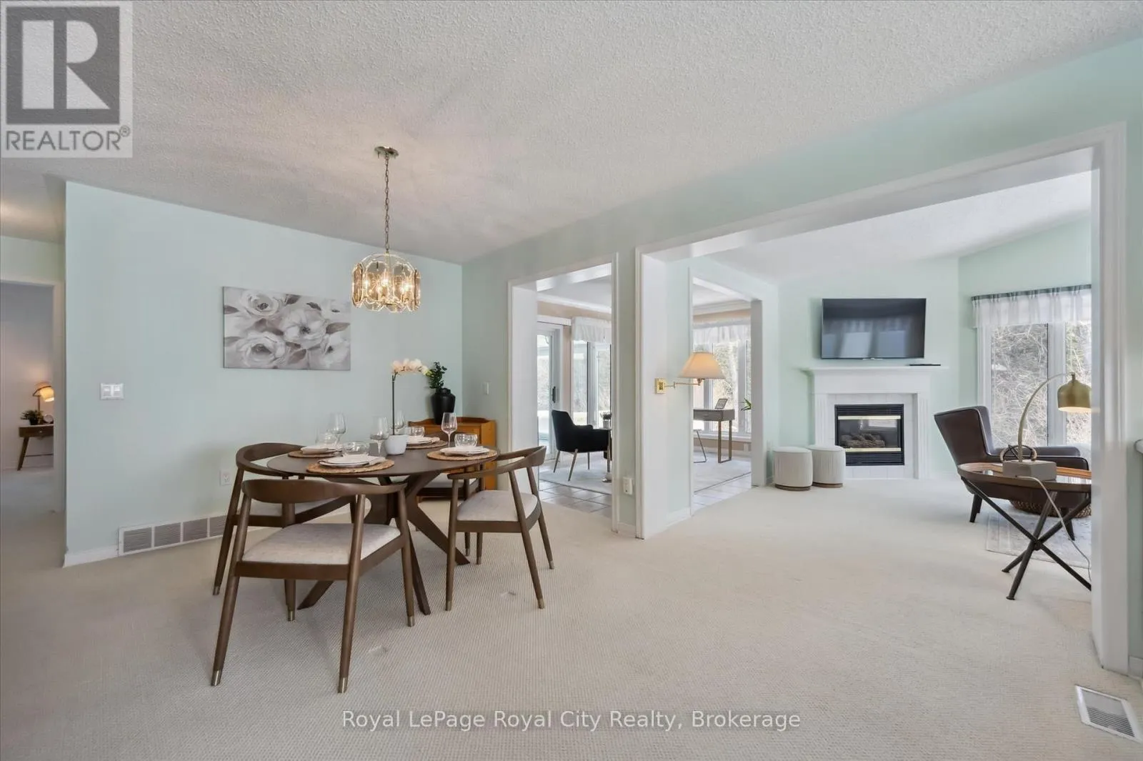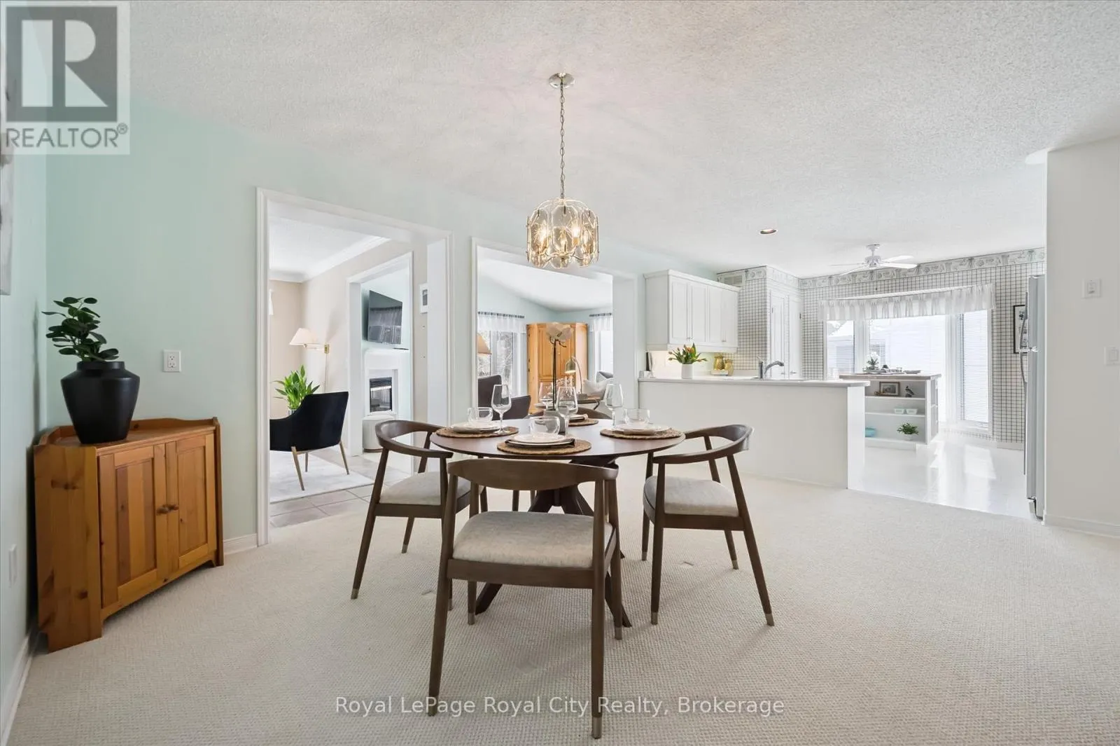 Cross Streets: Tamarack and White Bark. ** Directions: County Rd 19, Community across the Hwy from the Post Office. Discover your perfect retirement retreat, here at Pine Meadows. If Condo living isn't for you, come discover the possibilities of a fully detached home with care free maintenance included with a private active community, including a Pool, Games Room, Tennis Courts and more. A meticulously maintained Bungalow on a peaceful road tucked in the back of this charming quiet Community. This home offers the perfect blend of comfort, size and style, with an inviting covered front porch, Double Car Garage and a Sun filled traditional floor plan, this home is ideal for both relaxing and entertaining. Step inside to discover a spacious layout with large entry, two generous main floor bedrooms both with walk-in closets, two full main floor Bathrooms, a designated Dining Area with plenty of wall space for all your cherished furniture, a Living Room with cozy Gas Fireplace, a Family (Flex) room and a 3 season Sunroom. Main Floor Laundry and interior Garage Entrance door make this easy for day to day living. The Basement offers 650 sq feet of finished living space including another Full Bathroom and an additional 765 sq feet of storage or future space with 8 ft ceiling height and insulated concrete floor. An added bonus to the main floor is the 237 sq ft Three Season Sunroom with views of the idylic Lakeside Greenspace surrounding the backyard. Sacrifice nothing and enjoy everything with the carefree lifestyle offered here at Pine Meadows Retirement Community. Right next to Belwood Lake, and a short drive from the bustling Town of Fergus. (id:27476)