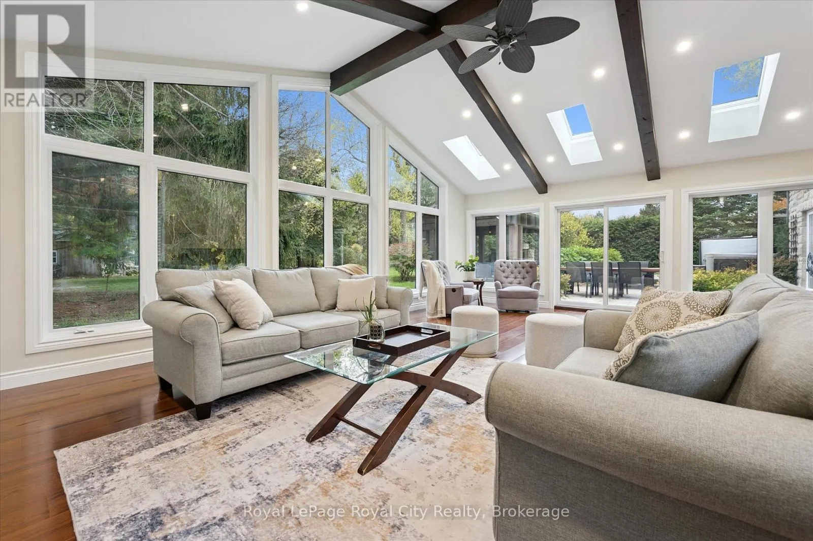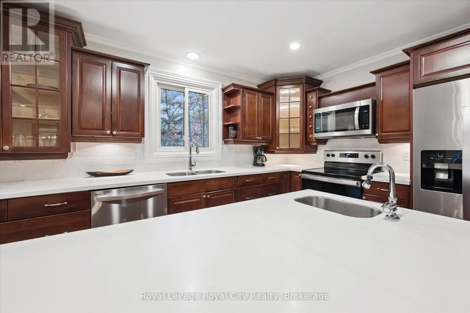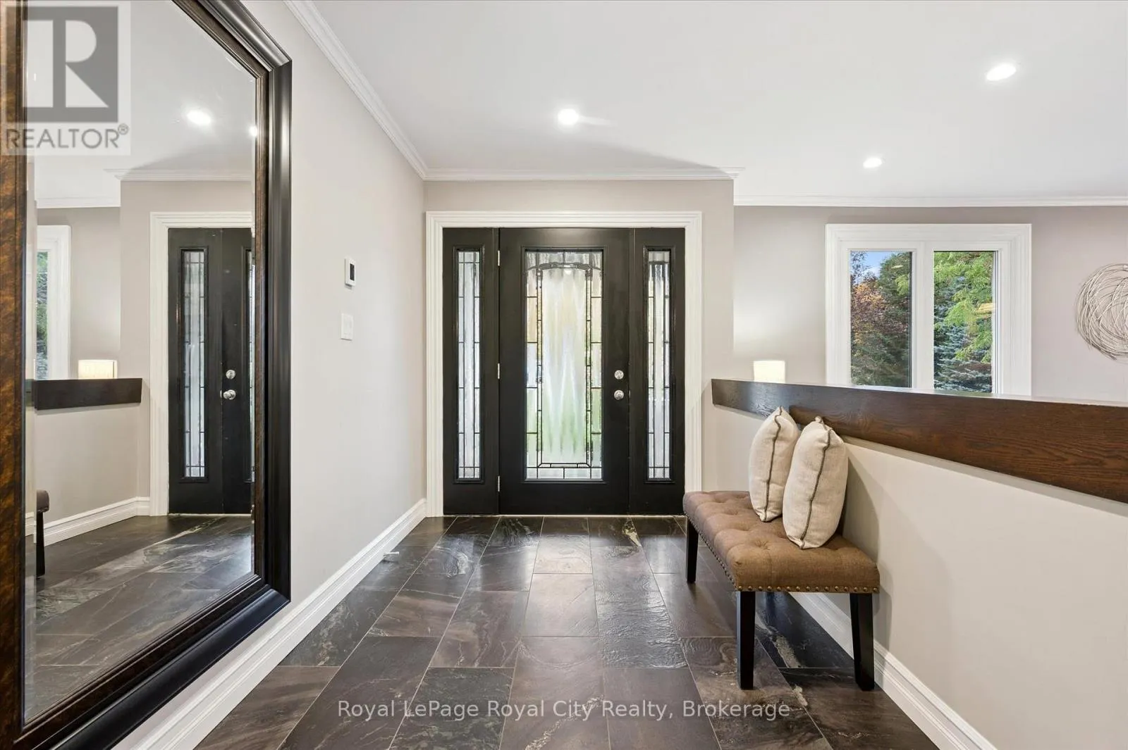 Hwy 6 and Sdrd 18 Tucked away on over an acre of peaceful, tree-lined property, this thoughtfully designed multi-level home offers a rare blend of space, style, and soul. From its inviting front porch to the rustic entertaining space out back, every inch of this 5-bedroom, 3-bathroom property invites connection with family, friends, and the natural beauty that surrounds it. Upon entrance, you will quickly fall in love with the open-concept design, enhanced by gleaming hardwood flooring. The chef-inspired kitchen showcases sleek Corian countertops, custom cabinetry, and a functional island that flows perfectly into the combined living/dining room, creating an elegant space for entertaining. A sizable main floor bedroom is ideal for guests or a home office, while a well-equipped mudroom supports busy family living. Descend to the show-stopping lower-level family room, anchored by an attractive fireplace, and flaunting vaulted ceilings, engineered hardwood, skylights, and floor-to-ceiling windows capturing breathtaking backyard views. The adjoining games/rec area is designed for fun and function, complete with heated floors, backyard access, and a modern 3pc bathroom. Upstairs, the 2nd level provides 2 generous bedrooms and a loft space, perfect for a reading nook or study, alongside an updated 4pc bathroom. The private, 3rd level offers a primary suite with a walk-in closet and a 5pc ensuite, as well as a 5th spacious bedroom. The finished basement extends a versatile living or recreational space, complemented by a dedicated laundry room and storage/utility room. Step outside and prepare to be captivated: a 2-tier stone patio frames alfresco dining and a rejuvenating hot tub area, while the rustic post-and-beam gazebo with a striking stone fireplace promises memorable evenings under the stars. Surrounded by mature trees and lush green space, this property evokes the feel of a private resort retreat- just minutes from essential amenities and ready to welcome your next chapter. (id:27476)