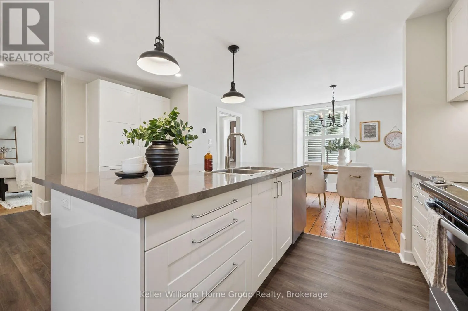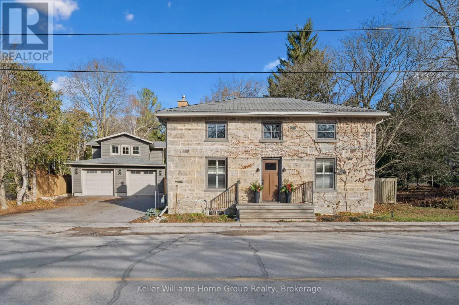 Cross Streets: Stumpf Street. ** Directions: Geddes Street N through Elora. Discover an exceptional opportunity in the heart of Elora: two complete homes on one beautiful, treed lot, offering flexibility for multi-generational living, guest accommodations, or strong rental income. The Stone House blends heritage charm with modern updates and expansion opportunities. Recent improvements include a fully renovated kitchen, updated bathrooms, new windows and doors, refreshed flooring, insulation upgrades, and a rebuilt chimney. A newer furnace (2023), A/C (2019), water heater (2025) and electrical panel (2020) provide peace of mind. The Coach House (Built 2024) offers stylish, low-maintenance high efficiency living with beautiful LVP flooring throughout, a bright modern custom kitchen, upstairs laundry, and a spa-like bathroom. The cozy radiant floor heating throughout the main floor is simply perfect for the home. The fenced backyard and landscaped patio create an intimate outdoor retreat. A double garage provides a dedicated parking bay for each home. The property features professional landscaping, mature trees, green space views across the road, paved driveway, new fencing, shared well and water systems, and full appliance packages in both homes. Houses are separately metered. Located just a short walk to downtown Elora's restaurants, shops, and riverfront trails, this is a rare chance to live beautifully close to nature and community. With estimated rental income of $3,000+ per month per dwelling, this property is both a lifestyle upgrade and a smart financial move. Two homes. One remarkable setting. Endless possibilities. (id:27476)