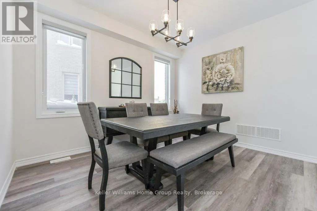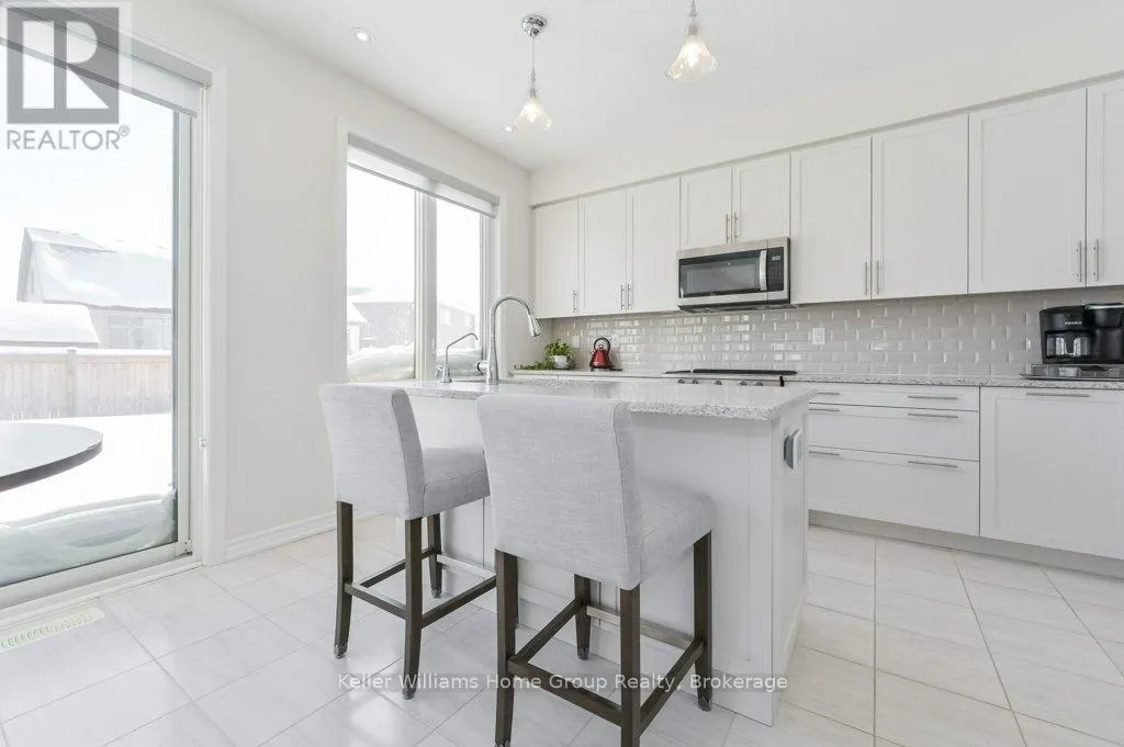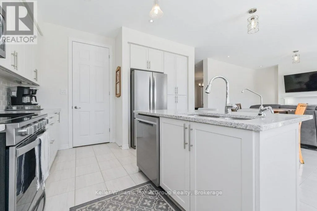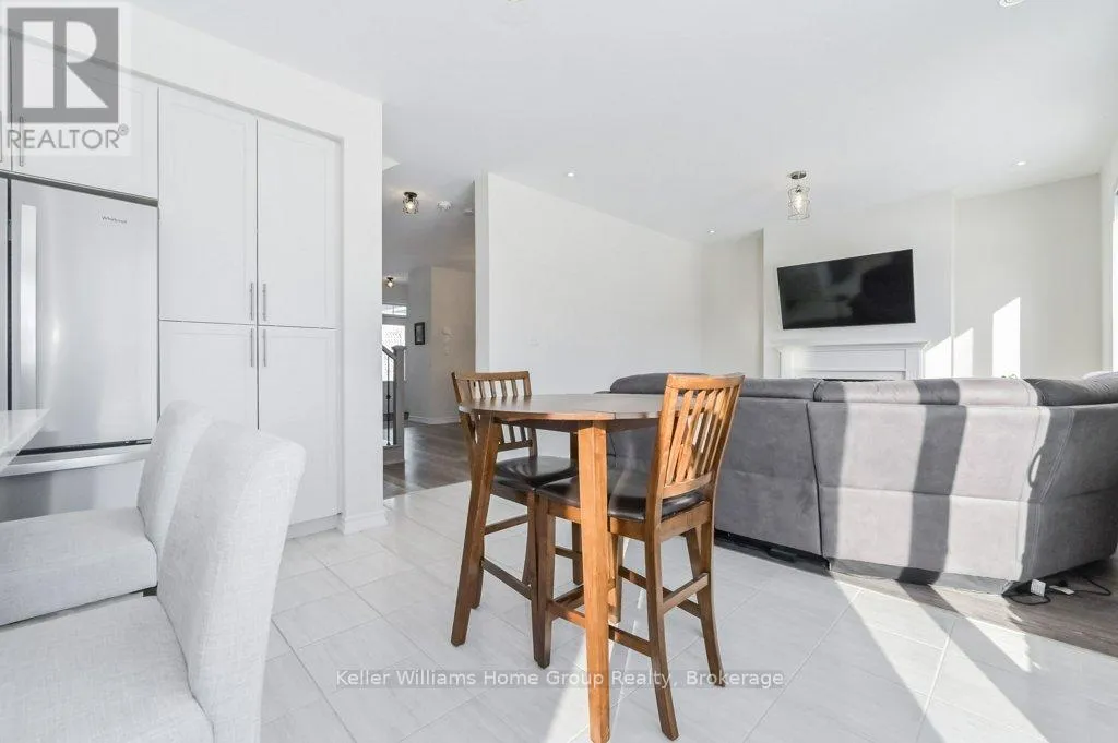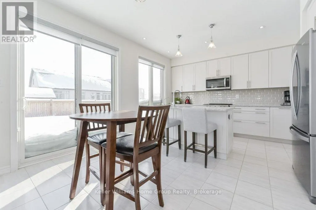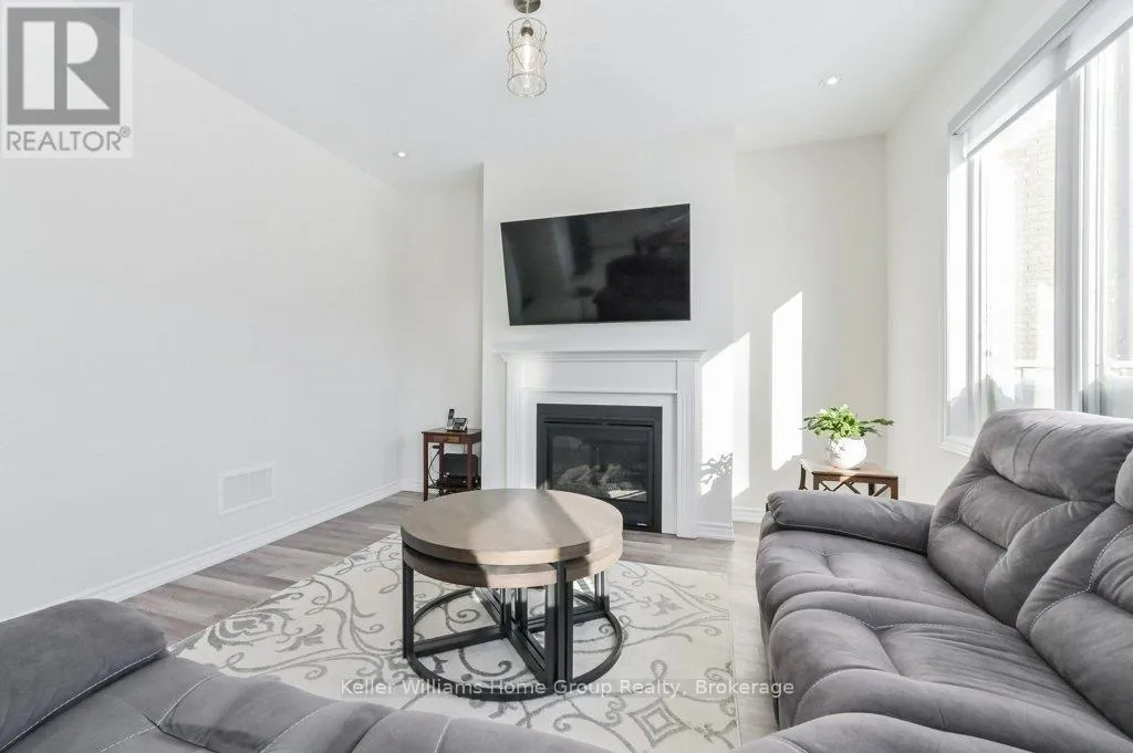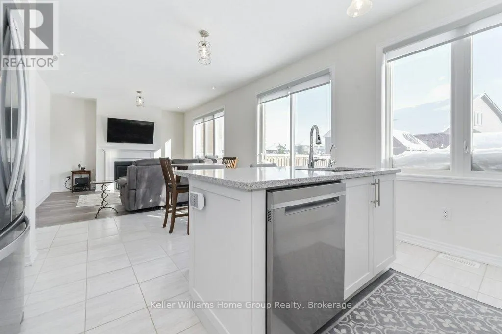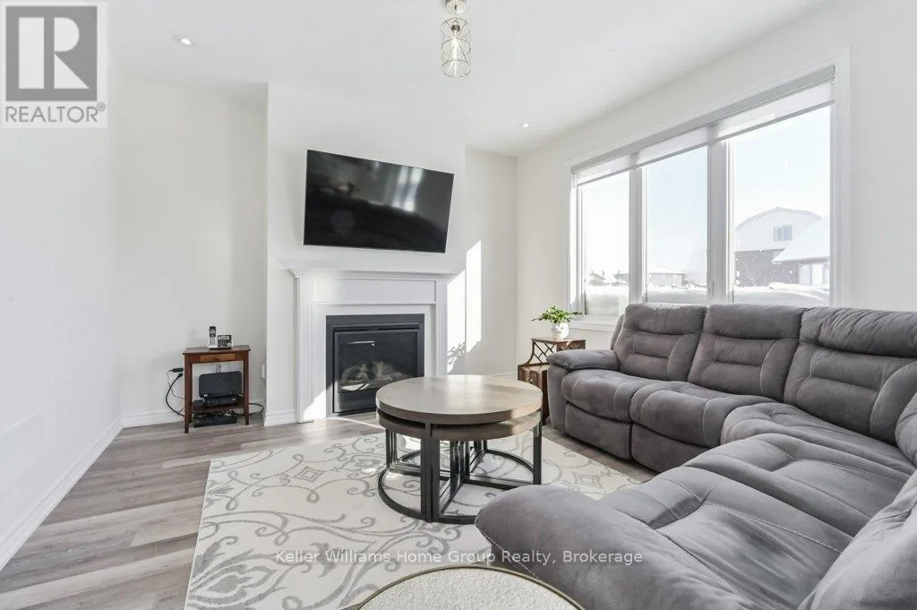 Cross Streets: Spicer Street. ** Directions: Beatty Line to Farley Rd. Welcome to a beautifully upgraded, carpet-free home in one of Fergus' fastest-growing neighbourhoods. Nearly new and thoughtfully designed, this property offers the perfect blend of style, comfort, and everyday convenience. Just steps from a brand-new school, scenic parks, and miles of walking trails, it's an ideal setting for families looking to put down roots. Inside, the bright, modern kitchen serves as the heart of the home. A large centre island with a built-in sink, ample cabinetry, and sleek finishes make it a natural gathering place for both casual meals and weekend entertaining. A formal dining room provides space for hosting, while the inviting living room-complete with a cozy gas fireplace-creates the perfect backdrop for quiet evenings in. Blinds throughout add privacy and a polished, move-in-ready feel. Upstairs, the spacious primary suite offers a true retreat with its generous walk-in closet and spa-inspired ensuite featuring double sinks, a walk-in shower, and a relaxing soaker tub. Designed with family life in mind, this home delivers comfort, functionality, and modern style in every room. Fresh to the market and ready for its next chapter, this exceptional property is one you won't want to miss. (id:27476)