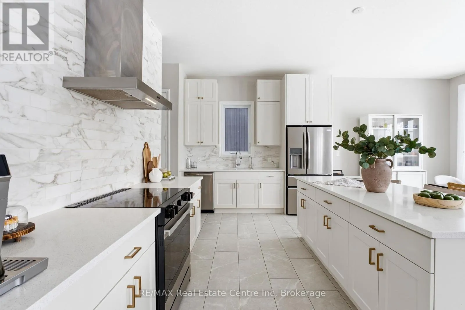 Cross Streets: Harrison/Haylock. ** Directions: Off South River - Left onto Haylock Avenue, First right in roundabout onto Harrison, Property Immediately on the Right. Welcome to 162 Harrison Street, a standout Granite-built home set on a premium lot backing onto protected greenspace - offering rare privacy and a truly exceptional setting. Offering nearly 3,000 sq ft, 4 bedrooms, and 4 bathrooms, this home features over $180,000 in carefully curated upgrades throughout.The exterior makes an immediate impression with rich stonework, modern finishes, timber accents, and a covered front porch. Inside, the open-to-above foyer and striking hickory staircase create a grand introduction, while 10-foot ceilings and 8-foot doors elevate the entire main level. Large rear windows fill the open-concept living space with natural light and showcase peaceful, treed views. The kitchen is both functional and refined, complete with upgraded countertops, extended cabinetry, a statement chimney hood fan, champagne bronze hardware, and a spacious island designed for gathering. A private office, well-designed laundry/mudroom, and upgraded powder room complete the main floor.Upstairs, three of the four bedrooms offer ensuite access. The primary suite is a true retreat overlooking the greenspace, featuring a walk-in closet and a spa-inspired ensuite with double sinks, a tiled shower, water closet, and soaker tub.The unspoiled basement offers 9-foot ceilings, oversized egress windows, and a rough-in for a future fifth bathroom - ready for your vision. Ideally located in one of Elora's most sought-after communities, you're just steps to scenic trails and minutes from downtown shops, dining, the Elora Gorge, Cataract Trail, and Groves Memorial Hospital.A premium lot, extensive upgrades, and a setting that's hard to match. (id:27476)
