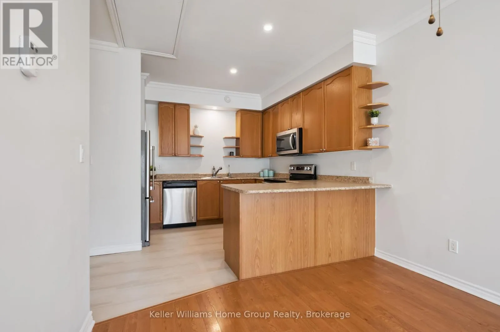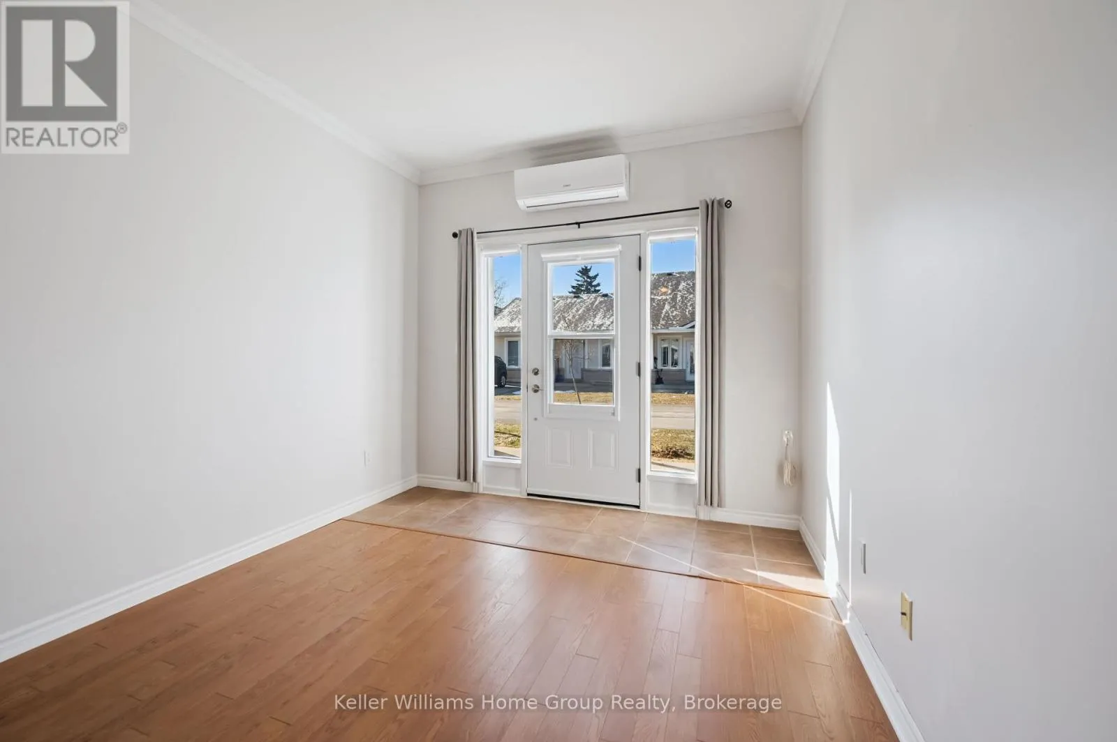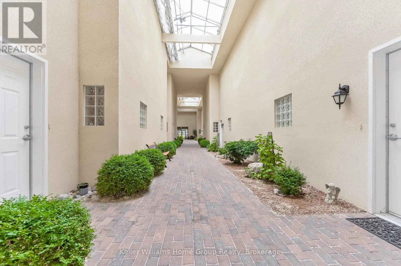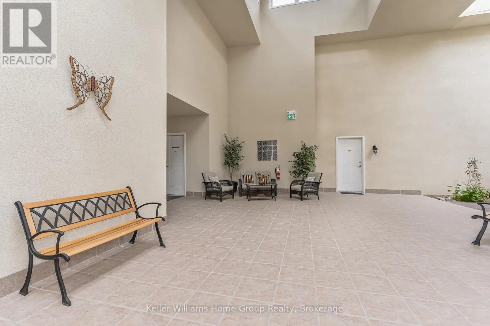 Cross Streets: Near Hwy.6 at corner of Elizabeth Cres. ** Directions: Turn west from Hwy. 6 onto Woodhill Drive. Welcome to this cozy bungalow condo townhouse, located in the friendly community of Woodhill Gardens, in north end Fergus. Everyday amenities are just minutes away. This bright and inviting open-concept home features 1 bedroom and 1 bathroom, 9' ceilings, and an abundance of natural light throughout.Enjoy the comfort of heated floors and the convenience of parking right outside your front door with your own private driveway. The home also offers a small patio for outdoor enjoyment, plus a unique upper-level storage space with pull-down ladder access.A second entry leads to a covered atrium, allowing you to access your mailbox and the party/games room without ever having to step outside-perfect for year-round comfort. This well-maintained community is ideal for walking and easy living.Condo fees include patio, driveway, and lawn/snow maintenance. Updates 2-5 years old include: heat pump, appliances, bathroom renovation, kitchen flooring, front door /windows, phantom screen, and window treatments. Book your private viewing today. (id:27476)