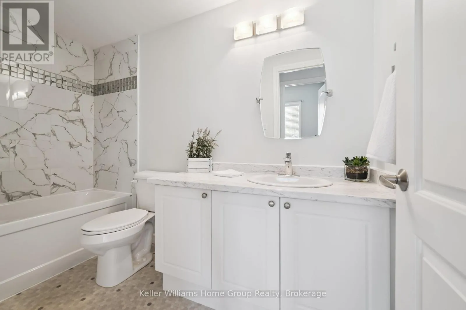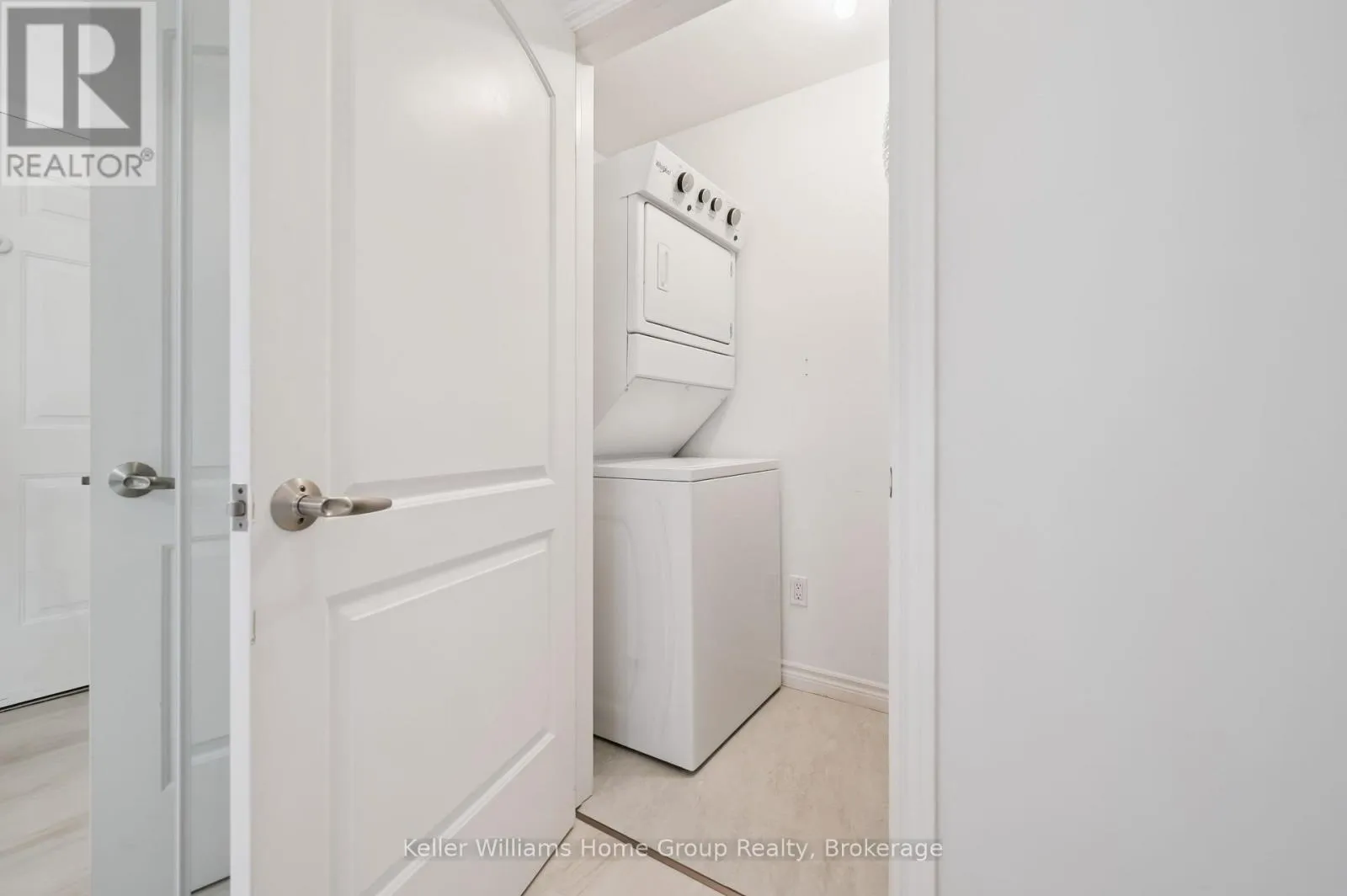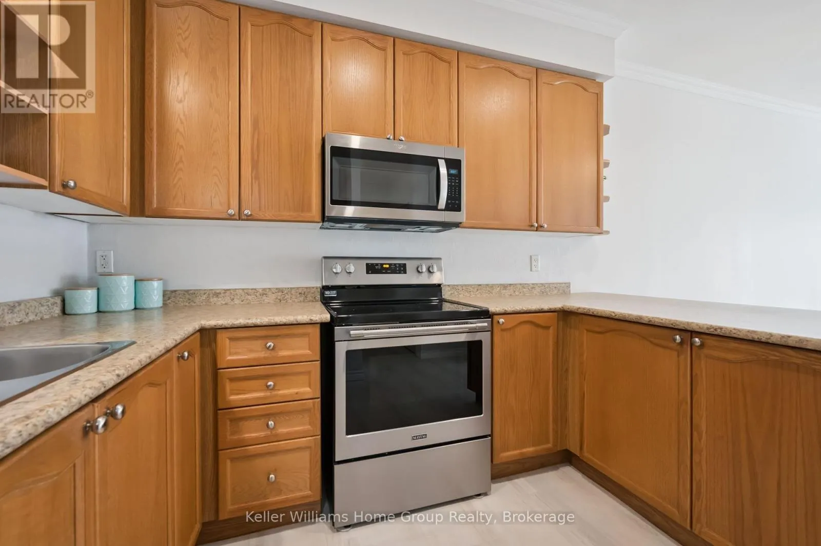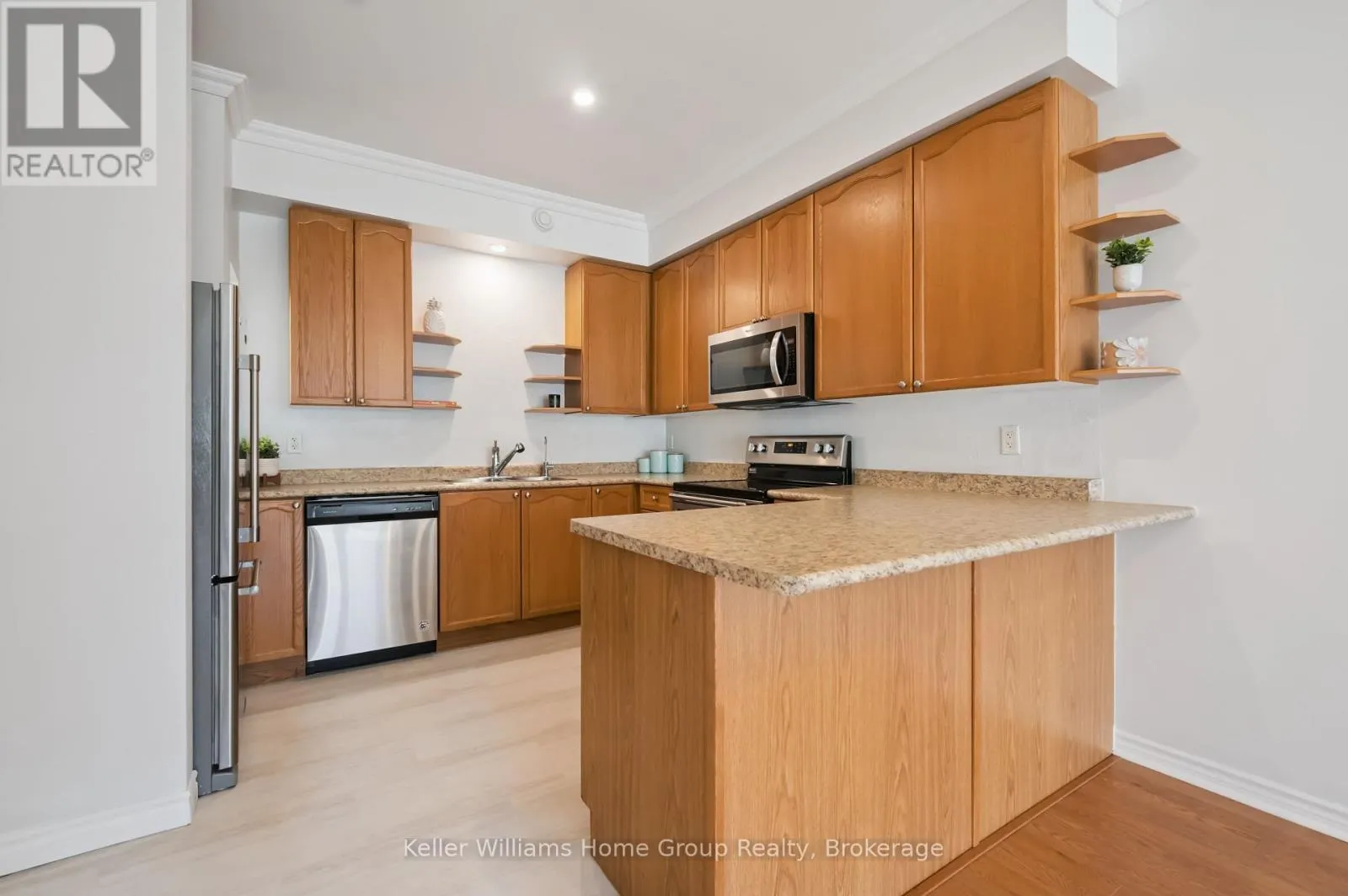 Cross Streets: Near Hwy.6 at corner of Elizabeth Cres. ** Directions: Turn west from Hwy. 6 onto Woodhill Drive. Welcome to this cozy bungalow condo townhouse, located in the friendly community of Woodhill Gardens, in north end Fergus. Everyday amenities are just minutes away. This bright and inviting open-concept home features 1 bedroom and 1 bathroom, 9' ceilings, and an abundance of natural light throughout.Enjoy the comfort of heated floors and the convenience of parking right outside your front door with your own private driveway. The home also offers a small patio for outdoor enjoyment, plus a unique upper-level storage space with pull-down ladder access.A second entry leads to a covered atrium, allowing you to access your mailbox and the party/games room without ever having to step outside-perfect for year-round comfort. This well-maintained community is ideal for walking and easy living.Condo fees include patio, driveway, and lawn/snow maintenance. Updates 2-5 years old include: heat pump, appliances, bathroom renovation, kitchen flooring, front door /windows, phantom screen, and window treatments. Book your private viewing today. (id:27476)