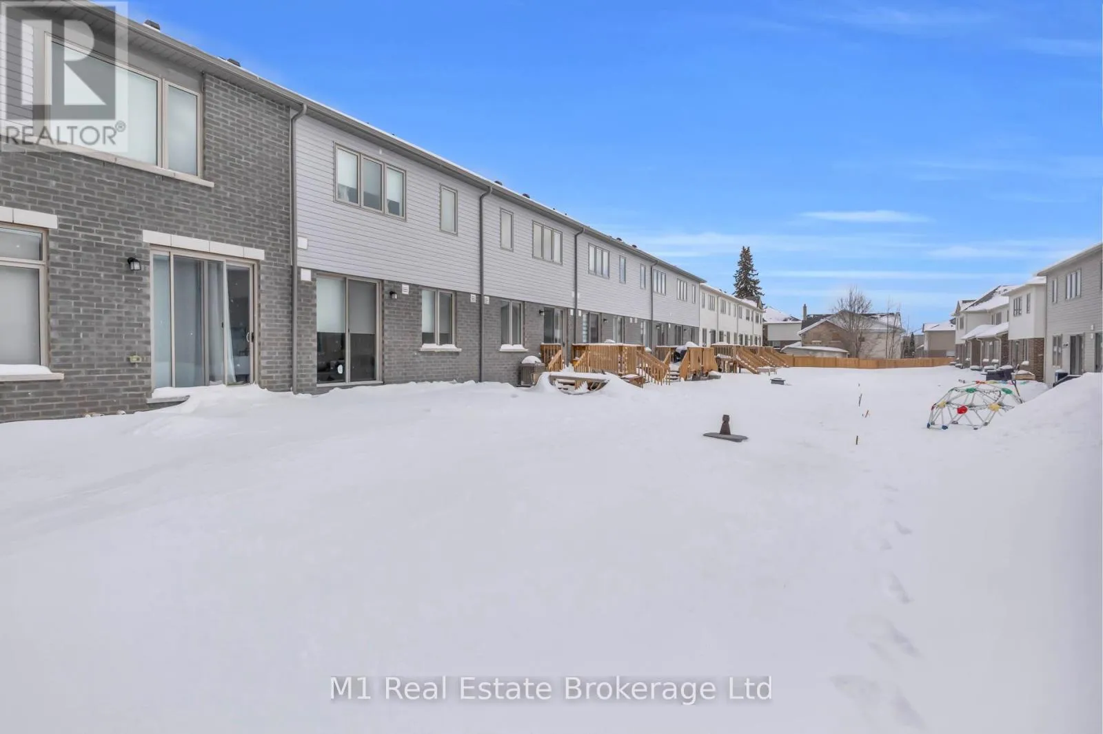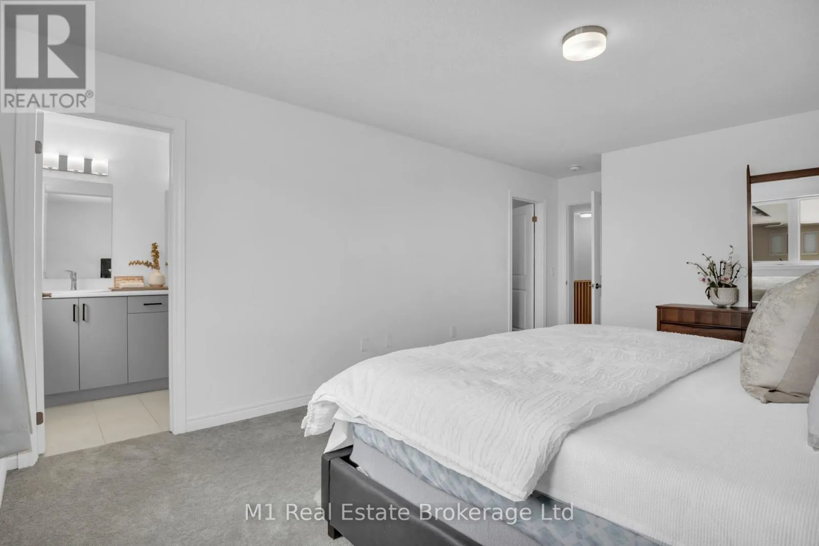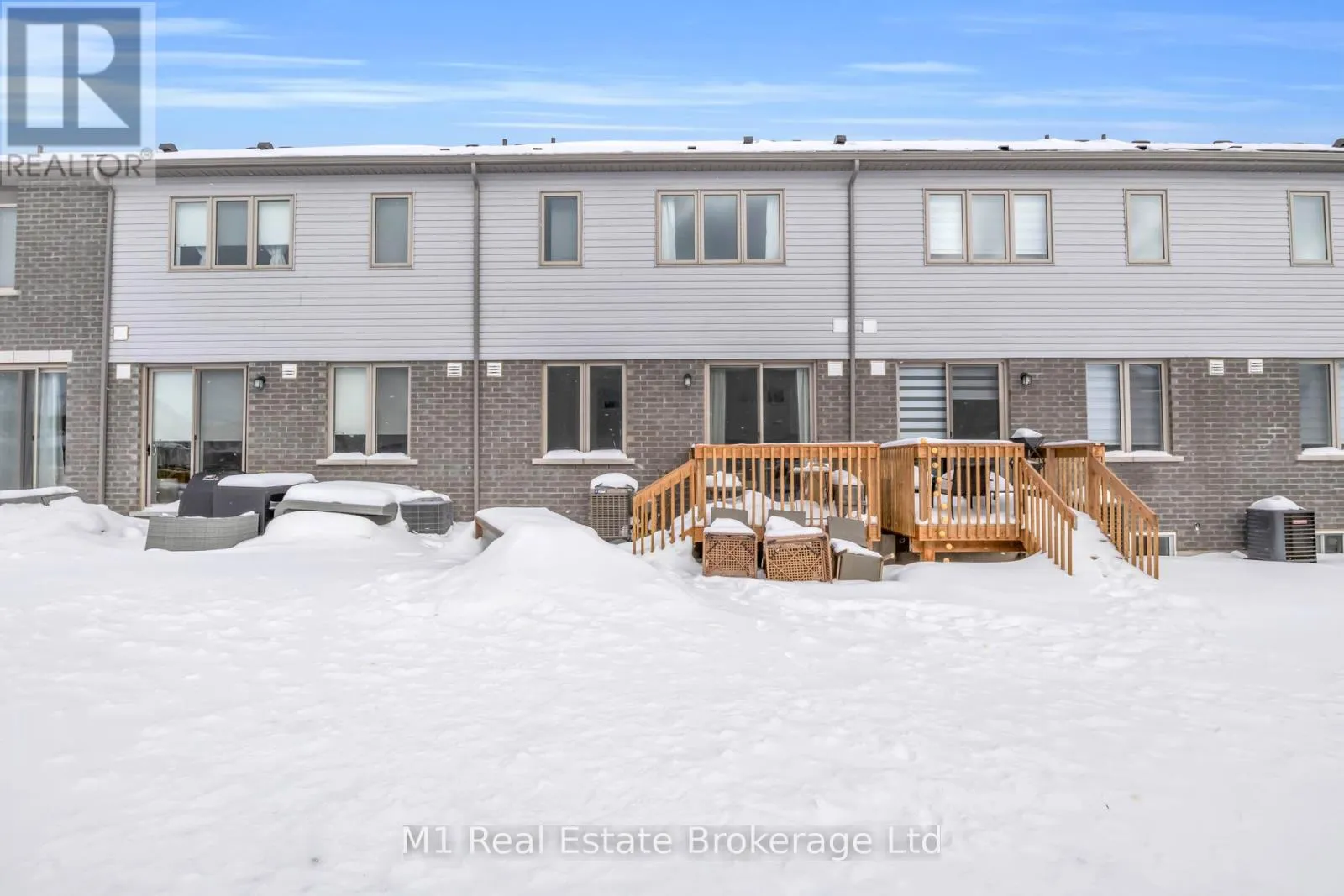 Cross Streets: Elliot Ave. ** Directions: Turn West onto Farley Rd. from Beatty Line. Welcome to 197 Farley Road, a well-designed freehold townhome located in the desirable Storybrook community of Fergus. This modern two-storey home offers approximately 1,742 sq. ft. of finished living space with three bedrooms and three bathrooms, providing a practical layout suited to everyday living. The main floor features a bright, open-concept design anchored by a contemporary kitchen with ample cabinetry, a large centre island, and quality finishes throughout, flowing seamlessly into the main living area. Upstairs, the primary bedroom includes a walk-in closet and a private four-piece ensuite, while two additional bedrooms share a full main bath. Upper-level laundry adds everyday convenience, and the unfinished basement offers excellent potential for future living space with existing rough-ins already in place. Exterior highlights include attractive brick and stone finishes, a covered front porch, and an attached garage with interior access. Ideally located close to schools, parks, trails, recreation facilities, and Groves Memorial Community Hospital, this home offers a low-maintenance lifestyle in one of Fergus's established newer neighbourhoods. (id:27476)