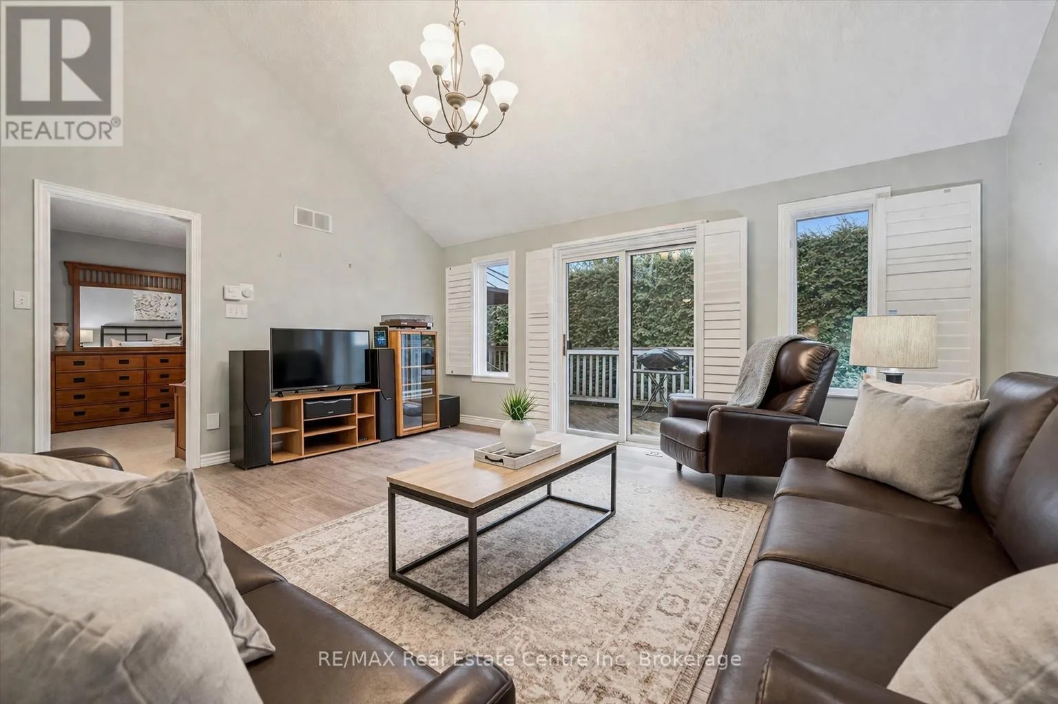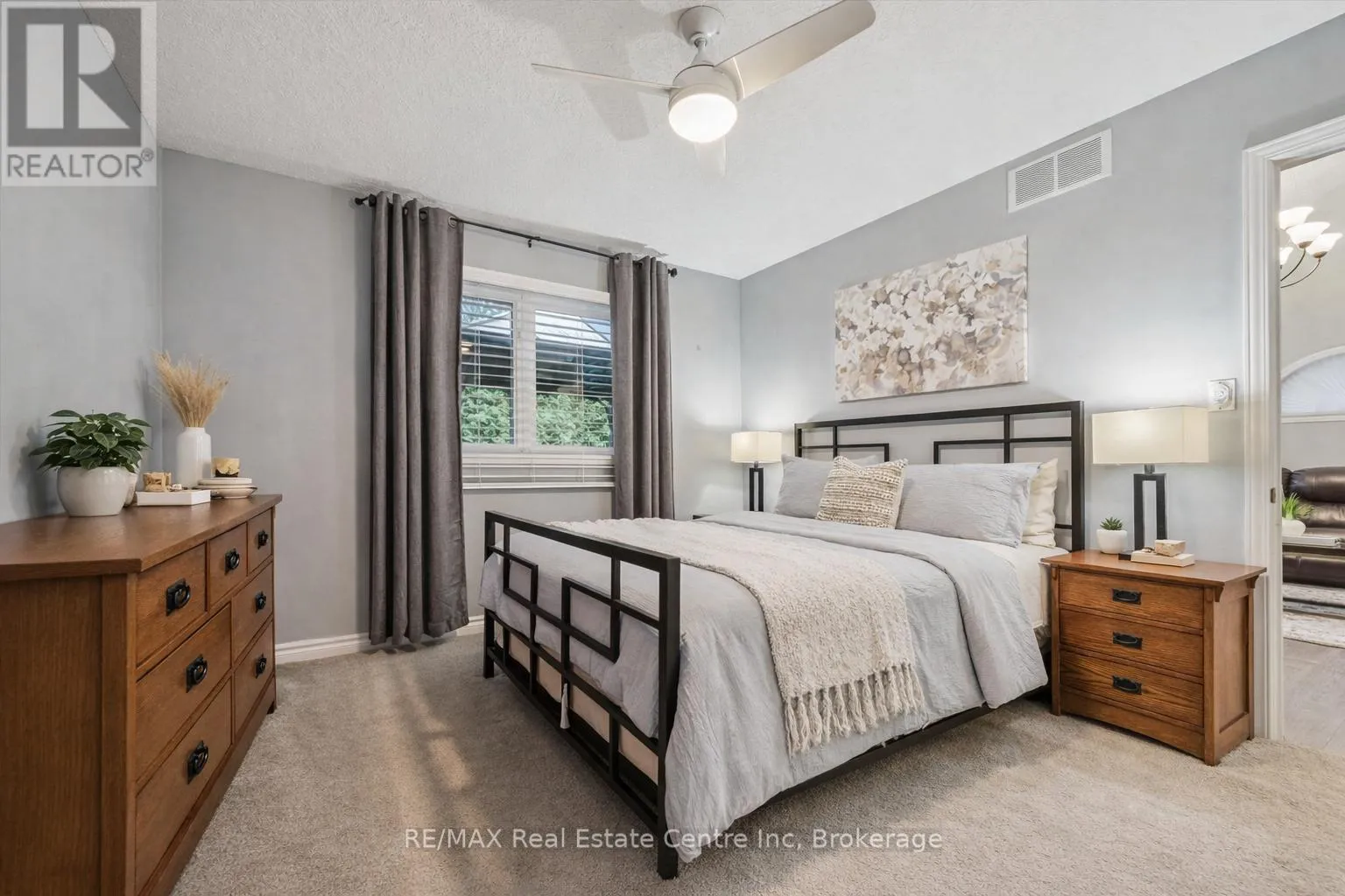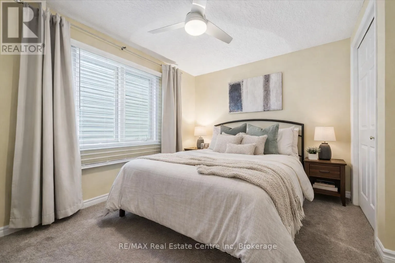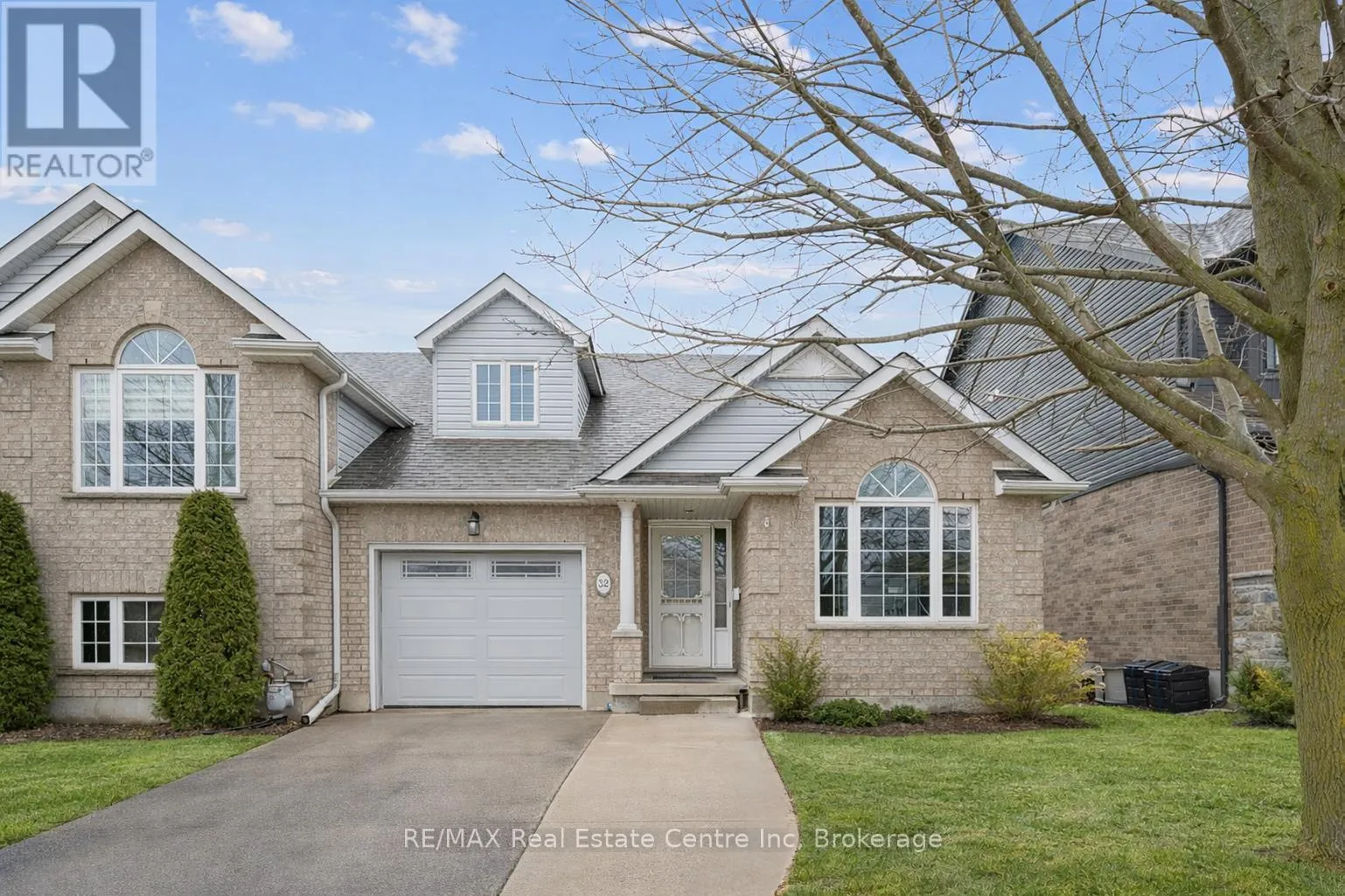 McTavish St 32 Scott St is a spectacular 4-bdrm end-unit bungaloft townhouse backing onto greenspace, offering the perfect blend of low-maintenance living, functional space & unbeatable location in the heart of Fergus! Step inside to bright & inviting eat-in kitchen W/timeless subway tile backsplash, high-end S/S appliances & ample counter space-designed for both everyday living & effortless entertaining. The adjacent living room is truly the heart of the home W/engineered hardwood floors, vaulted ceilings and an abundance of natural light pouring in through large windows & sliding doors-seamlessly connecting your indoor & outdoor living spaces. Main floor is thoughtfully designed for both convenience & flexibility. Spacious primary bdrm W/double closet & 4pc ensuite with shower/tub combo. At the front of the home, an add'l bdrm W/vaulted ceilings, large window &double closet provides incredible versatility-perfect as a home office, formal dining area or sitting room. You'll also find convenient main-floor powder room with oversized vanity, along with main-floor laundry to simplify day-to-day living. Upstairs you'll find 2 add'l bdrms both with double closets-along with 4pc bathroom making this an ideal setup for families, guests or multi-generational living. Unfinished basement offers excellent potential complete with a bathroom rough-in & ready for your finishing touches. Notable updates: new water softener, furnace (2023) & roof (approx. 2015). Step outside to private back deck where mature trees create a peaceful low-maintenance outdoor space. Backing directly onto J.D. Hogarth Public School, you'll enjoy added privacy with no rear neighbours & wide-open greenspace behind. Around the corner from Millburn Park Splash Pad-perfect for summer days with the kids & mins from shopping centres offering all the essentials. Plus enjoy everything downtown Fergus has to offer from charming shops & local restaurants to scenic river walks. A true small-town feel with a vibrant community (id:27476)