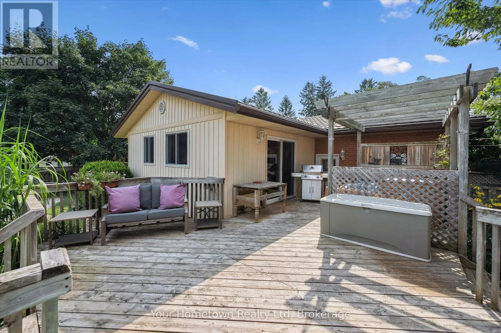Cross Streets: Colborne at Kertland. ** Directions: Colborne and Kertland. Welcome to Colborne St! Located in the Village of Elora, this solid Keating built bungalow has been well cared for by the same owners for 35 years. With approximately 2900sqft of living space, this comfortable home offers 3 bedrooms, 2 baths and an entertainer's kitchen/dining/great room. No need for a gym membership, the attached garage (easily converted back) has been repurposed into a bright gym/office combination. On the lower lever you'll find a spacious entertaining area with tons of storage. If outdoor living is a priority, then there is much to appreciate about the double lot. This mature neighborhood is the perfect setting for the large sundeck with soft tub. Perennial gardens line the private lot. Hardscaping offers many points from which to enjoy the Koi pond and waterfall, pergola and fire pit. Outdoor storage is housed by two large storage sheds. These properties are rarely offered in the Village. An easy commute to Guelph, KW and west GTA. (id:27476)