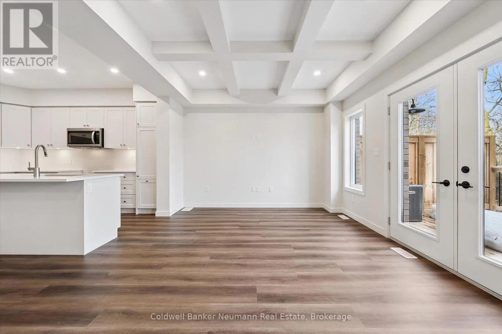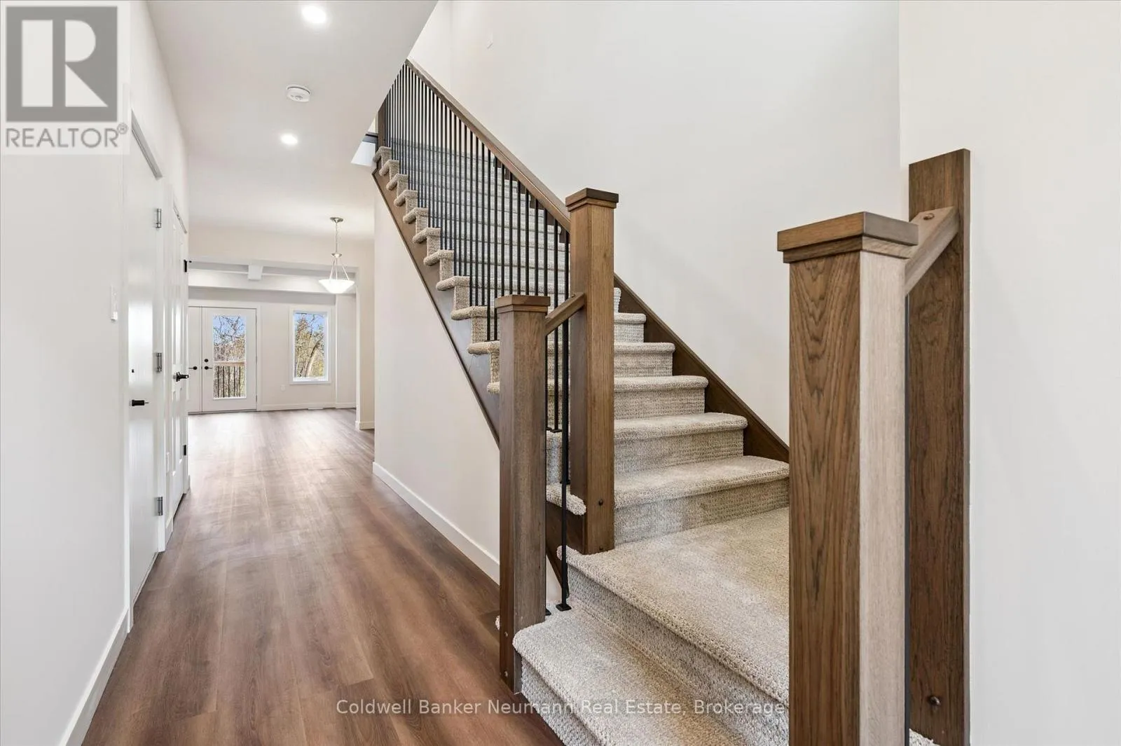 Cross Streets: Harrison St and Imrie Road. ** Directions: South River Road to Gilkison St to Imrie Rd to Harrison St to Fieldstone Lane. Set within the South River community in Elora by Granite Homes, this 1,637 sq. ft. townhome blends thoughtful design with a setting that feels calm and connected to nature. Offering three bedrooms, 2.5 bathrooms, and a layout designed for everyday living. The main floor features 9' ceilings and luxury vinyl plank flooring throughout. At the centre of the home, the kitchen is finished with quartz countertops, upgraded cabinetry, under-cabinet lighting, and an extended breakfast bar that transitions easily from everyday use to entertaining. The living room adds warmth with a coffered ceiling detail, while designer trim carries a clean, cohesive finish throughout. Upstairs, you'll find three bedrooms, including a primary suite with a walk-in closet and a private ensuite featuring a walk-in tiled shower with frameless glass. Second-floor laundry adds everyday convenience. Step outside to a private deck backing onto greenspace, offering a quiet backdrop to unwind or entertain. All while being just minutes from Elora's charming downtown, local restaurants, scenic trails, and a state-of-the-art hospital, with Guelph, Kitchener, and Waterloo easily within reach. (id:27476)