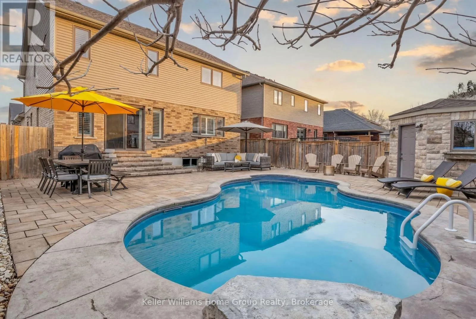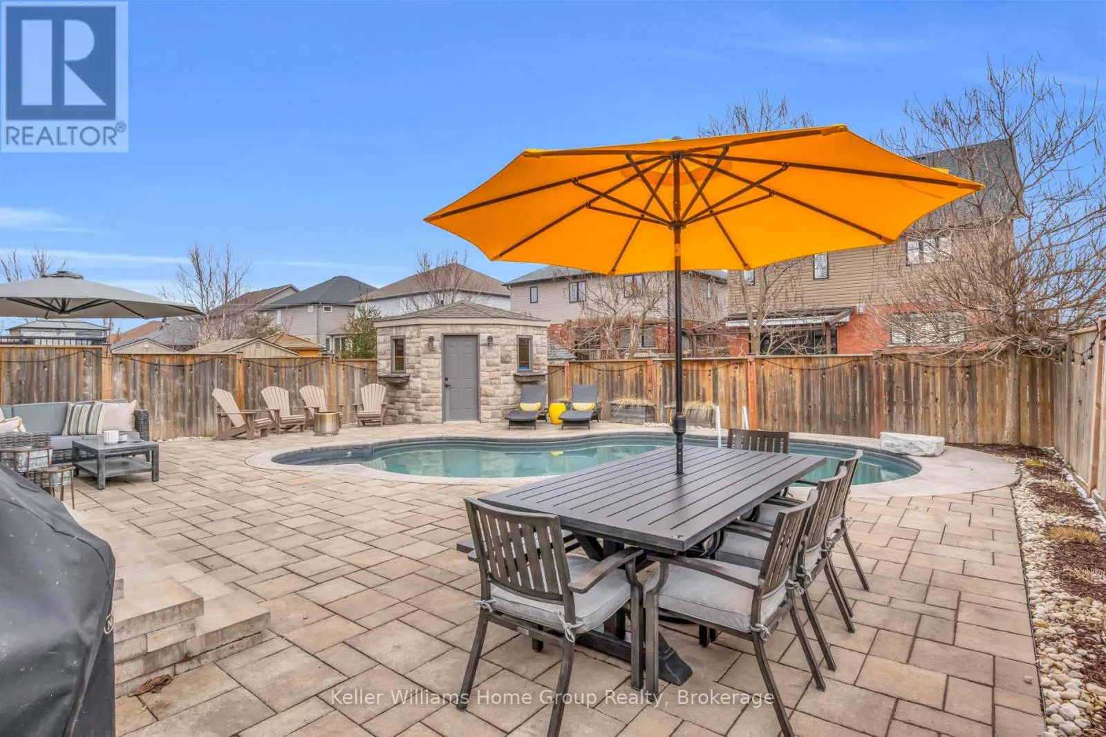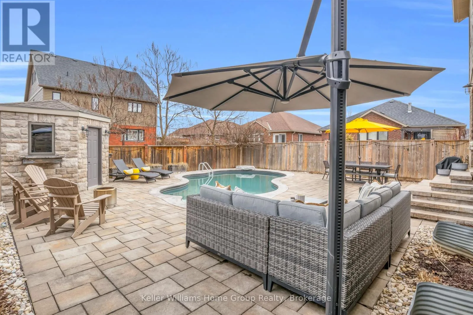 Cross Streets: Stafford St & Spencer Dr. ** Directions: From Bridge St turn left on Stafford, left on McGowan #87 on right. Tucked into one of Elora's most desirable south end neighbourhoods, just steps from the trail and minutes from the charm of downtown. Welcome to 87 McGowan Street, Built in 2014 by award-winning Wright Haven Homes, this impressive 4-bedroom, 4-bathroom home offers over 3300 sq ft of finished living space. With its prime location and exceptional features, this property is sure to capture your attention. The spacious eat-in kitchen is designed for both everyday living and entertaining, featuring stainless steel appliances, a large island, and upgraded cabinetry, all seamlessly open to the family room. The living room showcases a cozy gas fireplace, custom built-in cabinetry, and oversized windows overlooking the private, resort-style backyard with a saltwater pool. Professionally landscaped, the backyard includes a stone patio, elegant poolside coping, and a versatile shed with a stone exterior that houses pool equipment, a change area, and even a fridge, perfect for summer entertaining. The main floor is completed by a powder room, a large mudroom with laundry, and stunning backyard views throughout. Upstairs, the primary suite offers a true retreat with a walk-through closet leading to a bright ensuite featuring a soaker tub and separate shower. Three additional generously sized bedrooms, a 3-piece bathroom, and a bonus TV/lounge area complete the second level. Recent updates include a new pool heater (2 years old), new hardwood flooring in the main floor living room, and a fully finished basement (2025) with a new bathroom. The home is also equipped with all new California shutters throughout. Don't miss out on the opportunity to make this house your home. With its modern design, upgraded features, and family-friendly layout 87 McGowan Street is the perfect place to create lasting memories. Schedule your private showing today! (id:27476)