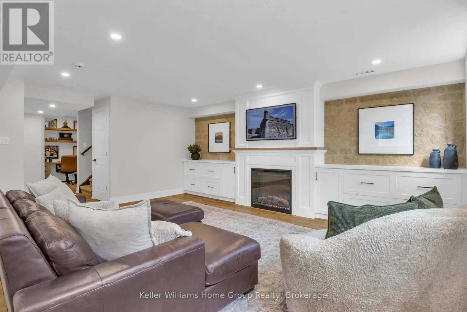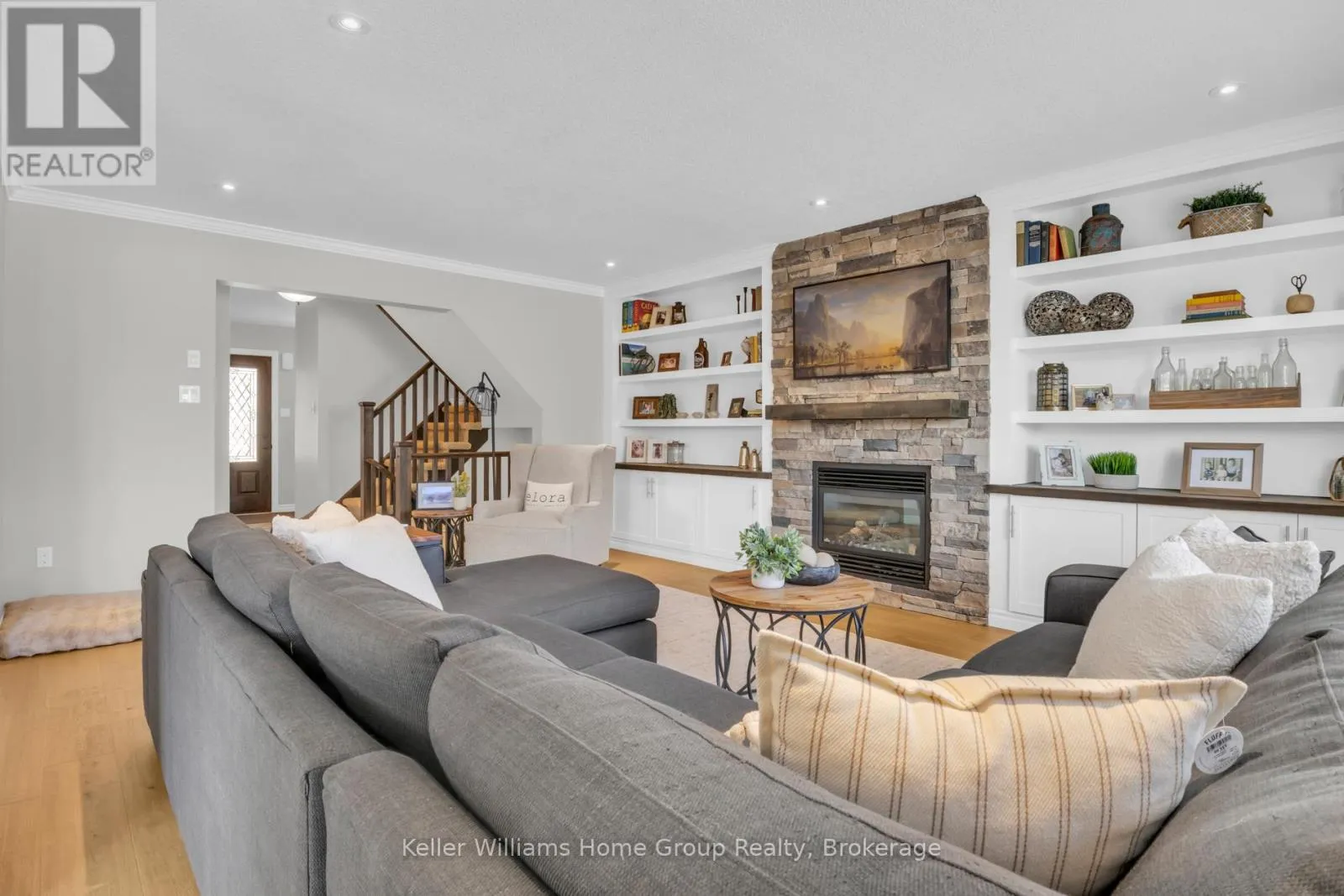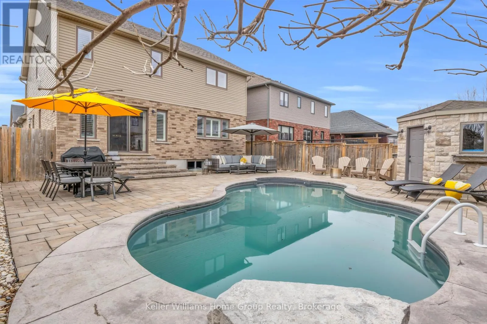Cross Streets: Stafford St & Spencer Dr. ** Directions: From Bridge St turn left on Stafford, left on McGowan #87 on right. Tucked into one of Elora's most desirable south end neighbourhoods, just steps from the trail and minutes from the charm of downtown. Welcome to 87 McGowan Street, Built in 2014 by award-winning Wright Haven Homes, this impressive 4-bedroom, 4-bathroom home offers over 3300 sq ft of finished living space. With its prime location and exceptional features, this property is sure to capture your attention. The spacious eat-in kitchen is designed for both everyday living and entertaining, featuring stainless steel appliances, a large island, and upgraded cabinetry, all seamlessly open to the family room. The living room showcases a cozy gas fireplace, custom built-in cabinetry, and oversized windows overlooking the private, resort-style backyard with a saltwater pool. Professionally landscaped, the backyard includes a stone patio, elegant poolside coping, and a versatile shed with a stone exterior that houses pool equipment, a change area, and even a fridge, perfect for summer entertaining. The main floor is completed by a powder room, a large mudroom with laundry, and stunning backyard views throughout. Upstairs, the primary suite offers a true retreat with a walk-through closet leading to a bright ensuite featuring a soaker tub and separate shower. Three additional generously sized bedrooms, a 3-piece bathroom, and a bonus TV/lounge area complete the second level. Recent updates include a new pool heater (2 years old), new hardwood flooring in the main floor living room, and a fully finished basement (2025) with a new bathroom. The home is also equipped with all new California shutters throughout. Don't miss out on the opportunity to make this house your home. With its modern design, upgraded features, and family-friendly layout 87 McGowan Street is the perfect place to create lasting memories. Schedule your private showing today! (id:27476)
