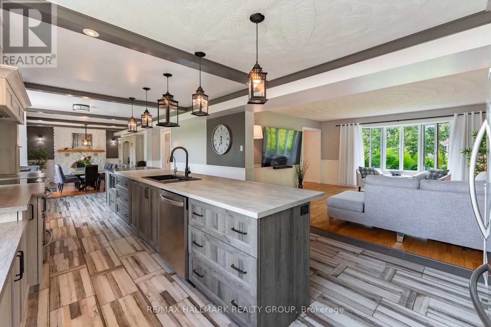 Cross Streets: dandy rd. ** Directions: from county rd 17, turn on Dandy(12th), turn left on Pattee. Nestled on a beautifully landscaped corner lot near the Quebec-Ontario border, this executive 2-storey home offers the perfect blend of elegance, comfort, and convenience. Ideally located just 35 minutes from Montreal's West Island, 1 hour from Ottawa, and only 5 minutes to Hawkesbury's renowned hospital, shopping, restaurants, and marina on the Ottawa River this is a lifestyle opportunity you don't want to miss.The second level offers four spacious bedrooms, including a primary suite with a full ensuite and a separate full bathroom for the remaining bedrooms perfect for a growing family. On the main floor, enjoy a fully renovated open-concept layout where the kitchen becomes the heart of the home. Featuring a huge center island, built-in appliances, and an abundance of cabinetry, this kitchen is designed for entertaining. It flows seamlessly into the dining area, complete with a cozy wood-burning fireplace and patio doors that open to your private backyard retreat.Step outside to a brand-new poured concrete patio featuring an outdoor kitchen, pergola, and an above-ground pool ideal for summer fun and gatherings. The fully finished basement adds two more bedrooms and a spacious rec room, offering flexibility for guests, office space, or a home gym.Additional features include a double attached garage, central air conditioning, a paved driveway, and rough-in for central vacuum. This home is move-in ready and designed for both family life and entertaining in style. (id:27476)