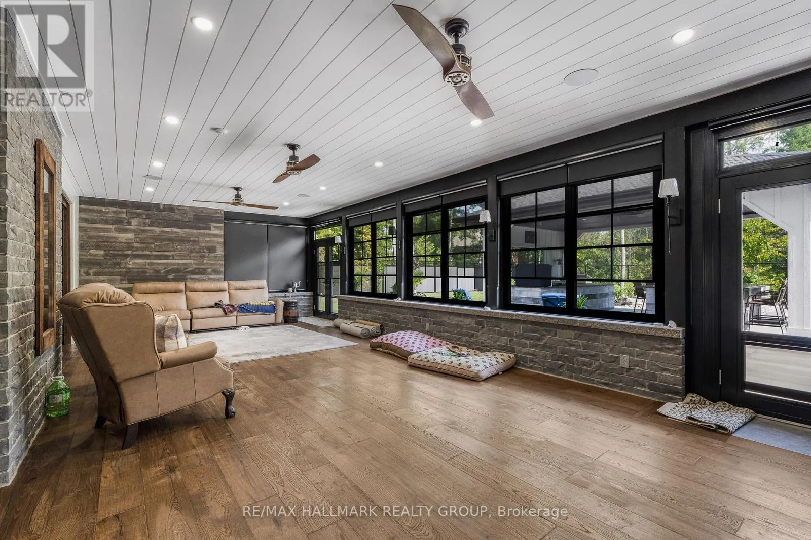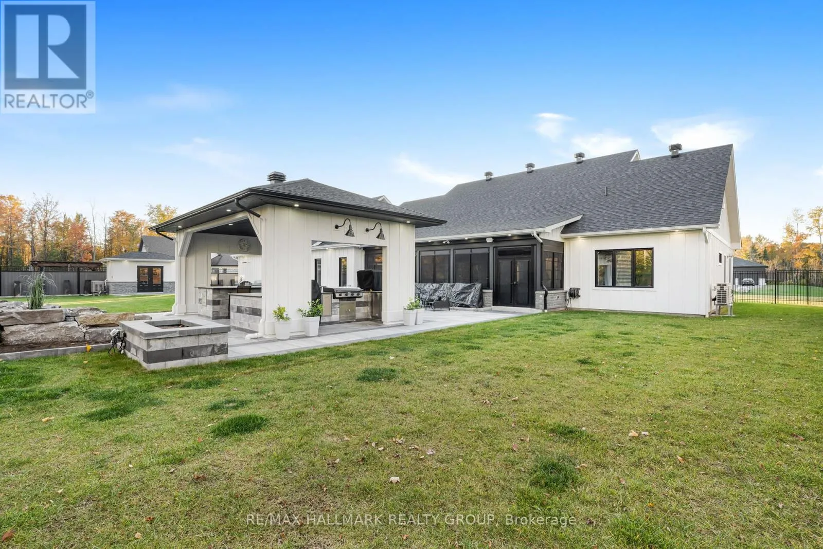 Cross Streets: Rue heritage. ** Directions: Lemoyne to La Seigneurie. A Modern Farmhouse Masterpiece Domaine La Seigneurie, LOrignalWelcome to your forever home where modern luxury meets farmhouse charm. Nestled in the prestigious Domaine La Seigneurie, this residence was designed to impress from every angle, with top-of-the-line finishes and warm inviting spaces that will make you fall in love the moment you step inside.Strategically located only 1 hour from Montreal, Ottawa, and Mont-Tremblant, youll enjoy the best of all worlds peaceful countryside living with quick access to the city, skiing, dining, and entertainment.Property Features:Style: Modern farmhouse bungalow with loftGarage: Oversized 3-car garage with wood-style doorsBedrooms: 3+1 spacious bedroomsBathrooms: 3 full bathrooms + 1 powder roomLiving Area: Approx. 3,700 sq. ft. of refined comfortLot: Expansive landscaped grounds in an exclusive communityInterior Highlights:A grand open-concept living area with soaring cathedral ceilings, wood beams, and a statement brick fireplace perfect for cozy evenings or elegant entertaining.A dream chefs kitchen featuring premium appliances, a massive island, and custom cabinetry built to host unforgettable gatherings.Spa-inspired bathrooms with freestanding tubs, rain showers, and double vanities designed for pure relaxation.A luxurious primary suite with walk-in closet and ensuite that feels like your private retreat.Practicality meets beauty with a mudroom and laundry room complete with built-ins and abundant storage.Exterior & Lifestyle:A covered outdoor kitchen & entertainment space with granite counters and built-in appliances your own backyard paradise for family barbecues and evenings under the stars.Charming front porch perfect for morning coffee or evening sunsets.Large paved driveway with plenty of parking for guests.A serene setting in Domaine La Seigneurie, combining privacy, elegance, and proximity to all amenitie (id:27476)