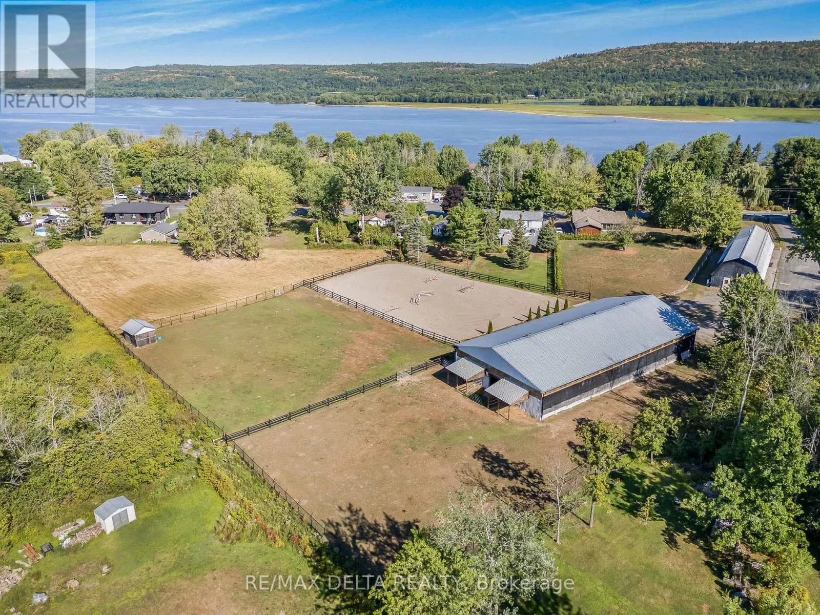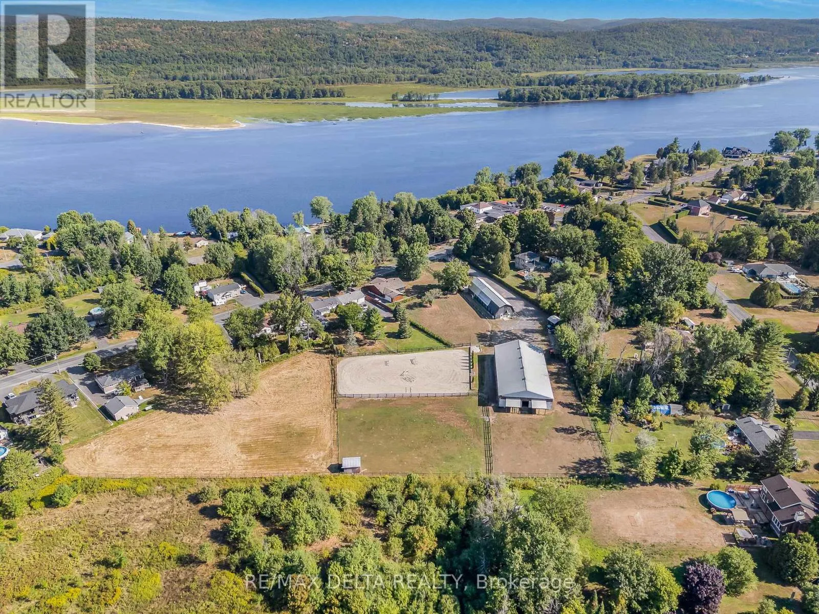 Cross Streets: Eliza. ** Directions: From L'Orignal, Front rd direction East. At 439 Front you will enjoy a full equestrian set-up featuring a 2-storey living space (2 bedrooms, 2 baths, kitchen & living room) attached to a heated stable with 8 stalls, 3 grooming stalls, tack room area and a large hay loft. This property also has an indoor arena with upgraded lighting and gas space heater, outdoor sand ring, and multiple paddocks. Municipal water and sewer service. (id:27476)