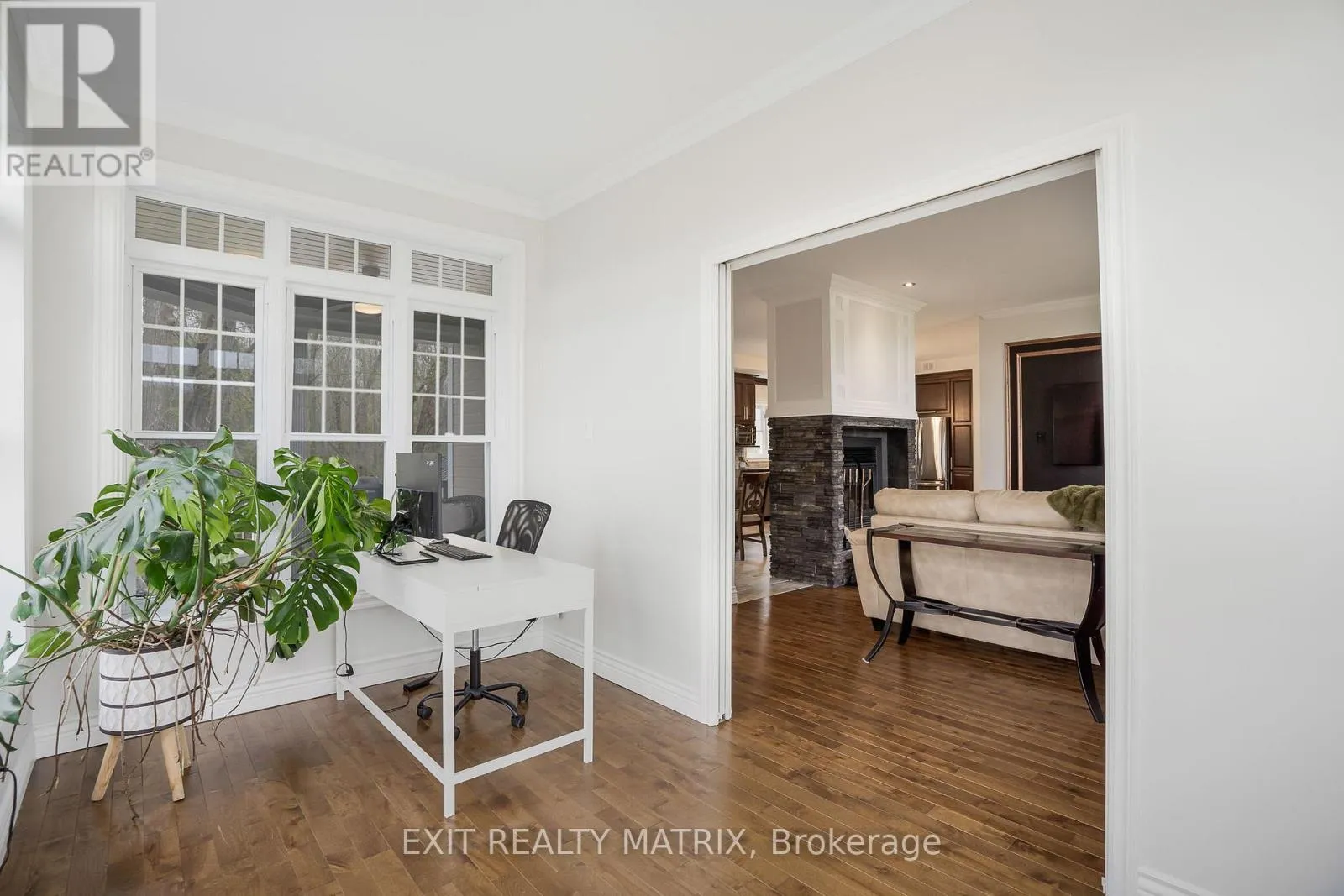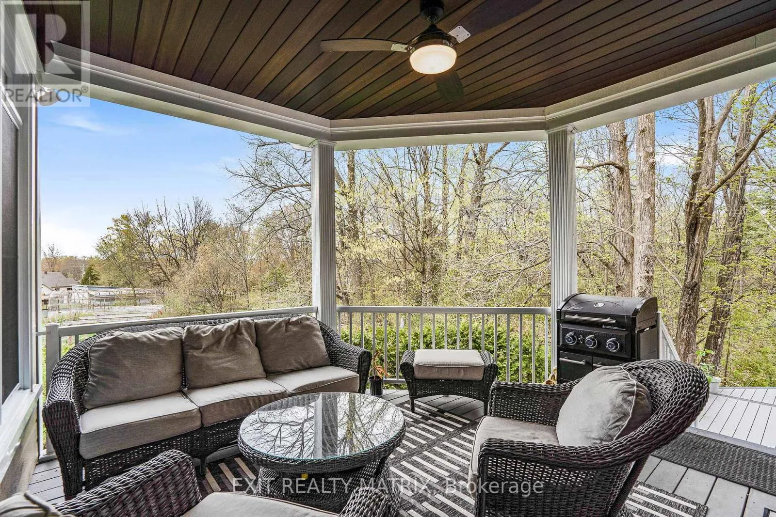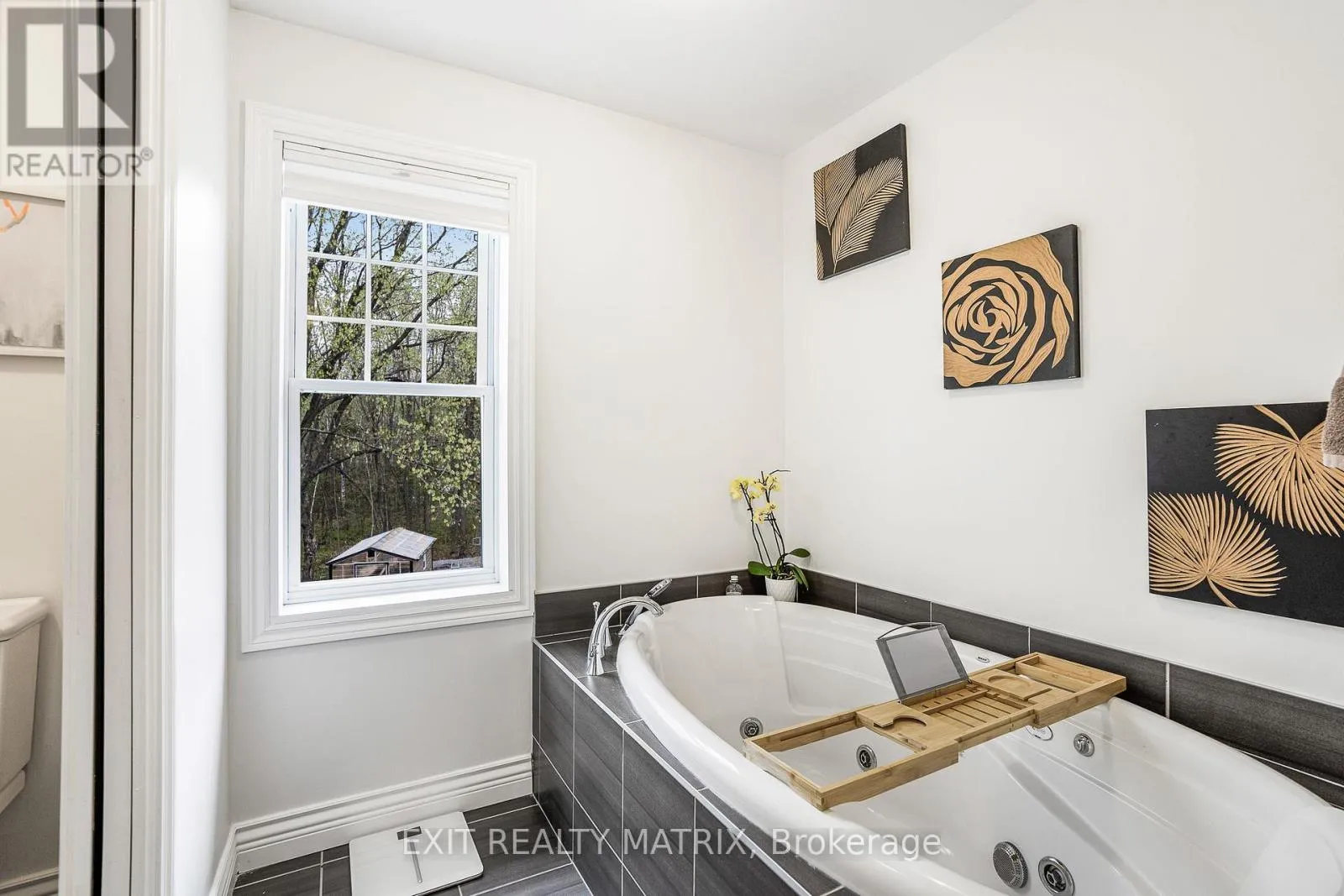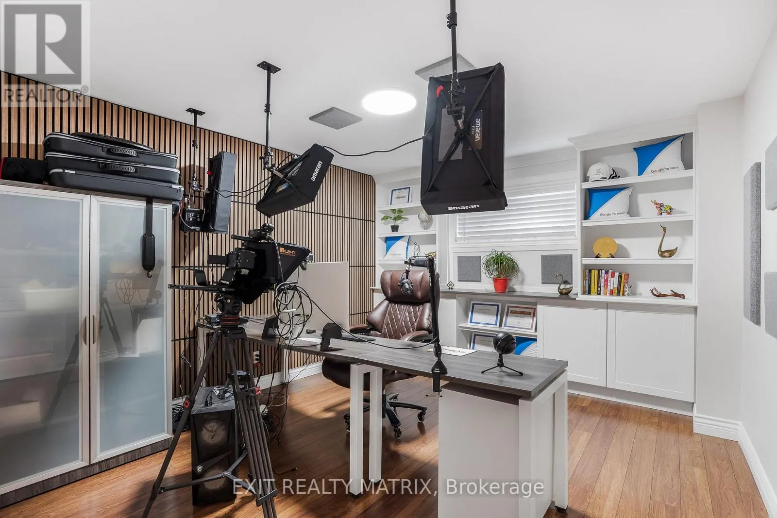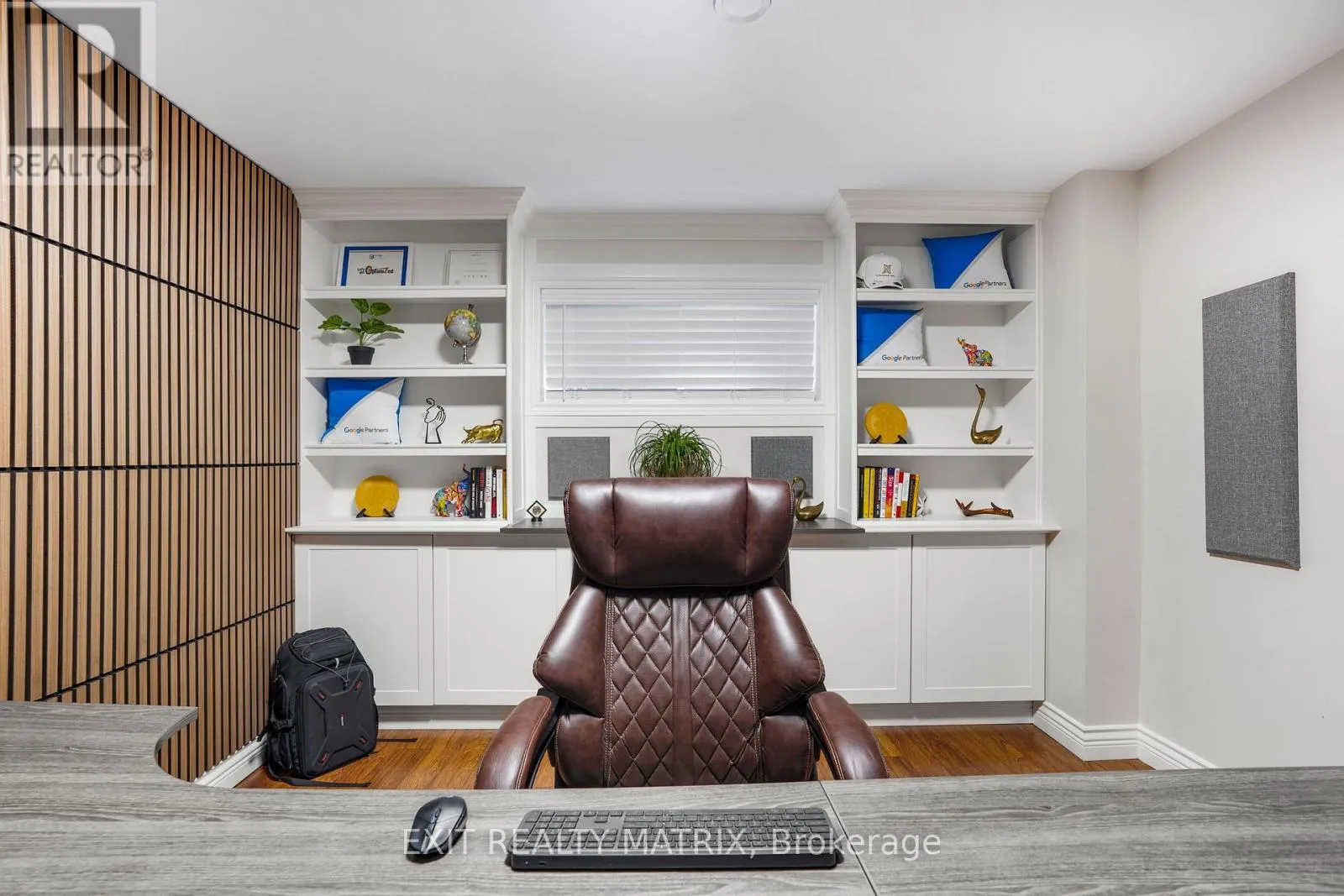 Cross Streets: Golf Club Rd. ** Directions: 64 Radstock Lane, Hawkesbury. Welcome to this exceptional property, situated within a private and exclusive gated community in Hawkesbury, conveniently located across from the renowned Hawkesbury Golf & Curling Club. This executive residence offers refined living and features a breathtaking 30ft waterfall on its grounds, providing a serene and enchanting atmosphere. The spacious open-concept main floor includes a chefs kitchen equipped with granite countertops, cherry wood cabinetry, and a large center island, ideal for both entertaining and culinary endeavors. A striking double-sided wood-burning fireplace enhances the warmth and charm of the living and dining areas, creating an inviting ambiance. A dedicated laundry room and a stylish partial bathroom are also conveniently located on this level. The upper level comprises three well-appointed bedrooms, two of which provide direct access to a private balcony, perfect for enjoying morning coffee or evening sunsets. The luxurious primary suite features a spa-inspired ensuite with a deep, jetted tub, an elegant tiled shower, and an oversized walk-in closet. The fully finished basement expands the living space with two additional bedrooms, including a custom professionally built home studio and office, suitable for content creators or remote professionals. Furthermore, the basement includes a custom entertainment bar area with a 72 bottle capacity. The garage offers a professional golf simulator with a 20' x 24' four-hole putting green for golf enthusiasts. The exterior of the property offers a backyard oasis featuring a covered porch leading to a relaxing hot tub under a metal gazebo, meticulously manicured landscaping, a scenic path to the impressive Rideau Falls located on the property, and a cozy firepit area, providing a private retreat for all seasons. Over 3500 sq ft of finished living space. This exceptional offering combines executive comfort, natural beauty, and a prime location. (id:27476)