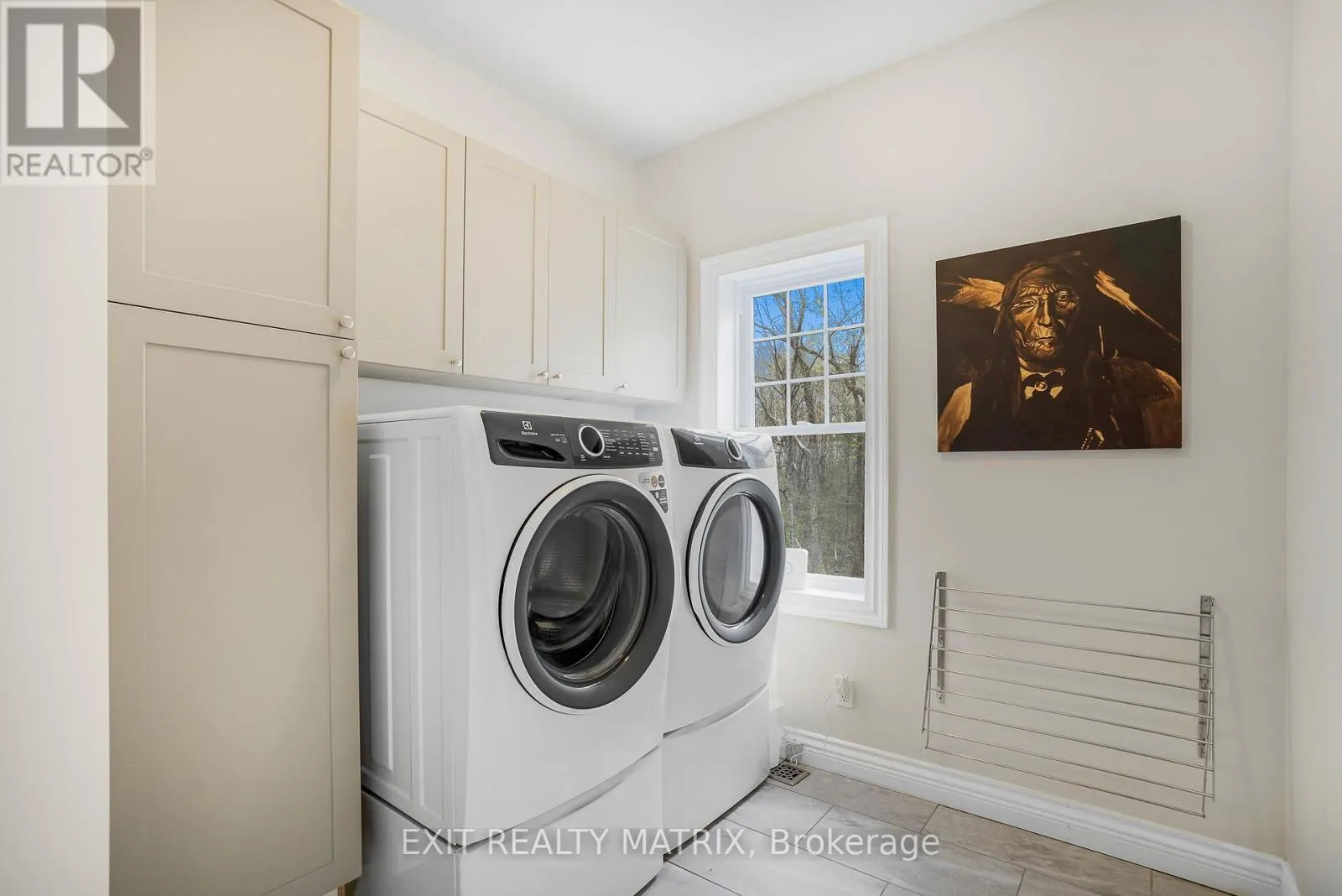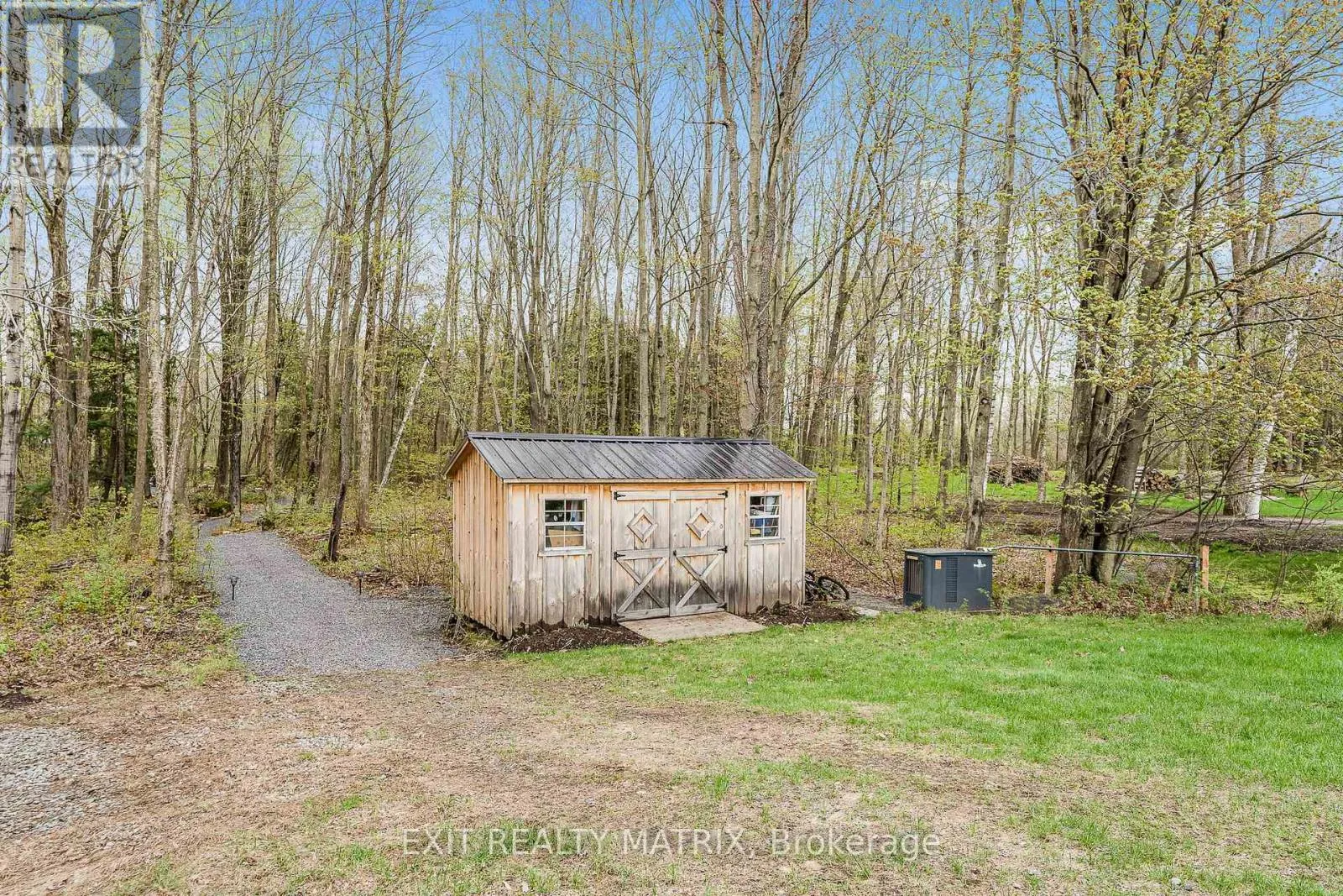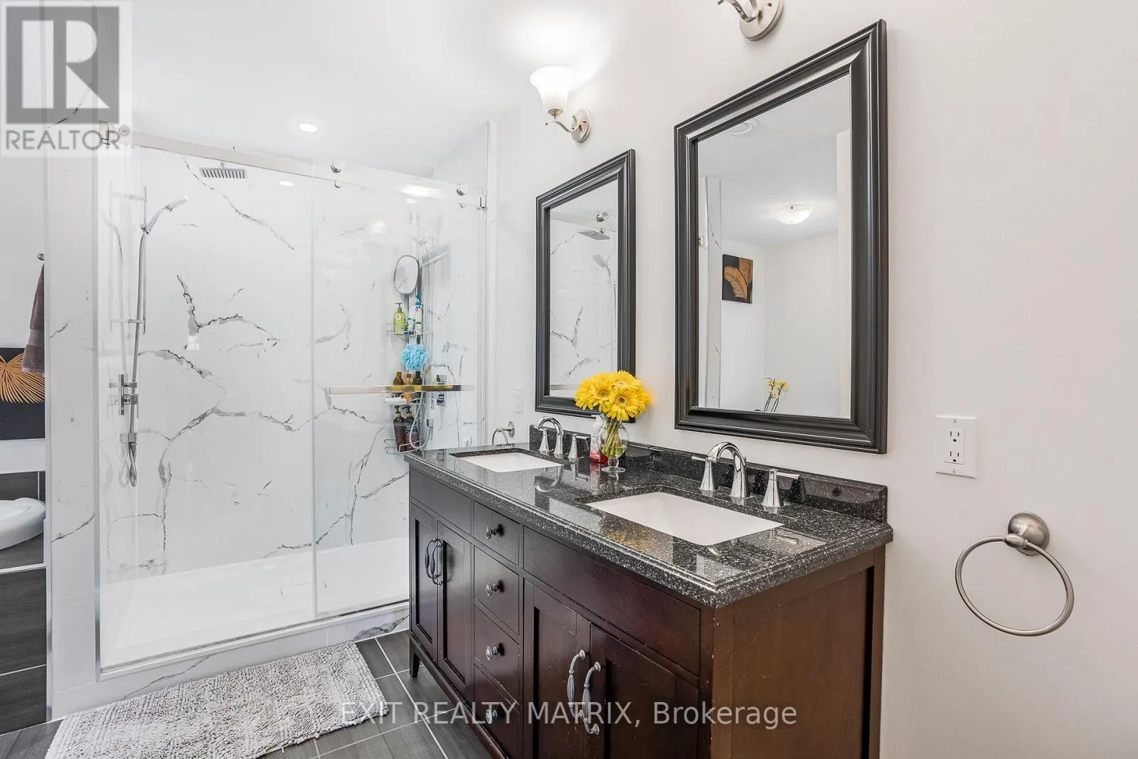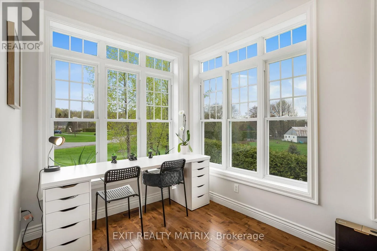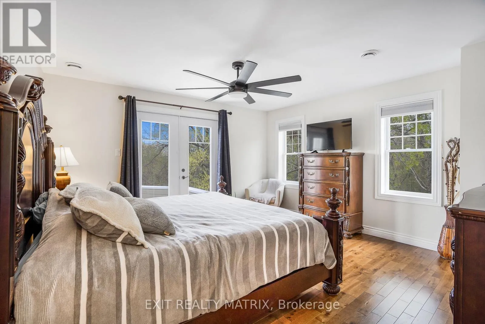 Cross Streets: Golf Club Rd. ** Directions: 64 Radstock Lane, Hawkesbury. Welcome to this exceptional property, situated within a private and exclusive gated community in Hawkesbury, conveniently located across from the renowned Hawkesbury Golf & Curling Club. This executive residence offers refined living and features a breathtaking 30ft waterfall on its grounds, providing a serene and enchanting atmosphere. The spacious open-concept main floor includes a chefs kitchen equipped with granite countertops, cherry wood cabinetry, and a large center island, ideal for both entertaining and culinary endeavors. A striking double-sided wood-burning fireplace enhances the warmth and charm of the living and dining areas, creating an inviting ambiance. A dedicated laundry room and a stylish partial bathroom are also conveniently located on this level. The upper level comprises three well-appointed bedrooms, two of which provide direct access to a private balcony, perfect for enjoying morning coffee or evening sunsets. The luxurious primary suite features a spa-inspired ensuite with a deep, jetted tub, an elegant tiled shower, and an oversized walk-in closet. The fully finished basement expands the living space with two additional bedrooms, including a custom professionally built home studio and office, suitable for content creators or remote professionals. Furthermore, the basement includes a custom entertainment bar area with a 72 bottle capacity. The garage offers a professional golf simulator with a 20' x 24' four-hole putting green for golf enthusiasts. The exterior of the property offers a backyard oasis featuring a covered porch leading to a relaxing hot tub under a metal gazebo, meticulously manicured landscaping, a scenic path to the impressive Rideau Falls located on the property, and a cozy firepit area, providing a private retreat for all seasons. Over 3500 sq ft of finished living space. This exceptional offering combines executive comfort, natural beauty, and a prime location. (id:27476)