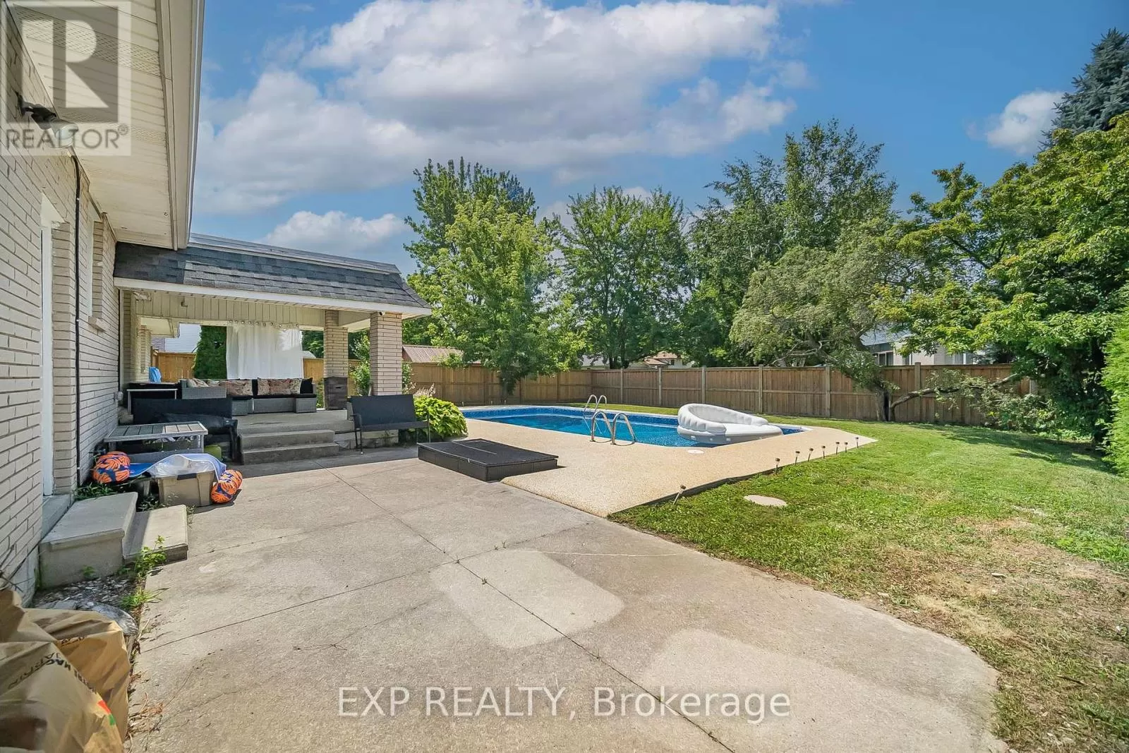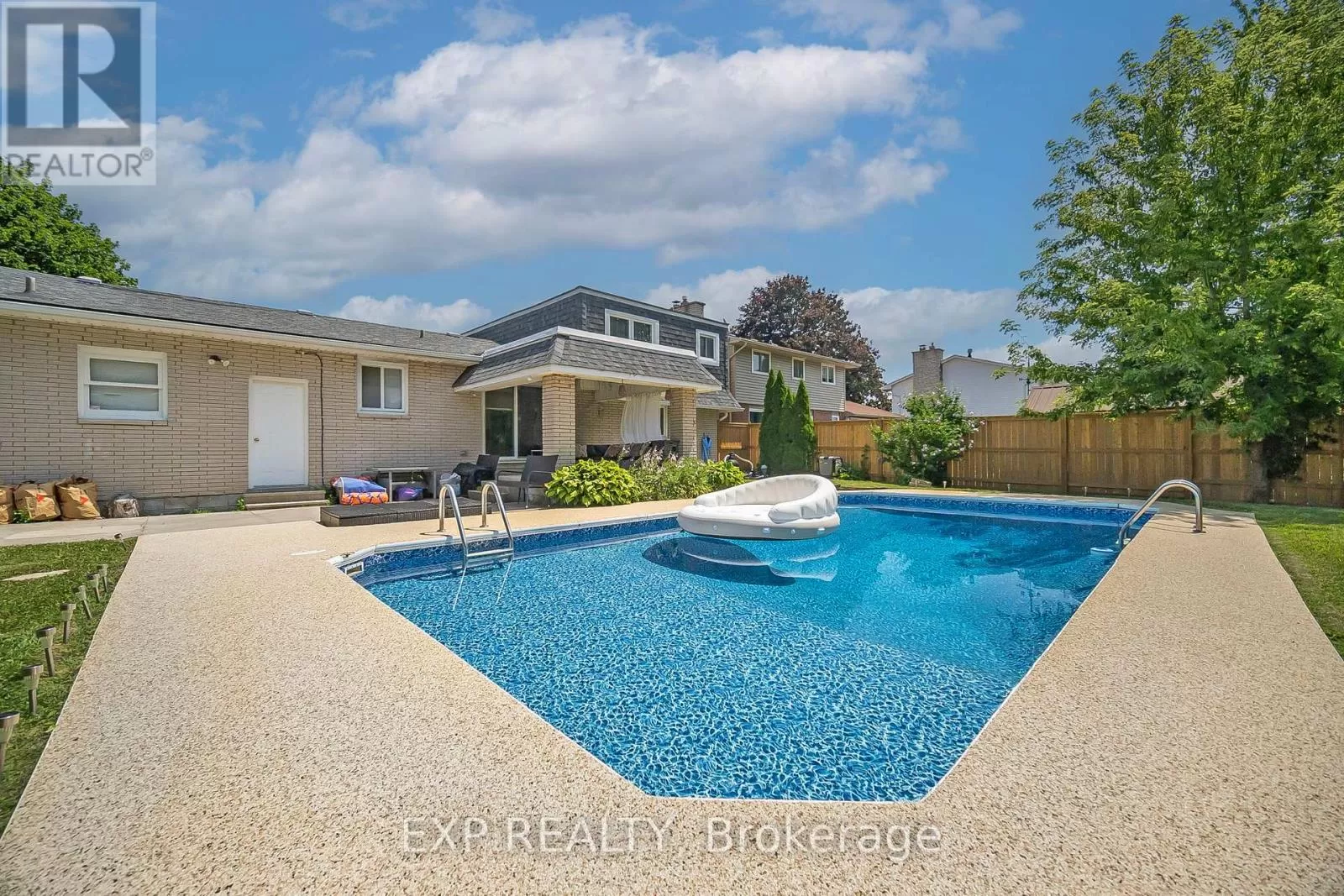 Cross Streets: Oxley. ** Directions: McNaughton Ave W to Baldoon to Perry. Welcome to this beautiful family home that offers comfort, style, and an unbeatable location! Situated in a highly desirable neighbourhood just steps from the school and a scenic nature trail, this charming 3-level side split boasts incredible curb appeal and everything your family needs to thrive. Inside, you'll find three spacious bedrooms, a warm and inviting living space, and a finished basement, perfect for a playroom, home office, or cozy family retreat. The layout offers a great mix of open gathering areas and private space for everyone to enjoy. Step outside to your fully fenced backyard oasis, featuring a gorgeous in-ground pool, perfect for summer fun and entertaining. Whether you're hosting a barbecue or relaxing by the water, this backyard is designed for making memories. Additional features include an attached garage, a double-wide driveway, and tasteful finishes throughout. This home truly has it all: a quiet, family-friendly location, close proximity to nature and schools, and a layout that fits your lifestyle. This home has numerous updates including concrete pool deck, pool heater, pool filter, carpet in the basement, kitchen sink and faucet, all in 2025, furnace 2018, AC 2020, roof, upper windows, and fence 2023, eavestrough 2022, downstairs windows, 2017 and more! Don't miss your chance to call this incredible property home! (id:27476)