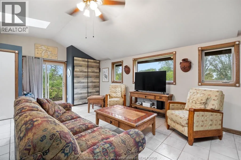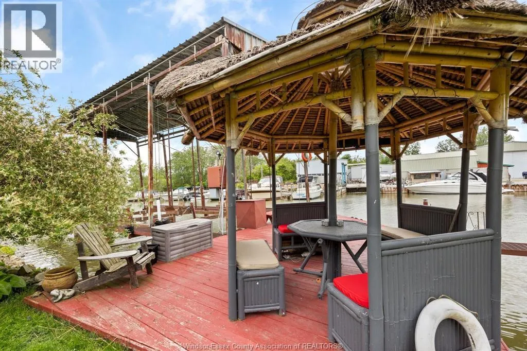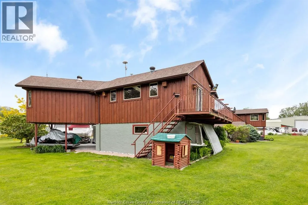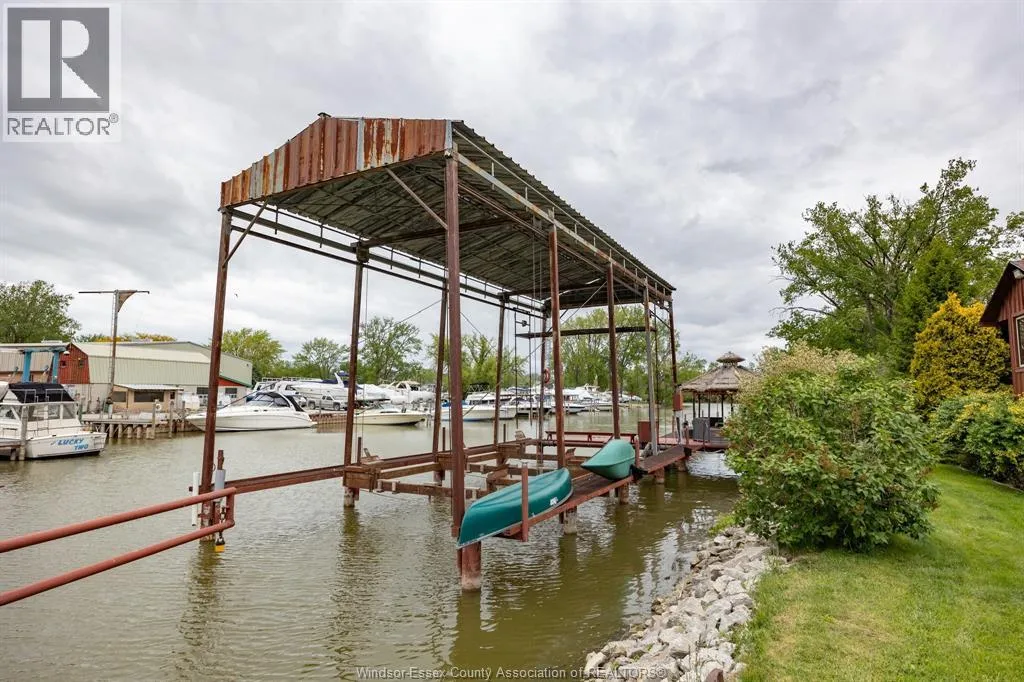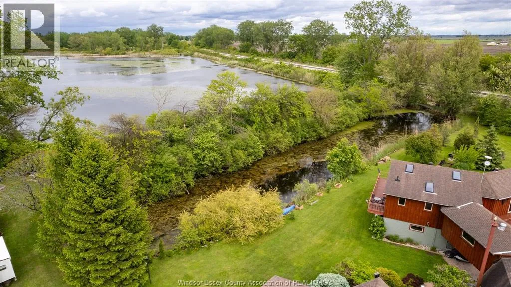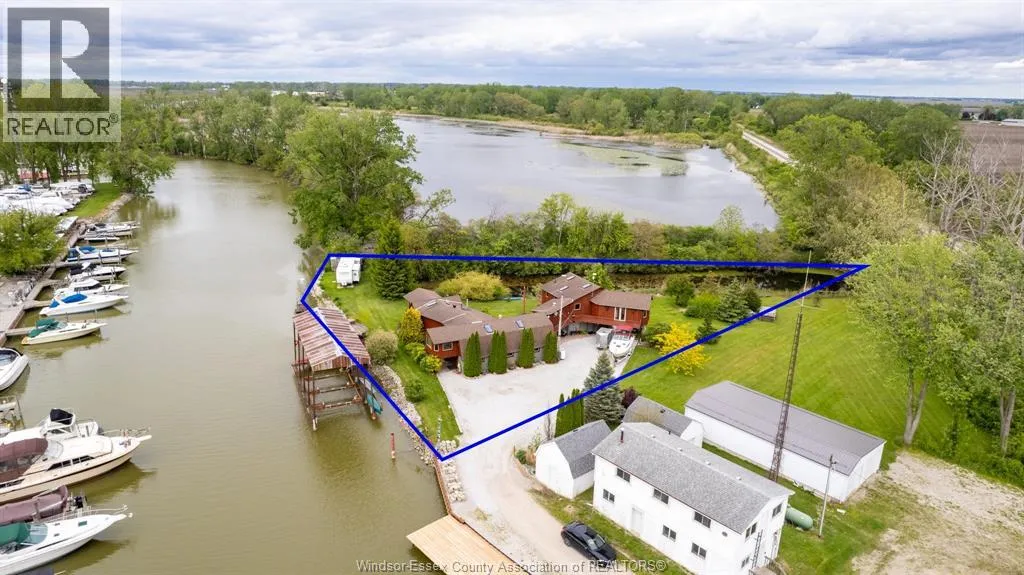Tecumseh Rd to N on Dashwheel Road over the tracks past the Minsitry building at the end 220 ft of waterfront in one of the best fishing areas in Ontario. This beautiful home will make you feel like you are in a resort, enjoy sipping your coffee from your deck or enjoy a glass of wine at sunset. The second floor living space gives you incredible views of this pristine outdoor paradise. Ideal location for avid fisherman, duck hunters, boaters, snowmobilers, atv riding. Located across the river from Luken Marina, this quiet dead end road offers privacy and wildlife viewing bar none. 3 bedrooms, 2 full bathrooms, 2 kitchens, 3 living rooms,( many separate living spaces perfect for a granny suite) , bar/mancave building, heated and cooled workshop, 2nd floor balconies, and covered patio areas on main level winding through landscaped gardens 44' boat well and 15,000 pound lift complete this package............come and take a look today is the day to finally change your lifestyle and feel like you are on vacation year round! (id:27476)