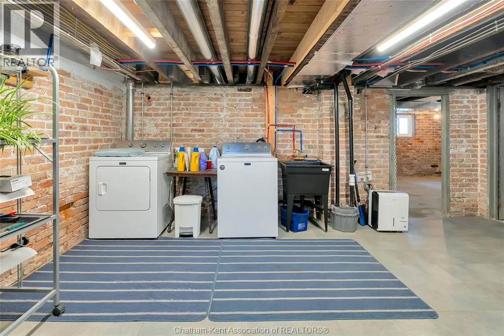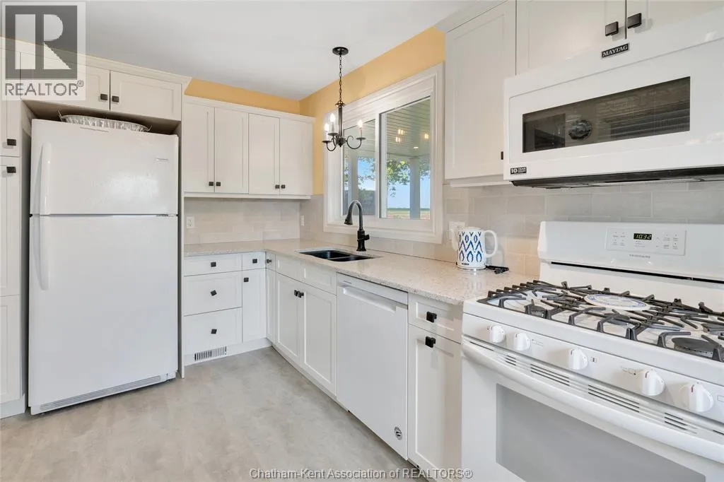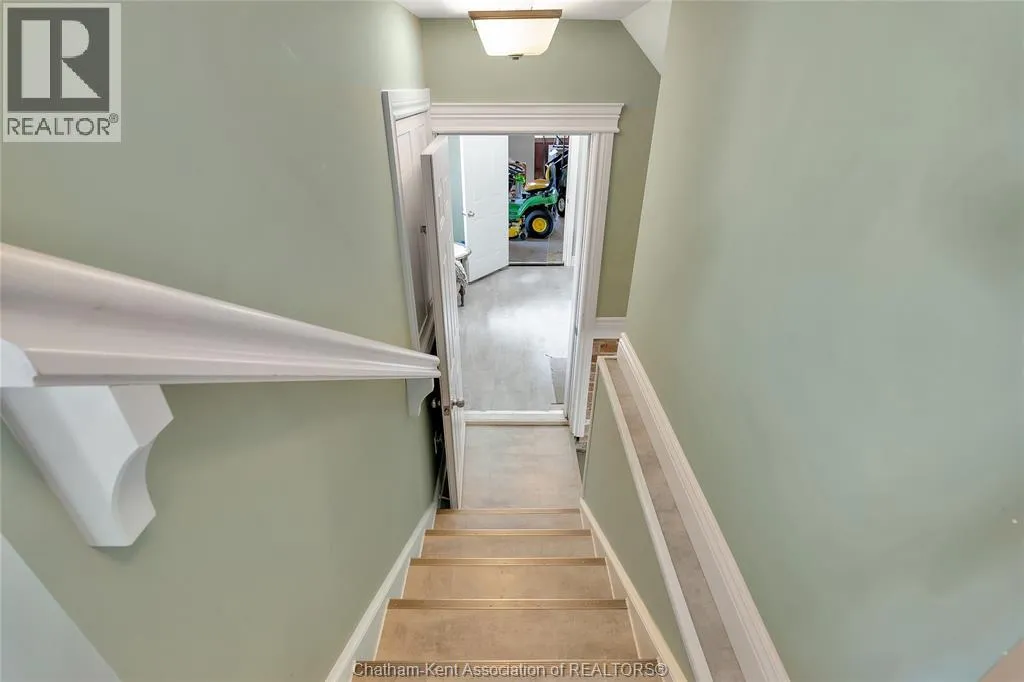 Exquisite country retreat just 1 KM from Chatham! This fully renovated triple-brick farmhouse blends historic charm with modern upgrades on a picturesque 1.48-acre lot. A 35' x 80' barn with lean-to and a second outbuilding offer endless potential for hobby farming, storage, or workshop use. The main floor features a covered composite deck, spacious mudroom off the attached double garage, custom kitchen with premium finishes, elegant dining room, cozy living room with gas fireplace and custom mantle, rear entry room, and a stylish 2-piece bath. Upstairs offers 3 spacious bedrooms, including a primary suite with cheater access to a luxurious 5-piece bathroom. The full basement includes laundry, storage, and utility space. Renovated from septic system to metal roofânothing has been overlooked. Bonus: included is a 0.87-acre waterfront lot south of Grande River Line with over 300 ft of river frontageâperfect for fishing, kayaking, or relaxing by the water. (Note: lot is not buildable.) Legally described as: PT LT 19 CON 1 DOVER AS IN 571887 LYING S OF RIVER RD; S/T 214406; CHATHAM-KENT. A rare find combining country charm, modern living, and bonus riverfront just minutes from town! *This listing is conditional upon the seller purchasing and occupying a specific property. (id:27476)