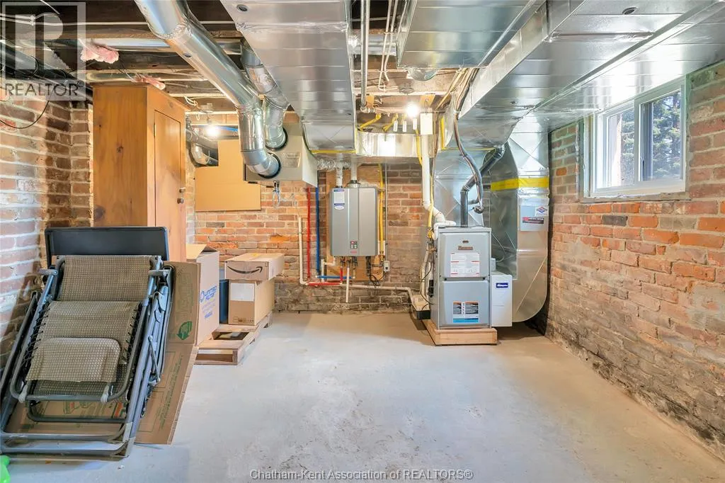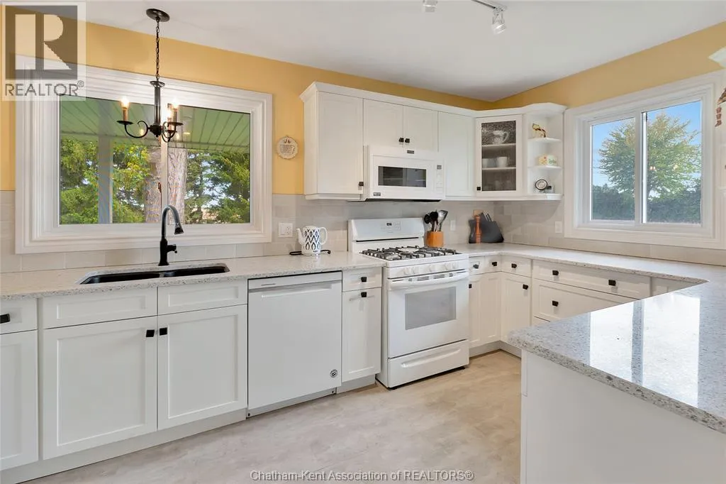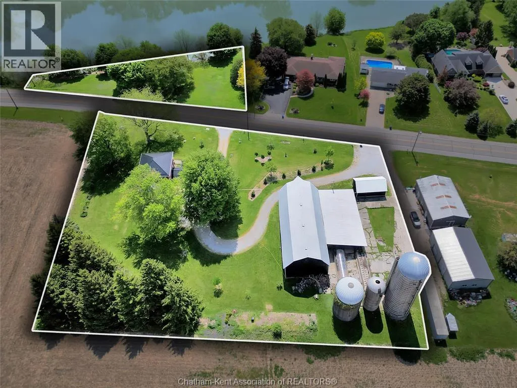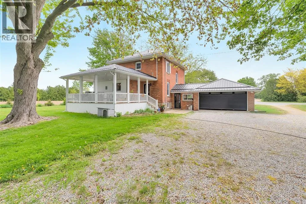 Grand Ave West to Grande River Line Exquisite country retreat just 1 KM from Chatham! This fully renovated triple-brick farmhouse blends historic charm with modern upgrades on a picturesque 1.48-acre lot. A 35' x 80' barn with lean-to and a second outbuilding offer endless potential for hobby farming, storage, or workshop use. The main floor features a covered composite deck, spacious mudroom off the attached double garage, custom kitchen with premium finishes, elegant dining room, cozy living room with gas fireplace and custom mantle, rear entry room, and a stylish 2-piece bath. Upstairs offers 3 spacious bedrooms, including a primary suite with cheater access to a luxurious 5-piece bathroom. The full basement includes laundry, storage, and utility space. Renovated from septic system to metal roofânothing has been overlooked. Bonus: included is a 0.87 acre waterfront lot south of Grande River Line with over 300 ft of river frontageâperfect for fishing, kayaking, or relaxing by the water. (Note: lot is not buildable.) A rare find combining country charm, modern living, and bonus riverfront just minutes from town! (id:27476)