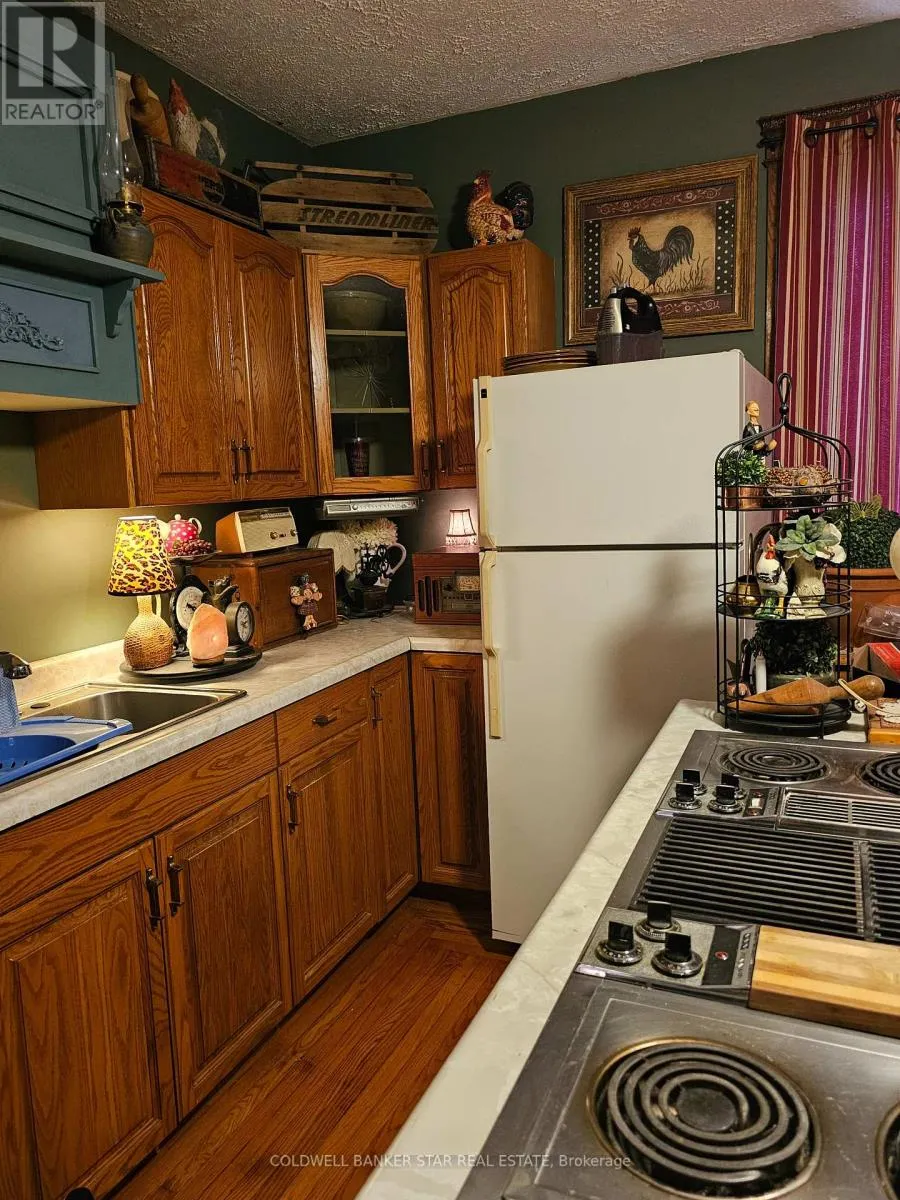 Cross Streets: LONDON RD, ANN STREET. ** Directions: EAST ON LONDON RD FROM VICTORIA RD. Turn-key! Stunning 3 bedroom 2 bath 2.5 story Victorian home with detached double car garage with a pushout toward the back for workshop area. Chocked full of many updates. Located in the lovely hamlet of Thamesville, close to the 401. Updates within last 3 years include new asphalt shingles on the house, metal roof on the garage, soffit and facia and front porch painted on house, most of the North Star windows new with fresh paint. New hardwood in wrap around porch. FYI fireplace in porch will be removed. New vinyl floor in entry way. New vinyl in upper level bathroom with new tub. New paint in living room, 2 bedrooms upstairs. Deck repair with new boards, most wiring in the house and garage. Newly built she-shed and woodworking shed for storage. Also added the porch on the back of the house. Great for morning coffee, or chilling in the evening. (id:27476)