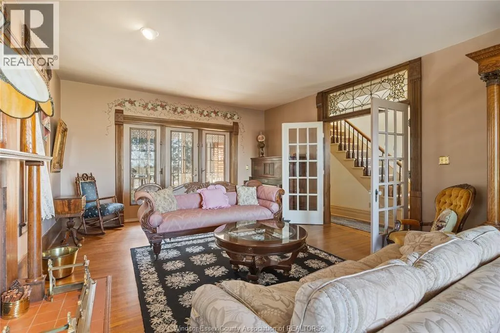 Set on a beautifully landscaped 0.76-acre treed lot, this spacious 2-storey century home o??ers over 4,000 sq ft of versatile living space. Featuring 5 bedrooms and 4.5 bathrooms, the layout is ideal for families or multigenerational living. The main floor includes a private primary suite with ensuite, generous living and dining areas with cozy fireplaces, a bright sunroom, den, and convenient laundry. Upstairs o??ers four additional bedrooms and 2 bathrooms. Step outside to one of three covered front and rear porches overlooking peaceful country views. The impressive 30x40 detached shop includes hydro, concrete floors, and mezzanine storage. Perfect for hobbyists or entrepreneurs. A rare opportunity to enjoy space, character, and rural charm just minutes from town. (id:27476)