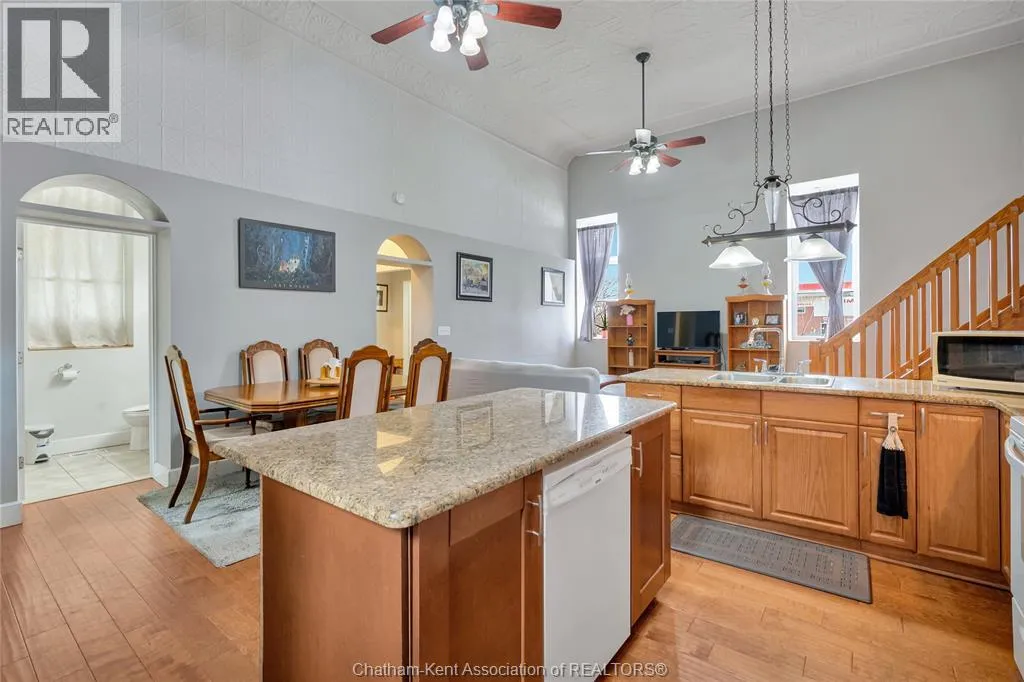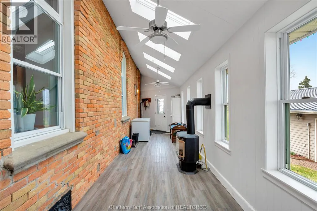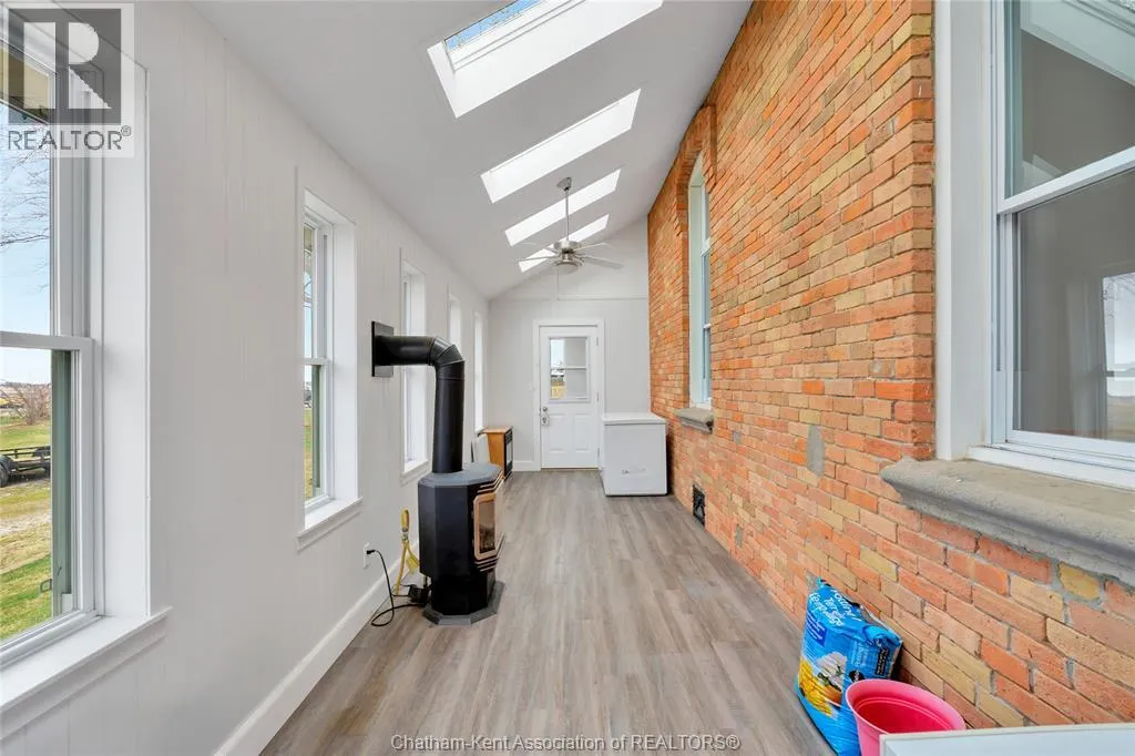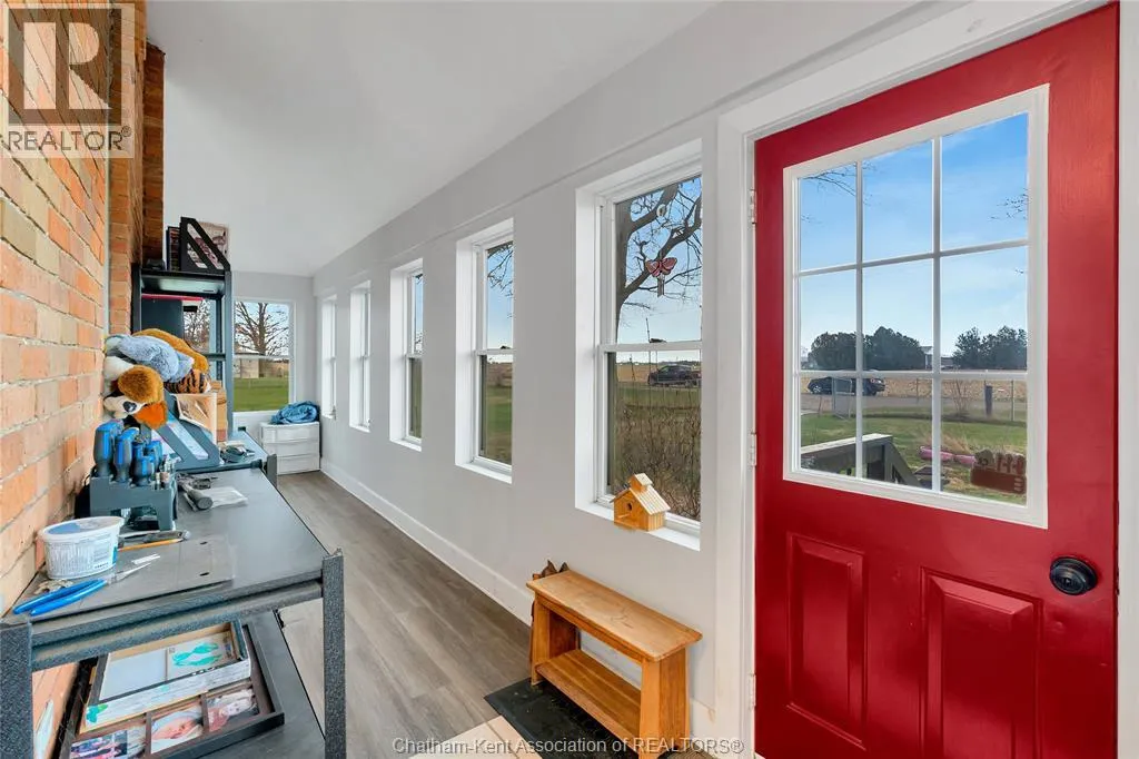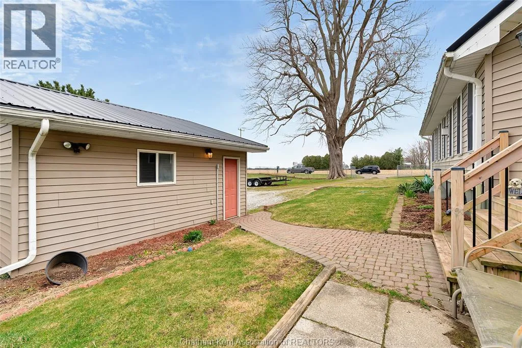 Two bedrooms, 2.58 acres, and a 2017 renovation that covered everything that matters. New septic, well, furnace, and central air were installed as part of a comprehensive renovation that also included full interior updates. The major expenses are behind this property. What remains is a home that's settled, proven, and move-in ready. Set just outside Ridgetown, the main living area is open and thoughtfully designed, with soaring 14-foot ceilings and large windows that bring in natural light while framing views of the surrounding property. The kitchen connects seamlessly to the dining and living areas. This home is practical, easy to move through, and finished in a way that suits a wide range of personal styles. The upper-level primary suite sits apart from the main living areas, offering separation and privacy. Main floor laundry and thoughtful storage mean the layout works with you, day in and day out. Outside, the fully fenced 2.58 acres is manageable without being limiting. Mature trees, landscaped grounds, and established fruit trees create a private setting with room for outdoor living, hobby use, or future additions. A detached two-car garage handles vehicles, equipment, or a workshop with room to spare. Quick access to Highway 401 keeps amenities within easy reach...without giving up the space and quiet that make this property worth having. 2 bed · 2 bath · 2.58 acres · Detached 2-car garage · Full 2017 renovation · Quick access to Highway 401 & Ridgetown for all your daily needs. (id:27476)