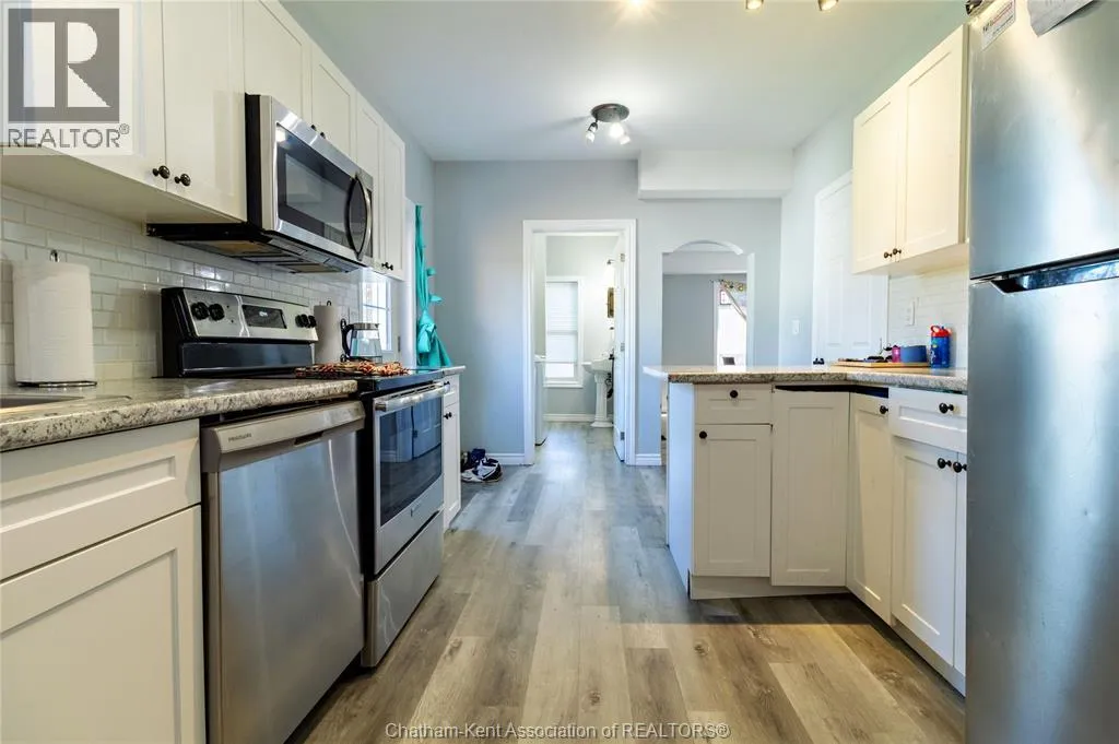 NORTH ON QUEEN, WEST ON RICHMOND,HOUSE ON NORTH SIDE Check out this centrally located 2 story, well maintained home with many updates just walking distance to downtown Chatham, restaurants, shopping, banks, library and more. This property features 3 (or possibly 4) spacious Bedrooms, 1.5 Baths, high ceilings, updated flooring, large Kitchen, Dining Area, two Living Rooms, a gas Fireplace, main floor Laundry, central A/C, and a 2.5 car detached Garage (garage needs a new roof). This brick 'century home' offers tonnes of character and modern day updates at an affordable price! Please allow 24 hours notice for all showings. (id:27476)