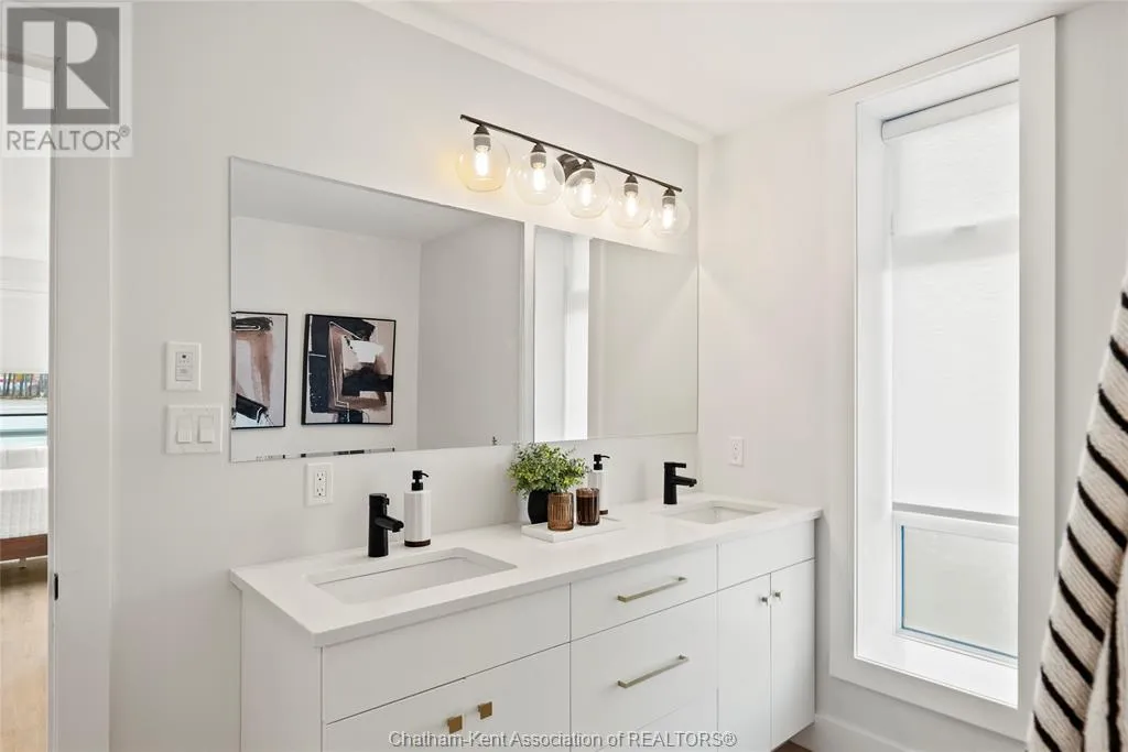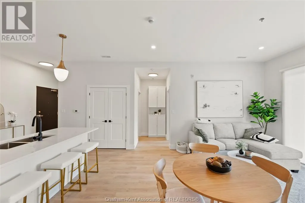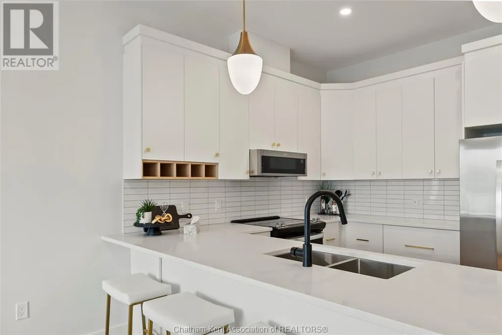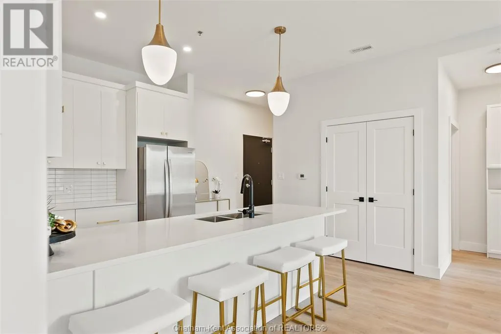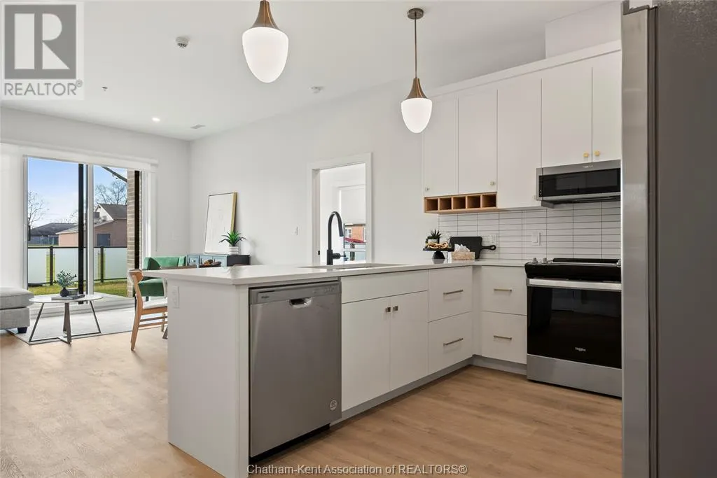 Welcome to the Avalon on Grand, where luxury meets convenience. Ark Design Build's newest offering in Chatham, a stunning two-bedroom corner apartment. Boasting an impressive 10 ft ceiling, this unit offers an airy and open ambiance that is not found in other buildings. The modern kitchen is a chef's dream, featuring quartz countertops and quality appliances that make cooking a pleasure. Step into the large bedrooms and discover walk-in closets, large windows and en-suite bathrooms, one complete with double vanity. The private balcony, with glass panel railing, provides an exclusive outdoor retreat perfect for morning coffees or quiet evenings in the summer. Complete with in-unit laundry with front-load washer and dryer. Best of all, all utilities are included in the price, ensuring a hassle-free living experience. The Avalon on Grand redefines apartment living, offering unparalleled luxury and convenience. This ""HIGHLAND"" model is barrier-free. (id:27476)