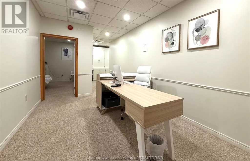 FANTASTIC LOCATION â JUST STEPS FROM THE RIVER & A 5-MINUTE WALK TO DOWNTOWN! This unique commercial space is nestled in a charming building that has seen a stylish and thoughtful renovation in recent years. Even more excitingâboth the roof and exterior are getting a fresh update this summer, further enhancing the buildingâs curb appeal and functionality. The rear unit offers 850 square feet of versatile space, ideal for professional services, health and wellness practices, or creative studios**. It features **two private offices, a welcoming reception area, a lunchroom, and a washroom, everything you need to hit the ground running. With shared parking right at the door and a prime location within walking distance to the downtown core, this space is both convenient and inviting for staff and clients alike. Rent is $1,300/month plus hydro. Available Sept 1/2025 (Current tenantâs furniture is available for purchase.) Opportunities like this donât come along oftenâcontact me today for full details and to book a showing. Be part of this revitalized and growing commercial hub! (id:27476)