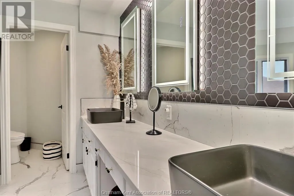 Welcome to your dream home! This custom built executive home is situated on the picturesque Thames River. You'll experience a peaceful escape while staying close to all essential amenities. Perfect for entertaining or pure self indulgence , this home delivers a backyard oasis with meticulously manicured landscaping and stunning views. Enjoy your in ground pool, expansive patio area and additional deck with both, guests or relaxing with family. This home boasts a master bedroom with ensuite and three additional bedrooms and bathrooms plus bonus room. Main floor offers enormous gourmet kitchen with eat in area. New granite countertops and granite sink situated on the expansive island, alongside new high end kitchen appliances. Two sitting areas to enjoy amazing views with family and friends, and a main floor office that allows you to work from home. Fully renovated basement has two separate areas for relaxation or entertaining equipped with hot tub, sauna and ample storage. Fully finished from top to bottom giving separate areas for multiple family gatherings. Spacious 2.5 car garage finished with gleaming epoxy floors, perfect for your water recreational vehicles and additional storage. A rare opportunity to own a turn key home that offers luxury, privacy and function. Schedule your private viewing today! (id:27476)