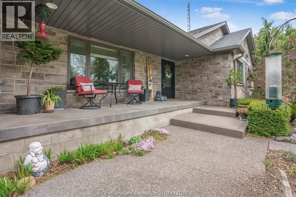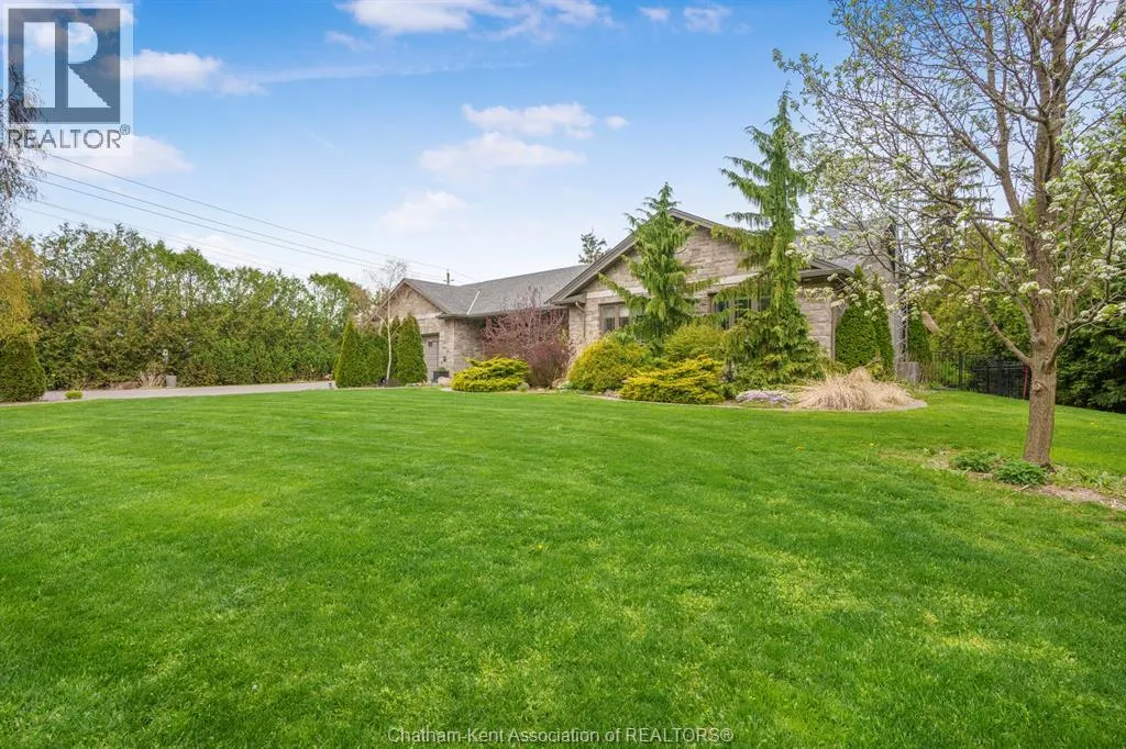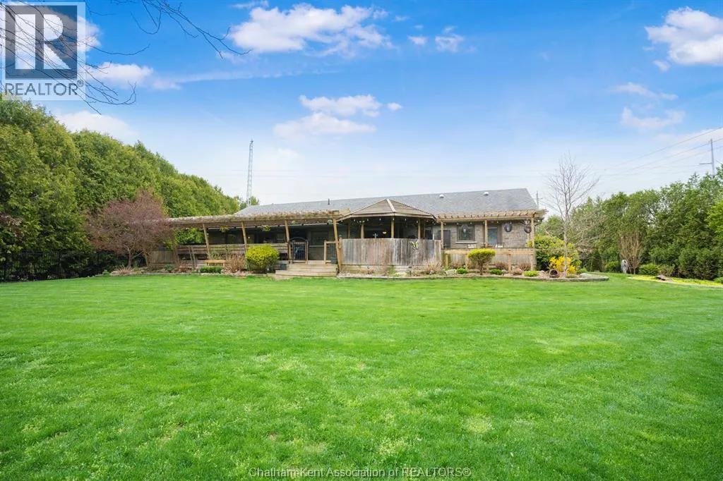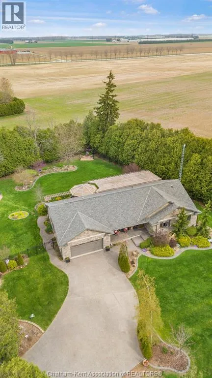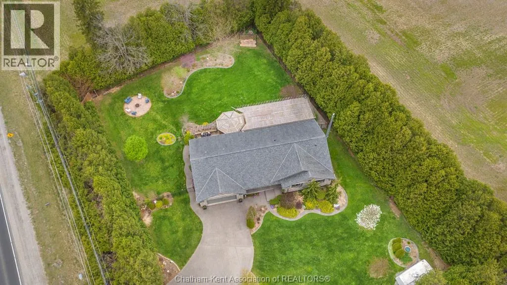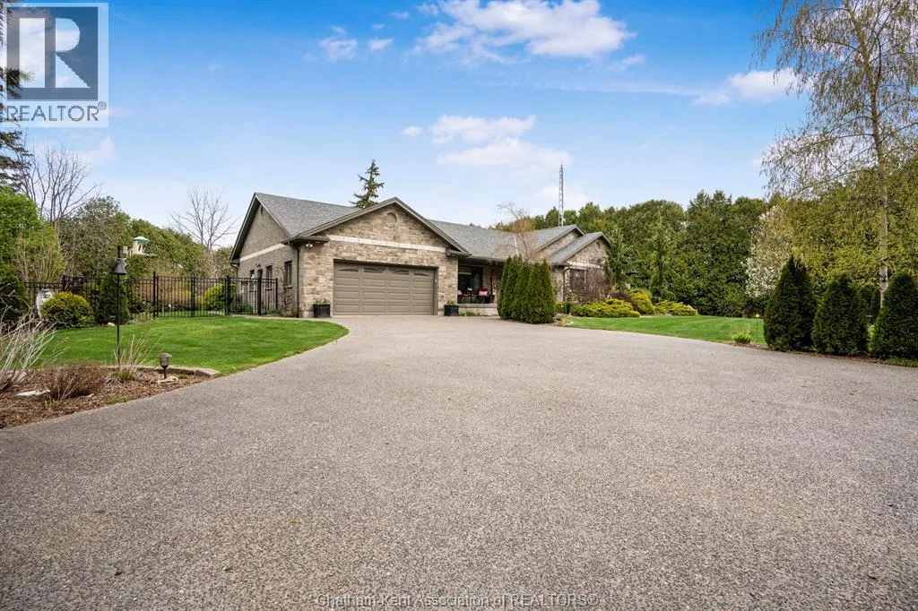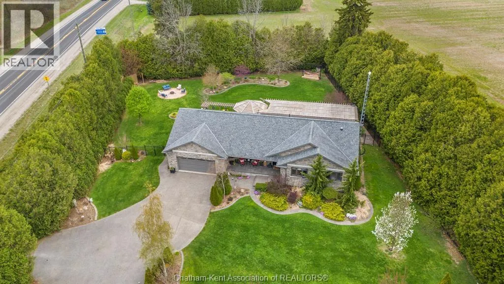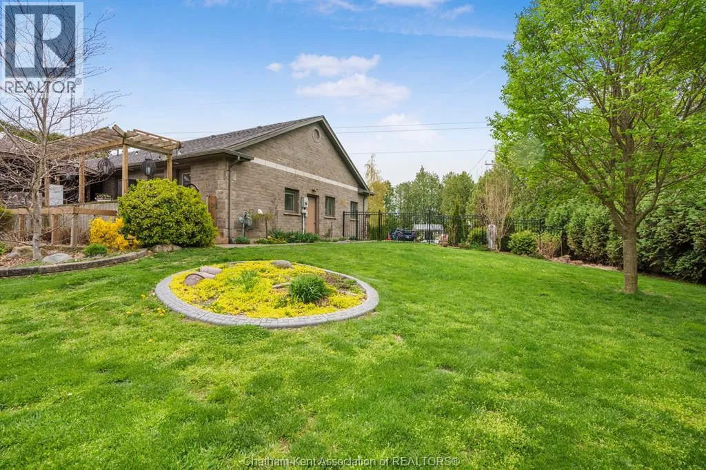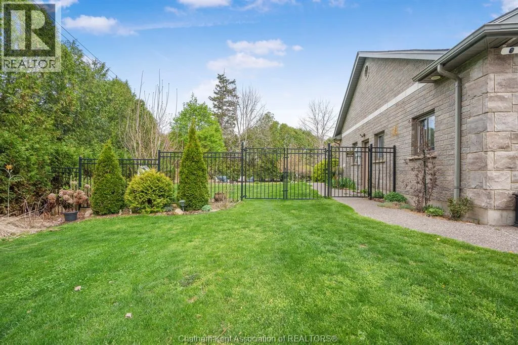 Welcome to your dream country escape! This all-brick rancher sits on just under 1 acre of private, cedar-wrapped land, offering 3 spacious bedrooms and 4 updated bathrooms. One of the main floor bathrooms features a luxurious freestanding soaker tub and heated floors for ultimate comfort. A double-car attached garage adds convenience, while the fully finished massive basement offers endless storage and living space. Relax or entertain on the expansive covered patio, complete with an outdoor kitchen style and gas BBQ setup, perfect for summer evenings. The fully fenced yard and scenic walking path around the home create a peaceful retreat. Surrounded by towering cedars for seclusion, this property combines privacy, modern updates, and country charm all in one beautiful package. Donât miss this rare opportunity to enjoy the best of rural living with all the comforts of home! This home is located on the Southside of Chatham only seconds from HWY 401. (id:27476)
