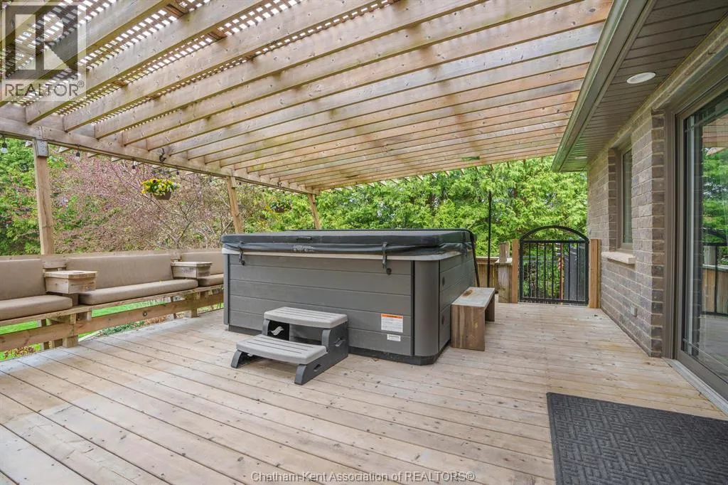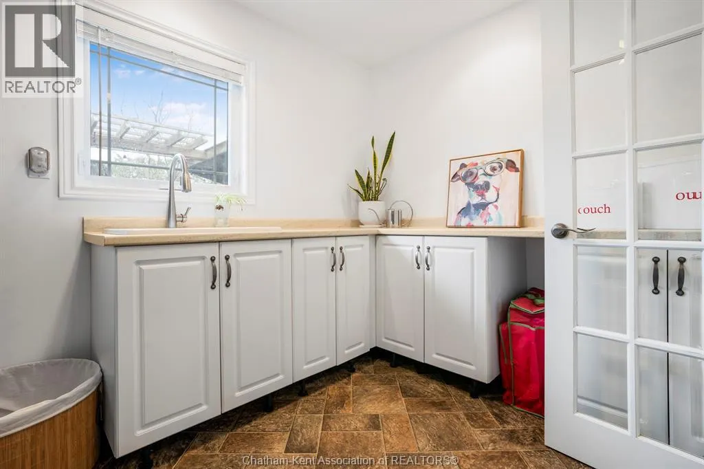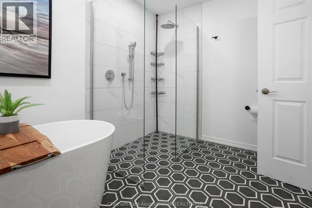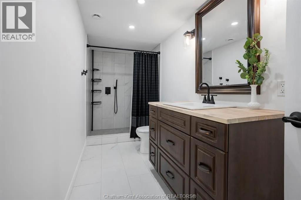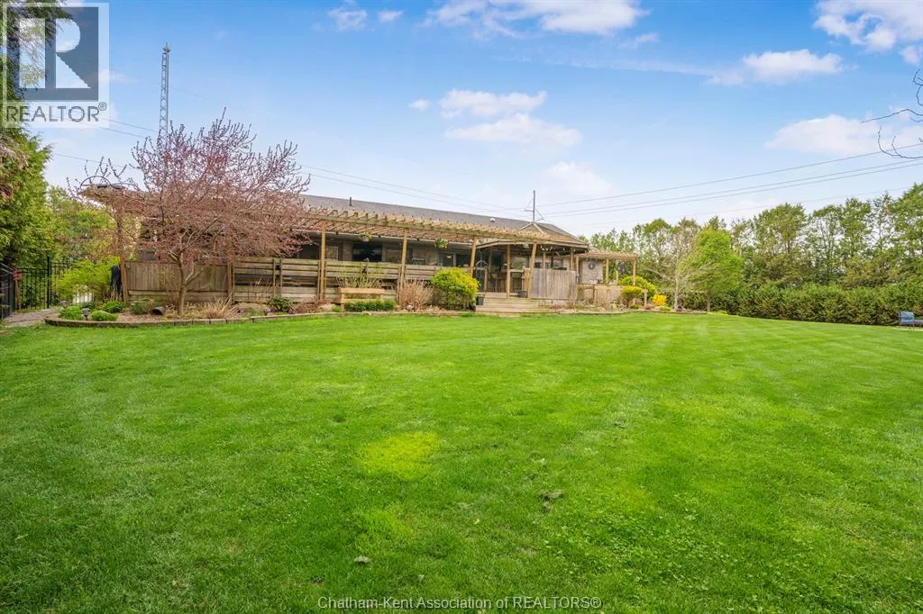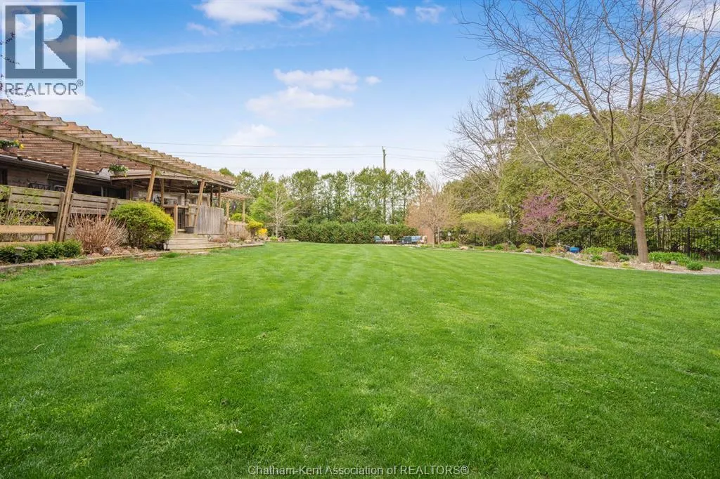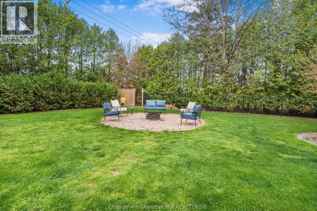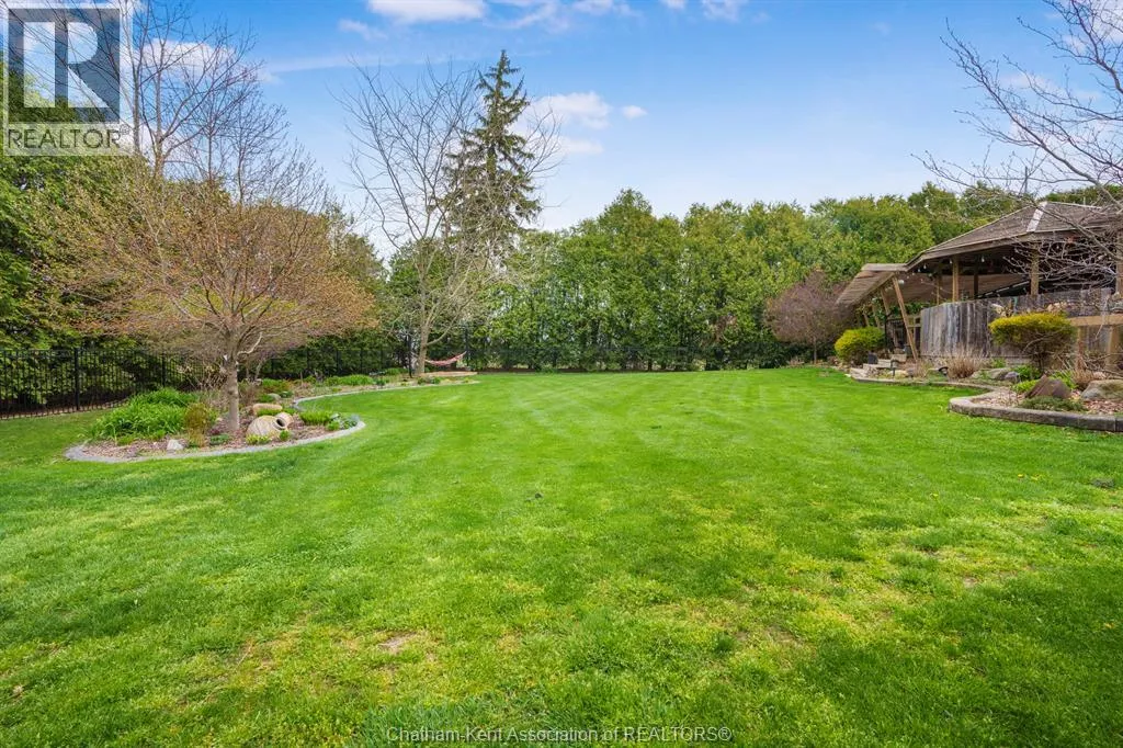 Welcome to your dream country escape! This all-brick rancher sits on just under 1 acre of private, cedar-wrapped land, offering 3 spacious bedrooms and 4 updated bathrooms. One of the main floor bathrooms features a luxurious freestanding soaker tub and heated floors for ultimate comfort. A double-car attached garage adds convenience, while the fully finished massive basement offers endless storage and living space. Relax or entertain on the expansive covered patio, complete with an outdoor kitchen style and gas BBQ setup, perfect for summer evenings. The fully fenced yard and scenic walking path around the home create a peaceful retreat. Surrounded by towering cedars for seclusion, this property combines privacy, modern updates, and country charm all in one beautiful package. Donât miss this rare opportunity to enjoy the best of rural living with all the comforts of home! This home is located on the Southside of Chatham only seconds from HWY 401. (id:27476)