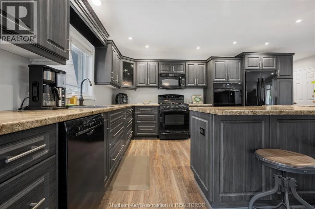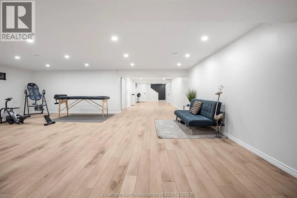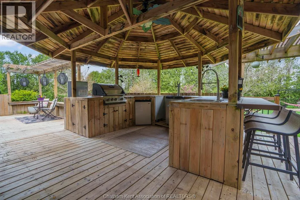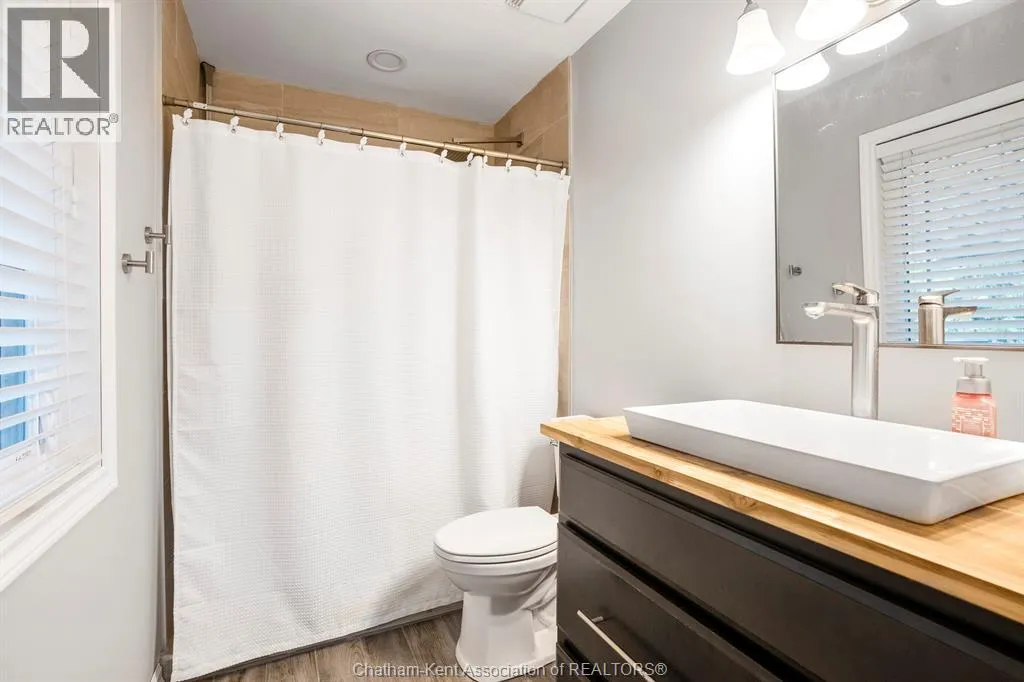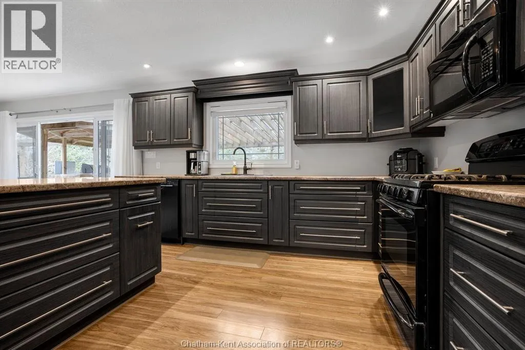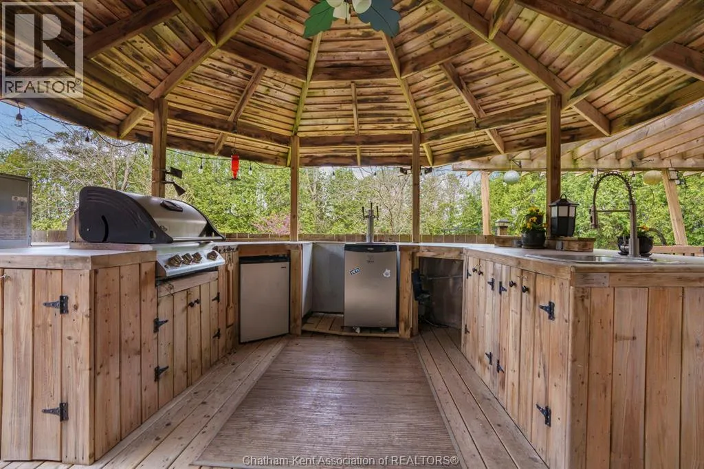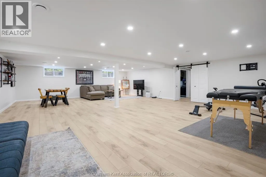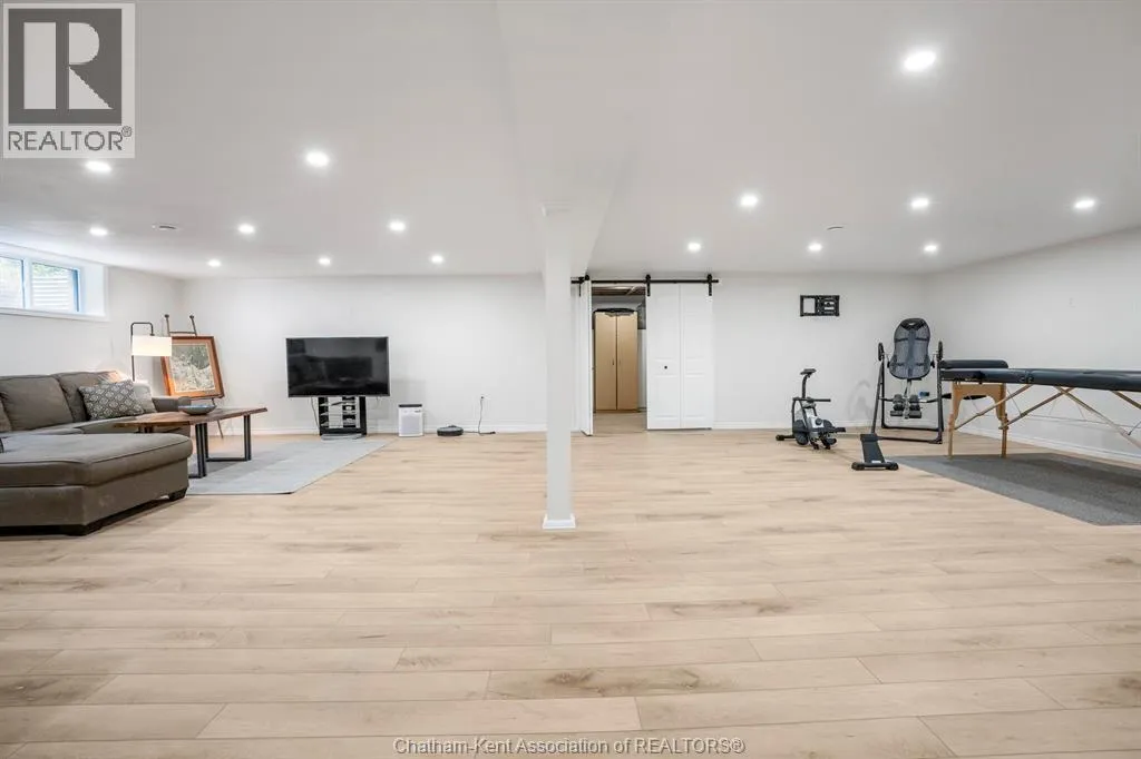 Welcome to your dream country escape! This all-brick rancher sits on just under 1 acre of private, cedar-wrapped land, offering 3 spacious bedrooms and 4 updated bathrooms. One of the main floor bathrooms features a luxurious freestanding soaker tub and heated floors for ultimate comfort. A double-car attached garage adds convenience, while the fully finished massive basement offers endless storage and living space. Relax or entertain on the expansive covered patio, complete with an outdoor kitchen style and gas BBQ setup, perfect for summer evenings. The fully fenced yard and scenic walking path around the home create a peaceful retreat. Surrounded by towering cedars for seclusion, this property combines privacy, modern updates, and country charm all in one beautiful package. Donât miss this rare opportunity to enjoy the best of rural living with all the comforts of home! This home is located on the Southside of Chatham only seconds from HWY 401. (id:27476)