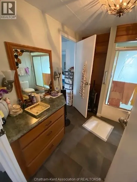St. Clair Estates lLots of room here in this nice two bedroom home with year round addition on a large serenely landscaped lot. This home is in good shape with several recent improvements: central air (2022), eaves replaced (2022), water lines under washer and dryer, kitchen flooring, etc. There are two gas fireplaces, cheater ensuite, handy laundry area off kitchen and lots of storeage area. The roof has been checked by Rural Urban Roofing with estimate of a few years life yet. The lot this home sits on is one of the bigger lots and has a very appealing presence of trees. Guest parking is conveniently located next door. Call for your appointment to view before it's GONE; Note; home was relevelled in April 2022 Park approval required. Monthly land rental fee will increase $50.00 upon sale. to $505.71. (id:27476)
