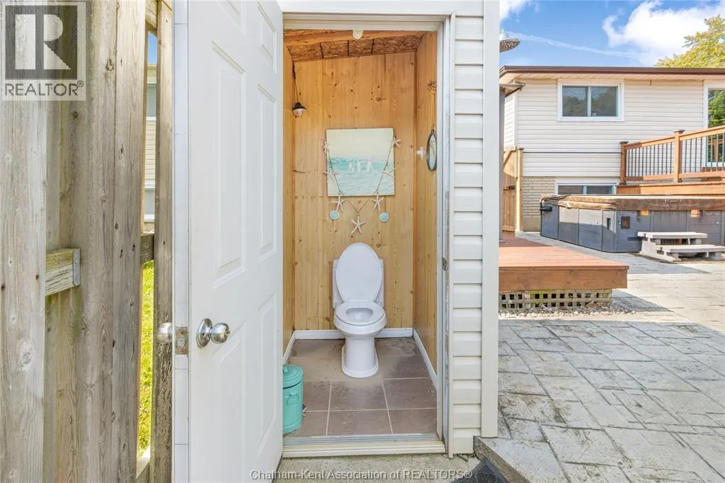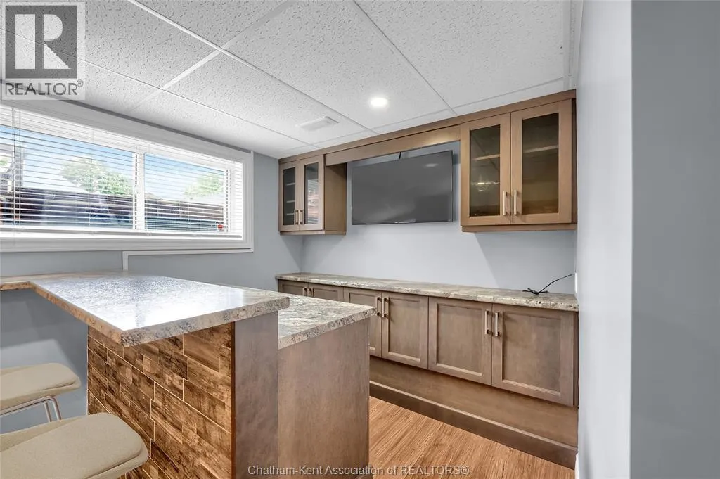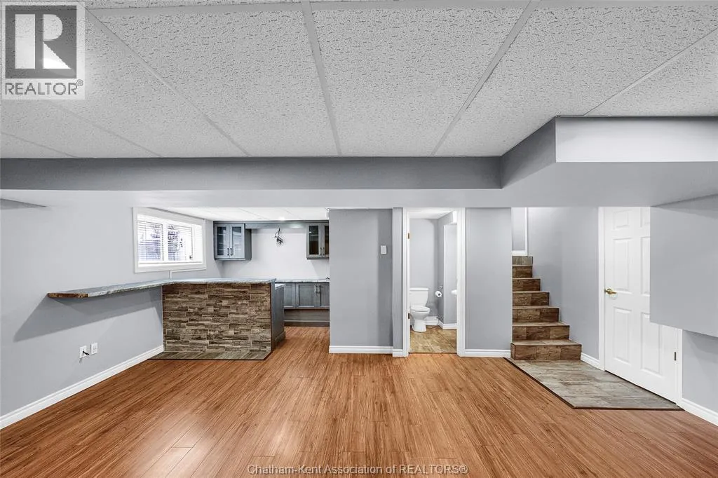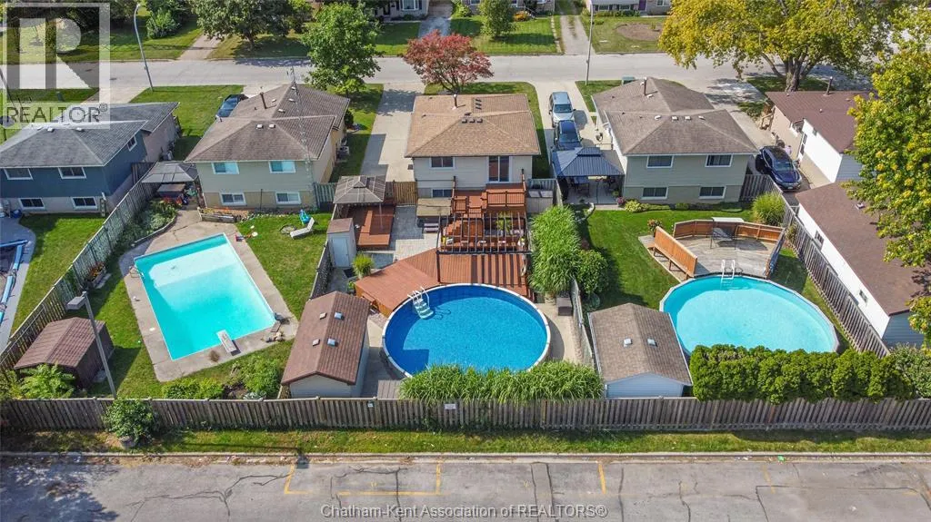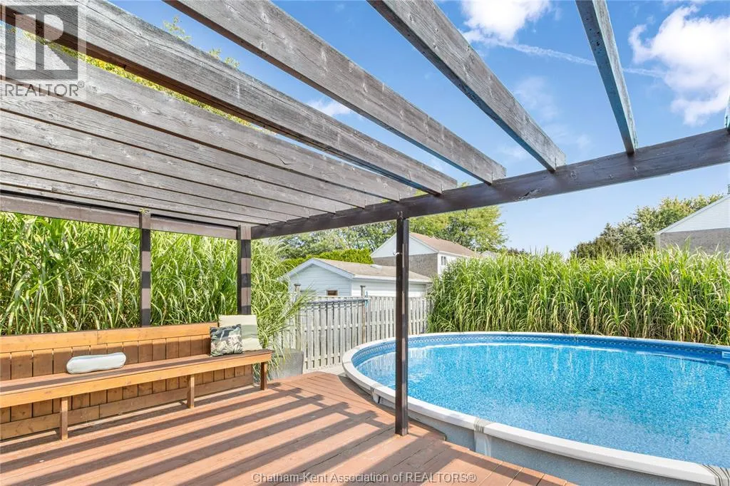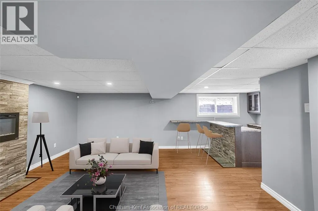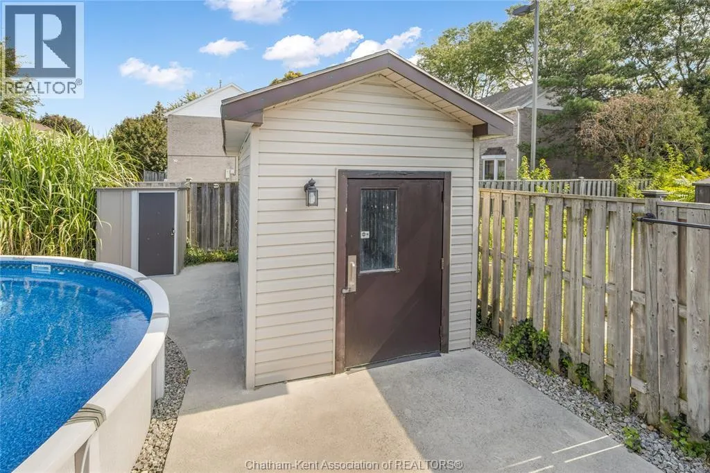 Entertain in style with this beautifully updated four-level back split located on the South Side of Chatham just a short work to Mud Creek! This home showcases thoughtful upgrades throughout, offering a lifestyle of comfort, entertainment, and relaxation. Step inside to an open-concept main floor featuring a stunning custom kitchen with a large island, granite countertops, stylish backsplash, and stainless steel appliancesâall flowing into the bright and inviting living room. Pot lights and built-in ceiling speakers enhance the space, making it perfect for everyday living or entertaining. Upstairs, you'll find 3 spacious bedrooms, a 4pc bath, and convenient patio door access from the primary suite to a sun deck overlooking the backyard. The lower level offers space for entertaining or movie nights with a sleek fireplace, custom bar area, built-in cabinetry, and an additional 3pc bathroom. The basement includes a functional workshop, dedicated storage room, and even more storage space throughoutâideal for growing families or hobbyists. Step outside to your own private retreat! The backyard is beautifully landscaped and features a two-tier deck off the primary bedroom, a side deck for dining, and a massive lounging deck with pergola. Enjoy the ultimate in outdoor living with stamped concrete walkways, a water closet, outdoor shower, and a large storage shed. Donât miss your chance to own this turnkey property loaded with style, functionality, and the perfect setup for summer entertaining! (id:27476)