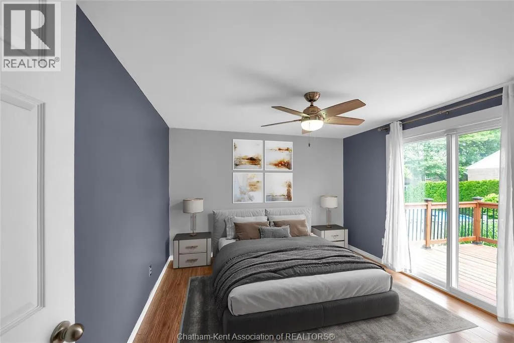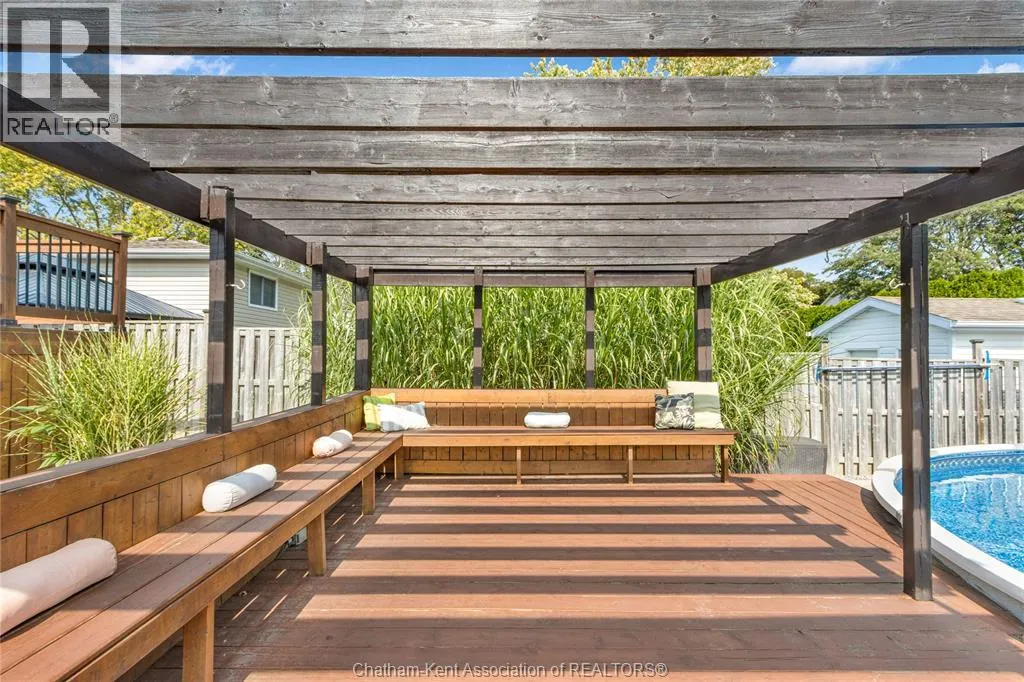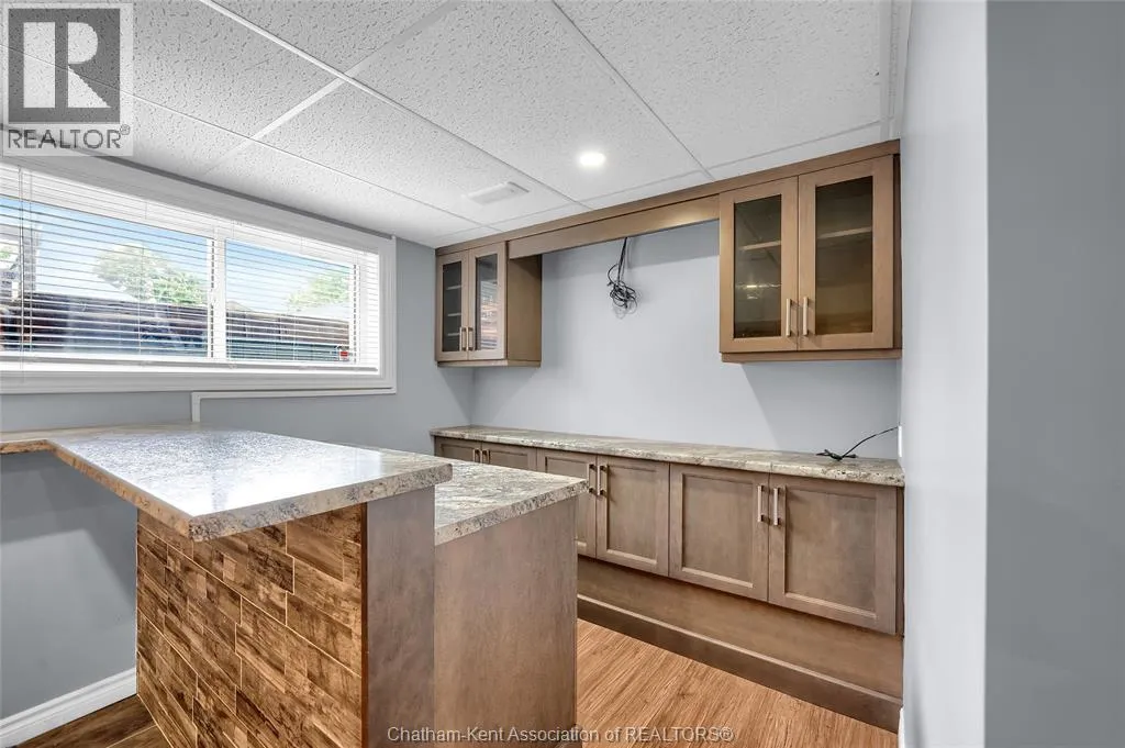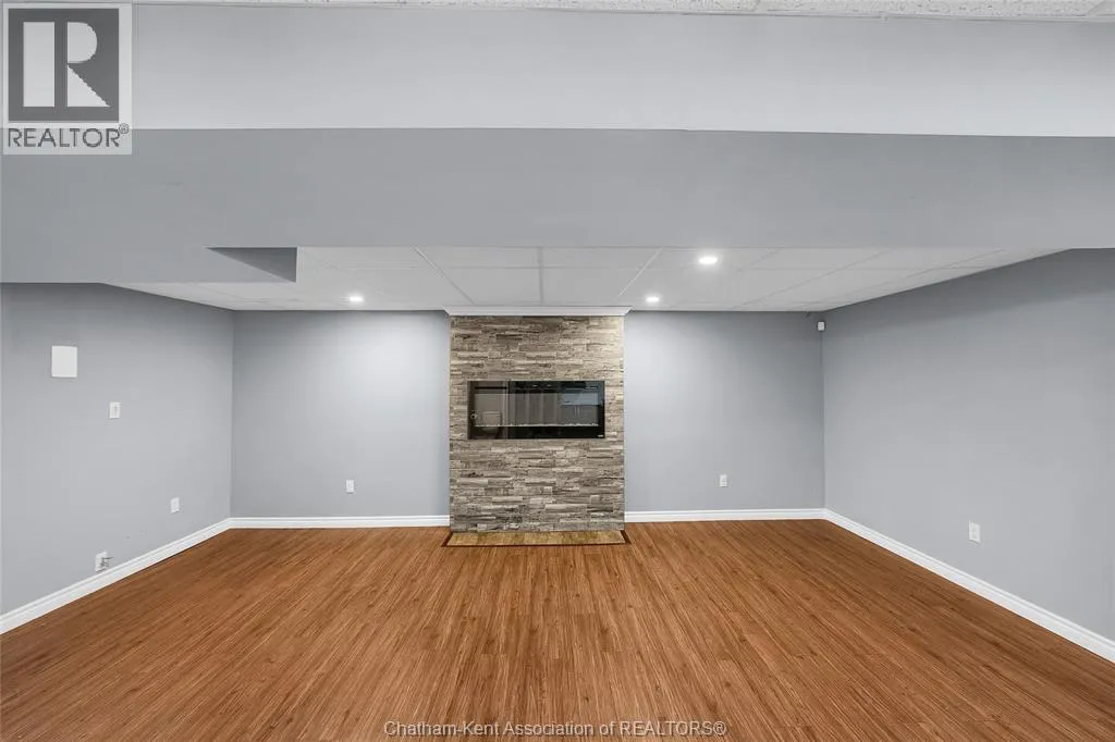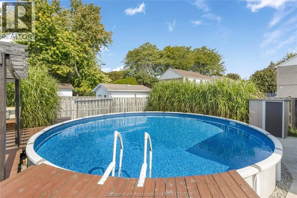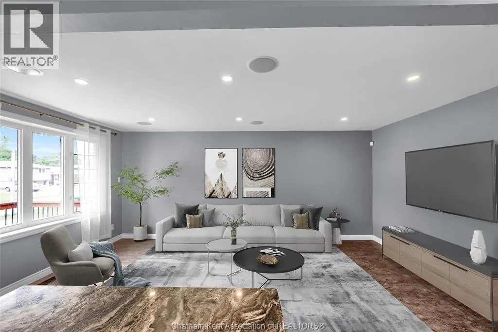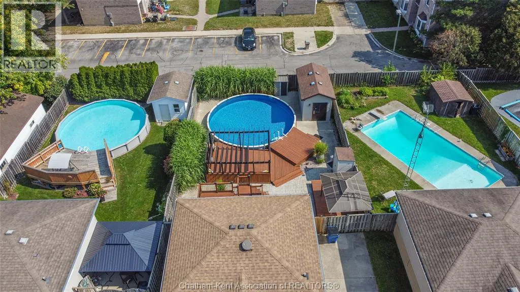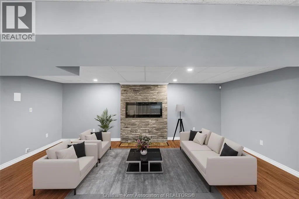 Entertain in style with this beautifully updated four-level back split located on the South Side of Chatham just a short work to Mud Creek! This home showcases thoughtful upgrades throughout, offering a lifestyle of comfort, entertainment, and relaxation. Step inside to an open-concept main floor featuring a stunning custom kitchen with a large island, granite countertops, stylish backsplash, and stainless steel appliancesâall flowing into the bright and inviting living room. Pot lights and built-in ceiling speakers enhance the space, making it perfect for everyday living or entertaining. Upstairs, you'll find 3 spacious bedrooms, a 4pc bath, and convenient patio door access from the primary suite to a sun deck overlooking the backyard. The lower level offers space for entertaining or movie nights with a sleek fireplace, custom bar area, built-in cabinetry, and an additional 3pc bathroom. The basement includes a functional workshop, dedicated storage room, and even more storage space throughoutâideal for growing families or hobbyists. Step outside to your own private retreat! The backyard is beautifully landscaped and features a two-tier deck off the primary bedroom, a side deck for dining, and a massive lounging deck with pergola. Enjoy the ultimate in outdoor living with stamped concrete walkways, a water closet, outdoor shower, and a large storage shed. Donât miss your chance to own this turnkey property loaded with style, functionality, and the perfect setup for summer entertaining! (id:27476)
