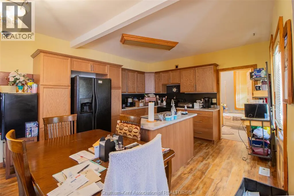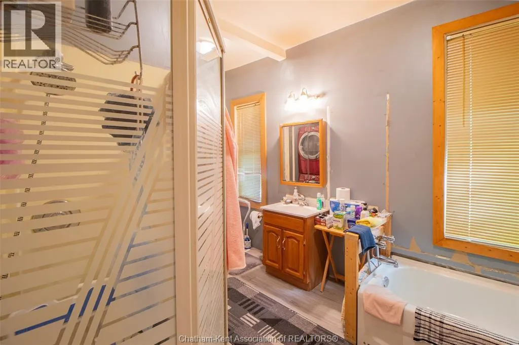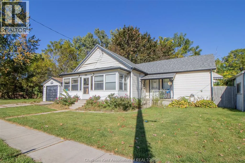 Welcome to 395 Park Street a one-bedroom bungalow located in a mature neighbourhood in Chatham. The home offers an open-concept layout with a functional flow from the living area to the kitchen and dining space. The kitchen was updated approximately three years ago and features an island and ample workspace. The large bathroom includes a soaker tub and a conveniently tucked-away laundry area. Enjoy the three-season front porch, spacious back deck, and generous yard. The roof was replaced approximately seven years ago, and the furnace and A/C are about nine years old. The hot water tank is a rental. Windows have not been updated. Property is being sold in as is condition. The property also includes a detached garage, providing additional storage and workspace with flexibility for parking, projects, or extra organization. Close to schools, parks, and local amenities. 72 hours irrevocable on all offers. (id:27476)
