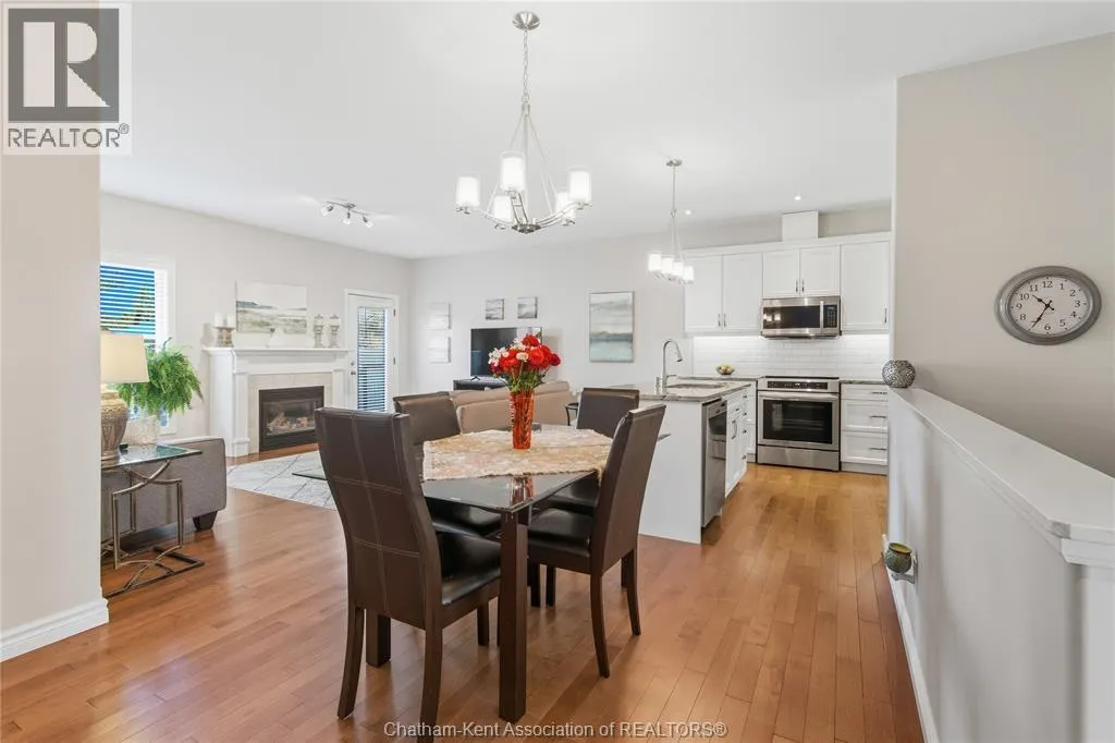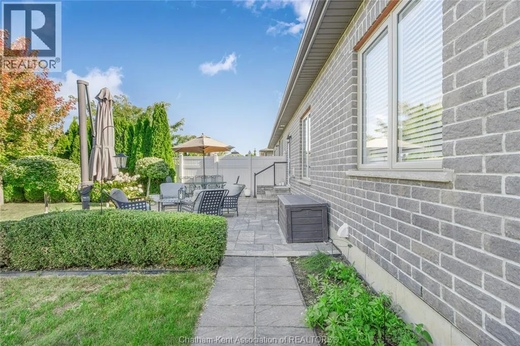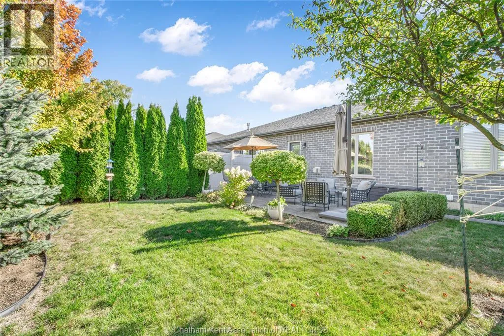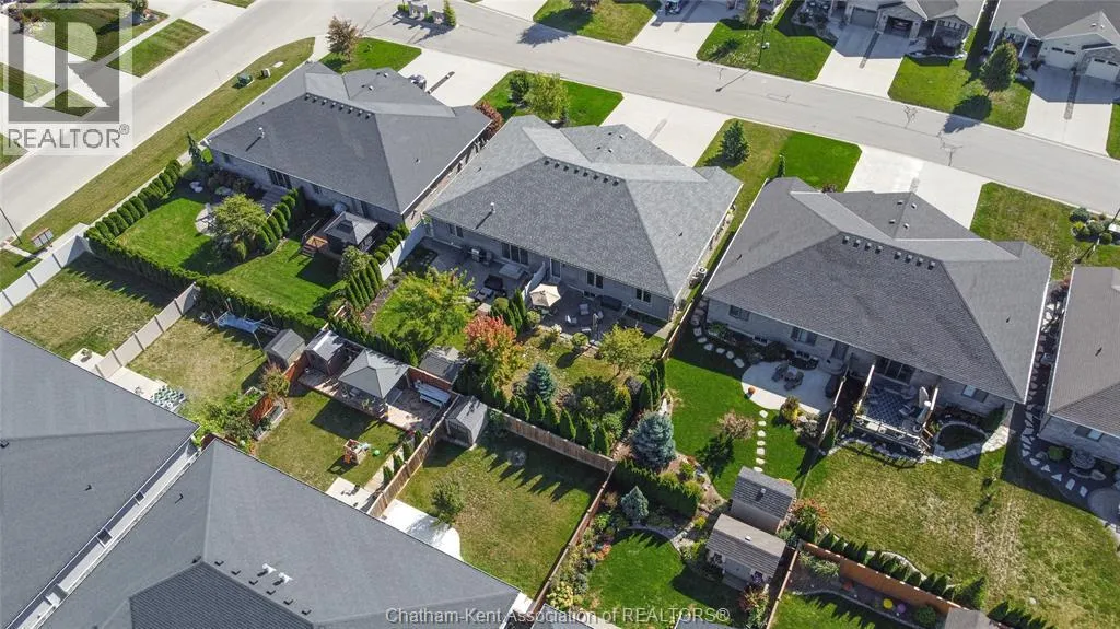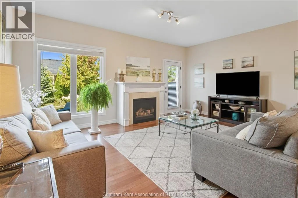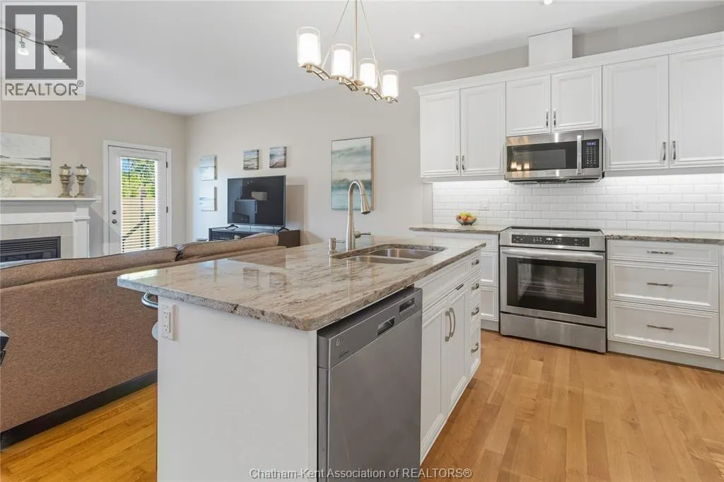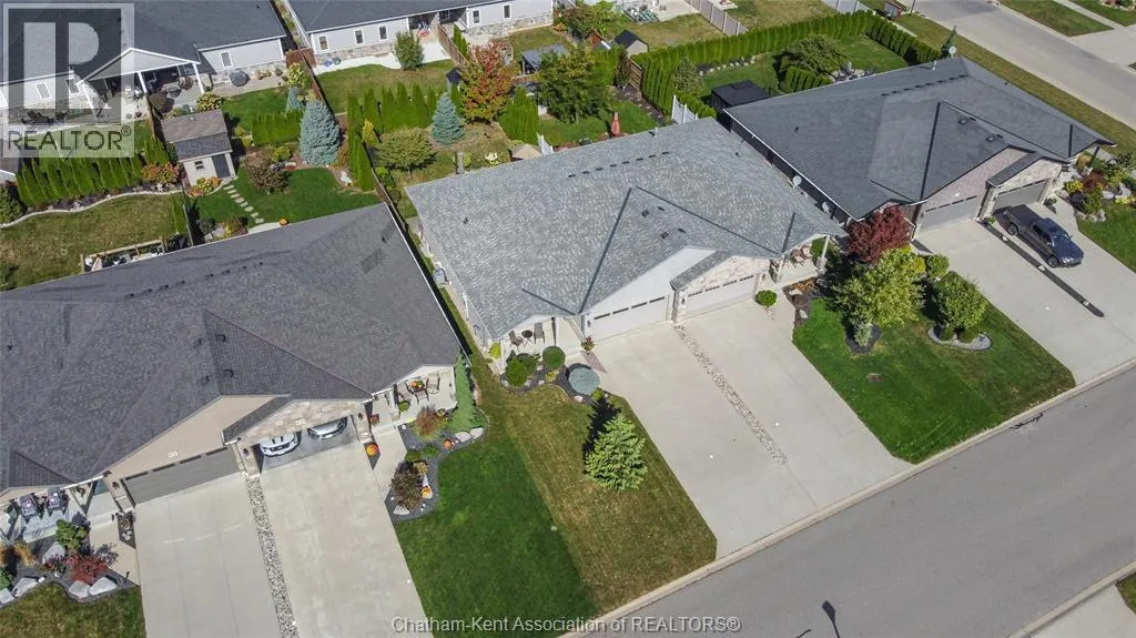 If youâre looking for a meticulous semi-detached home on Chathamâs sought-after north side, this one is a must-see! Nestled on a mature yet newer street with beautifully landscaped grounds, the curb appeal sets the tone for what awaits inside. Step through the front door into a bright, open-concept layout featuring luxurious finishes throughout. The inviting living area showcases a gas fireplace that connects to the stylish kitchen boasting an island with granite countertops, tile backsplash, under-cabinet lighting, and an overall crisp, modern feel that highlights true pride of ownership. The front bedroom provides an ideal space for a home office or den and is currently being used as a formal dining room. The primary suite offers his-and-hers closets and a stunning 3-piece ensuite with a tiled walk-in shower and built in bench. The fully finished lower level expands your living space with a large rec room, spacious bedroom, third full bathroom, and a dedicated storage area for all your extras. Outside, enjoy a double concrete driveway, attached garage, and a private backyard retreat featuring a lovely patio that is perfect for relaxing or entertaining. This home is truly move-in ready and stands out for its care, quality, and location. Donât wait â schedule your private viewing today! (id:27476)