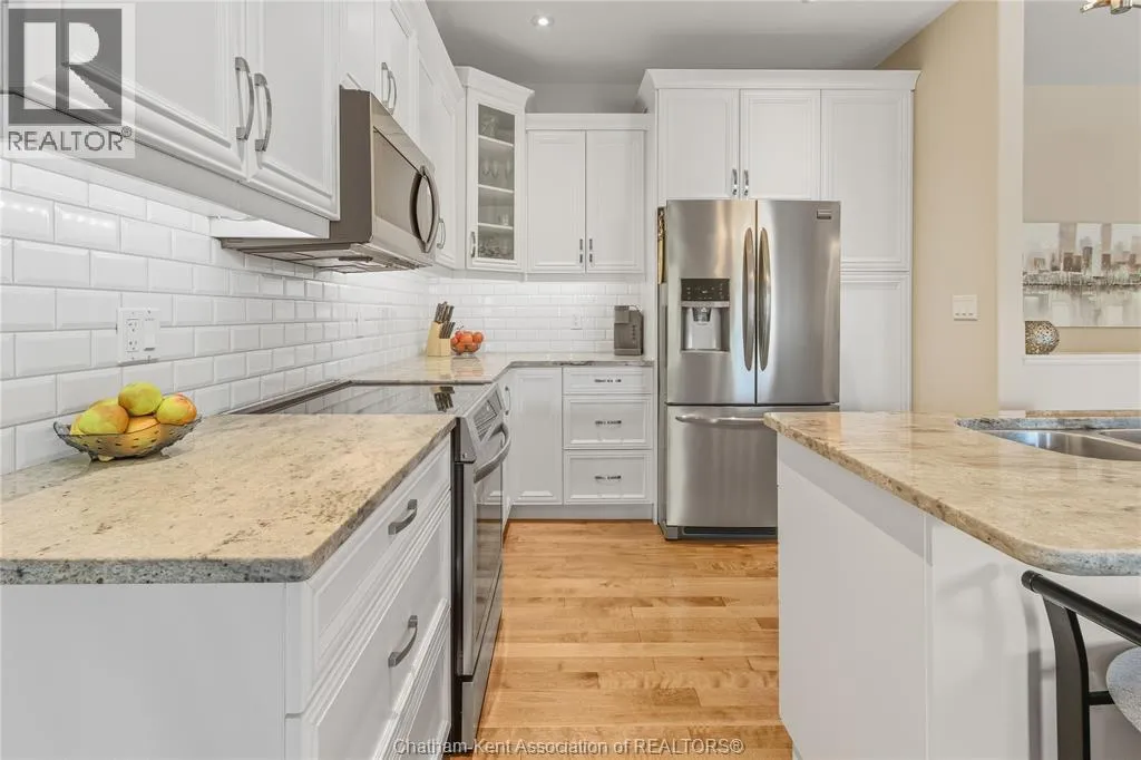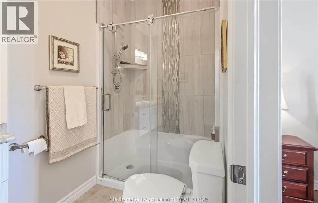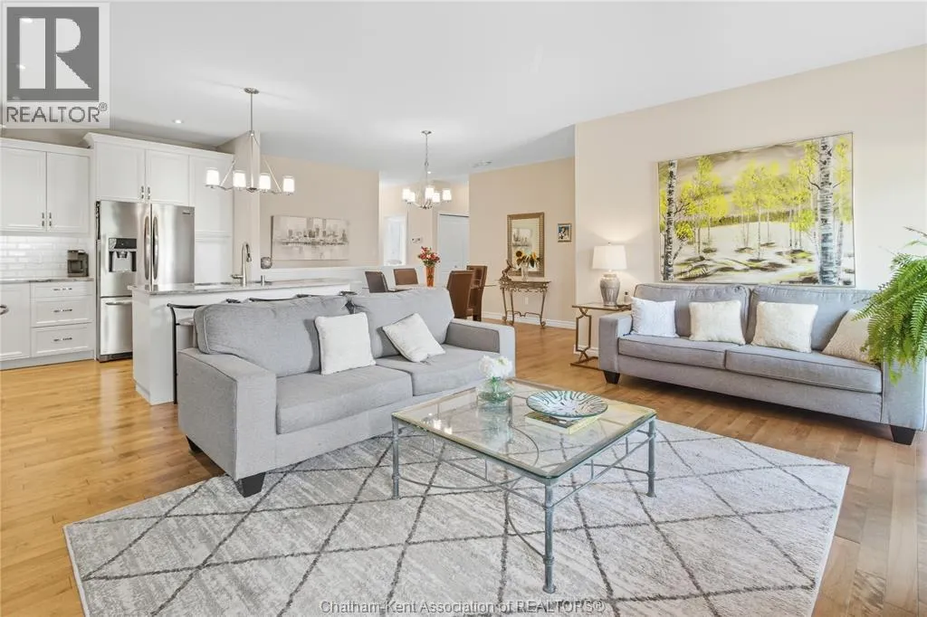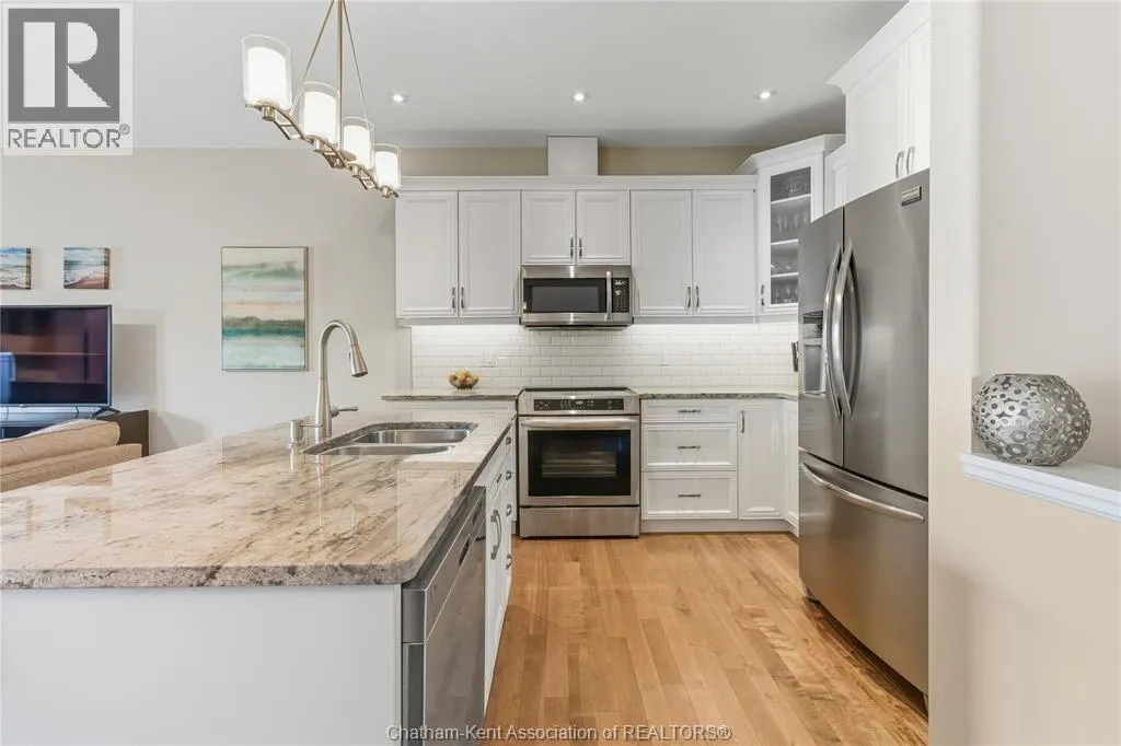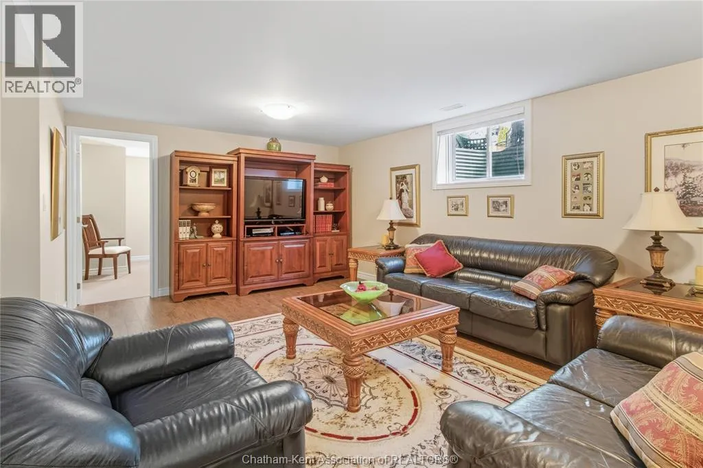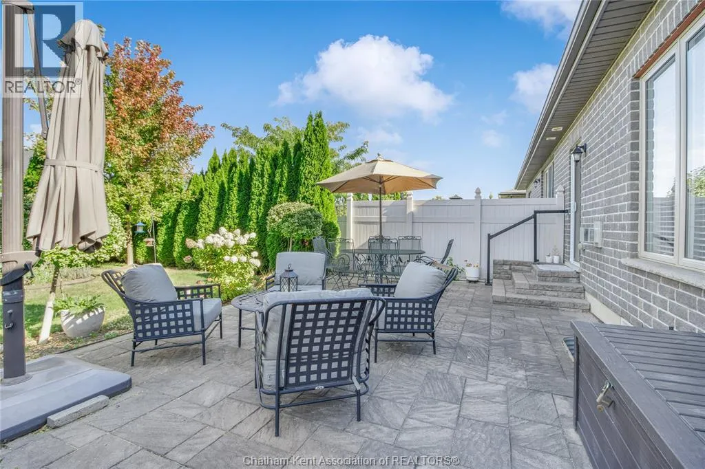 If youâre looking for a meticulous semi-detached home on Chathamâs sought-after north side, this one is a must-see! Nestled on a mature yet newer street with beautifully landscaped grounds, the curb appeal sets the tone for what awaits inside. Step through the front door into a bright, open-concept layout featuring luxurious finishes throughout. The inviting living area showcases a gas fireplace that connects to the stylish kitchen boasting an island with granite countertops, tile backsplash, under-cabinet lighting, and an overall crisp, modern feel that highlights true pride of ownership. The front bedroom provides an ideal space for a home office or den and is currently being used as a formal dining room. The primary suite offers his-and-hers closets and a stunning 3-piece ensuite with a tiled walk-in shower and built in bench. The fully finished lower level expands your living space with a large rec room, spacious bedroom, third full bathroom, and a dedicated storage area for all your extras. Outside, enjoy a double concrete driveway, attached garage, and a private backyard retreat featuring a lovely patio that is perfect for relaxing or entertaining. This home is truly move-in ready and stands out for its care, quality, and location. Donât wait â schedule your private viewing today! (id:27476)