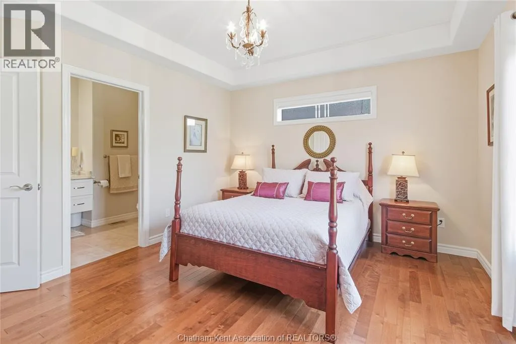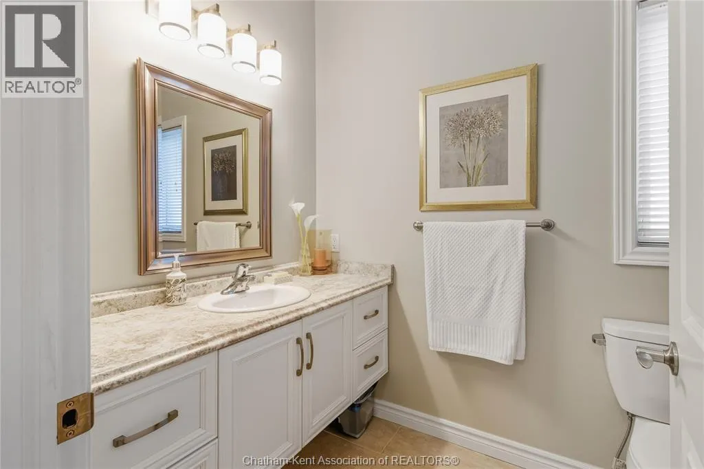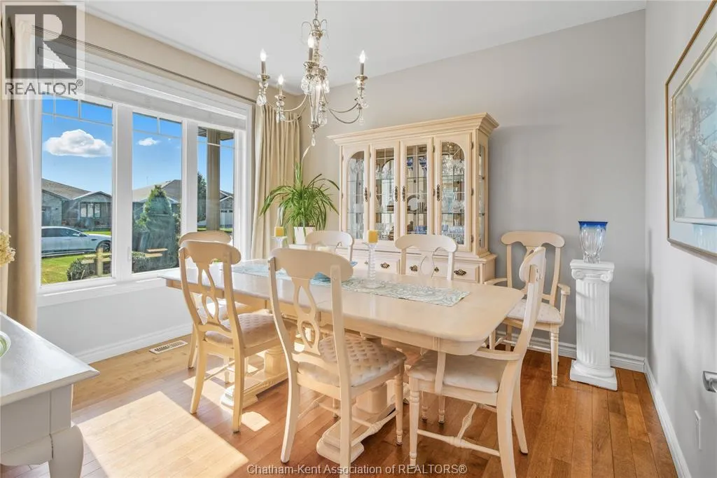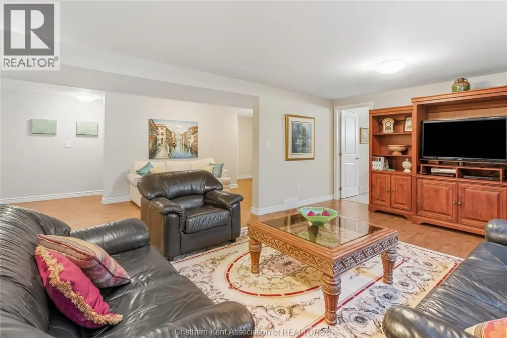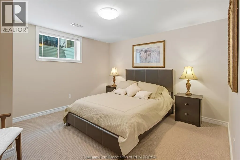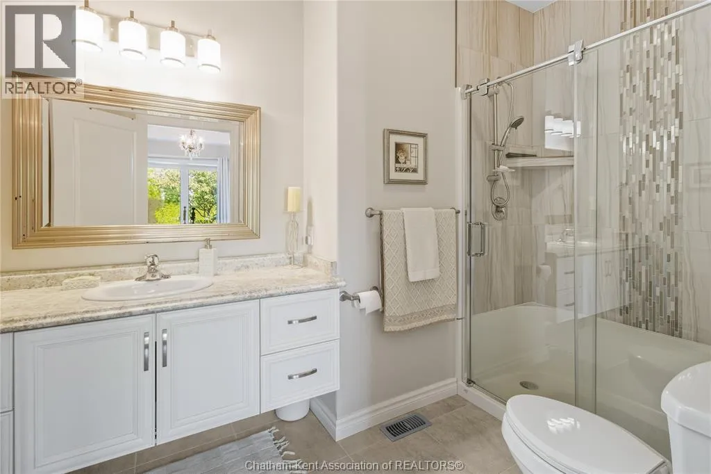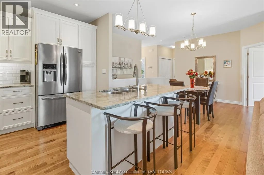 If youâre looking for a meticulous semi-detached home on Chathamâs sought-after north side, this one is a must-see! Nestled on a mature yet newer street with beautifully landscaped grounds, the curb appeal sets the tone for what awaits inside. Step through the front door into a bright, open-concept layout featuring luxurious finishes throughout. The inviting living area showcases a gas fireplace that connects to the stylish kitchen boasting an island with granite countertops, tile backsplash, under-cabinet lighting, and an overall crisp, modern feel that highlights true pride of ownership. The front bedroom provides an ideal space for a home office or den and is currently being used as a formal dining room. The primary suite offers his-and-hers closets and a stunning 3-piece ensuite with a tiled walk-in shower and built in bench. The fully finished lower level expands your living space with a large rec room, spacious bedroom, third full bathroom, and a dedicated storage area for all your extras. Outside, enjoy a double concrete driveway, attached garage, and a private backyard retreat featuring a lovely patio that is perfect for relaxing or entertaining. This home is truly move-in ready and stands out for its care, quality, and location. Donât wait â schedule your private viewing today! (id:27476)