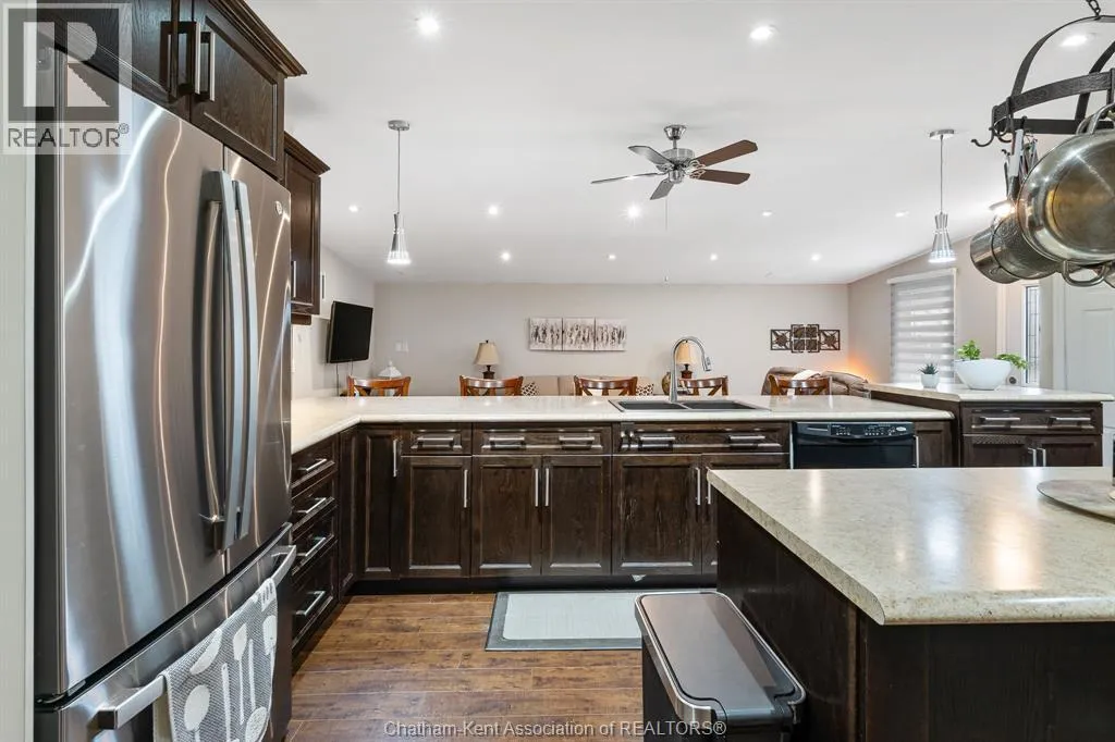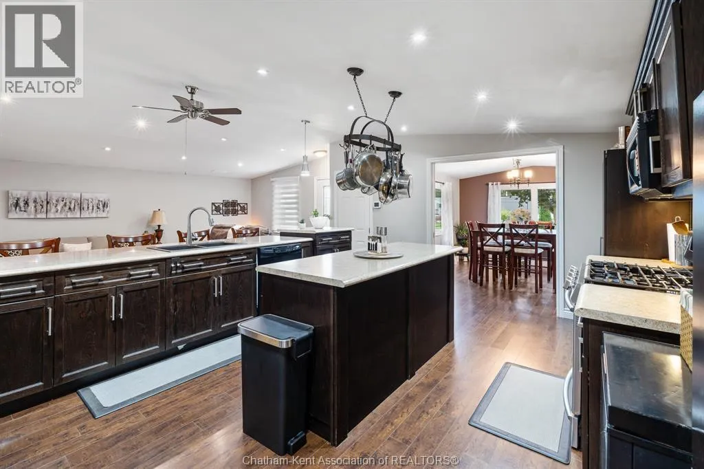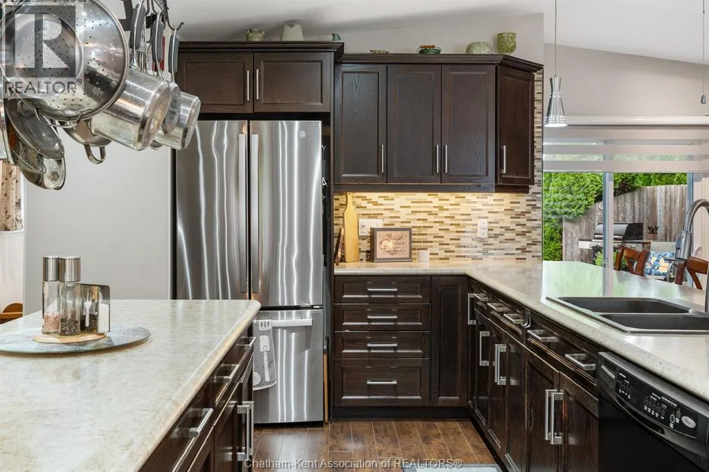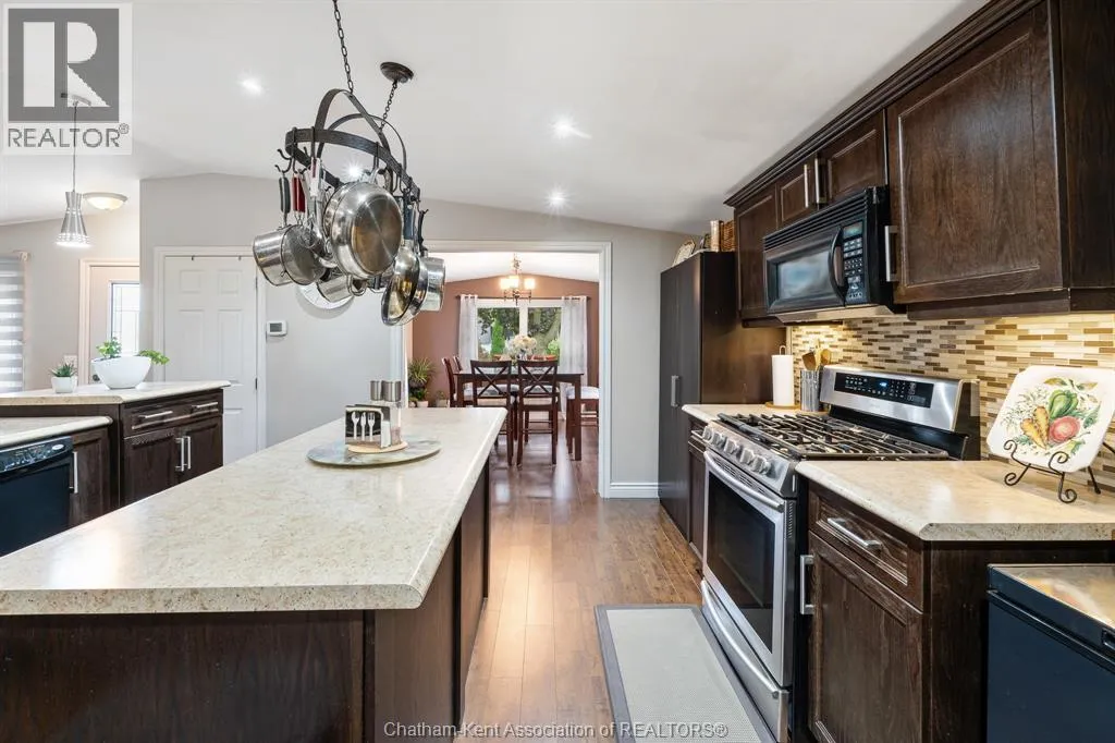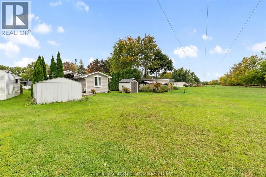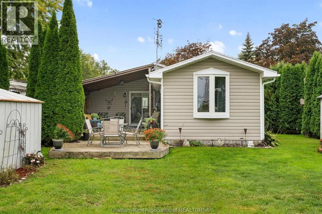 turn east onto Regency Dr. from St Clair St. Property is located on left side Welcome to an exquisite home nestled on a serene Greenbelt lot in St. Clair Estates. This move-in-ready residence boasts a breathtaking custom kitchen featuring under-counter lighting, an inviting island, and an elegant backsplash that flows effortlessly into the spacious open-concept family room. Large patio doors lead to the backyard, creating an ideal setting for outdoor entertaining and relaxation. Inside, you'll find a well-appointed 3-piece bathroom complete with a luxurious walk-in ceramic shower and convenient laundry facilities. The versatile layout offers the potential to transform the dining room into a second bedroom to suit your needs. Outside, the property is adorned with beautiful landscaping and a private covered deck, perfect for enjoying peaceful moments. Recent upgrades include a new hot water on demand system installed this year. Additional highlights consist of two storage sheds and a gas BBQ hookup, providing both practicality and comfort. Please note that park approval is required, with a monthly land rental fee of approximately $433.27, which covers taxes, garbage pickup, and snow removal on the road. Donât miss your chance to experience comfortable and convenient living in this exceptional homeâcall today to schedule your private viewing! (id:27476)