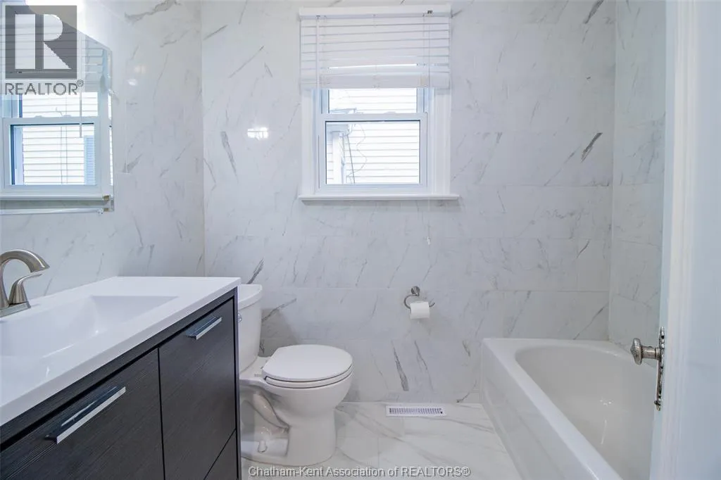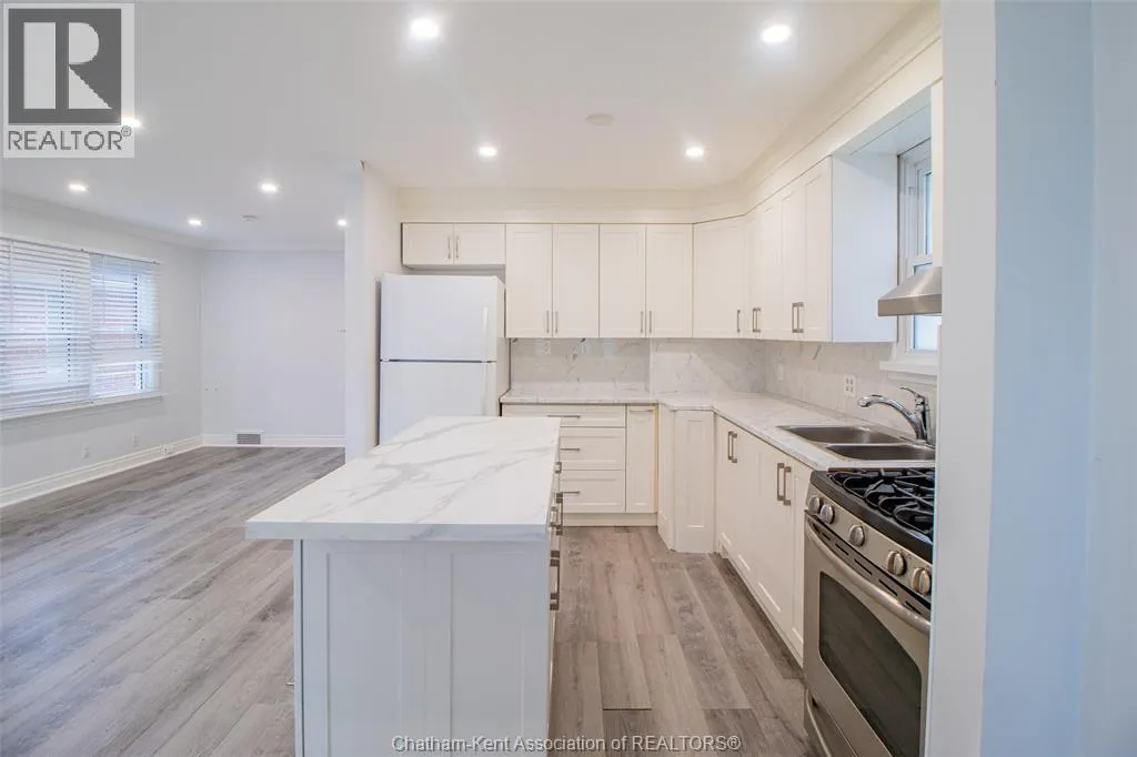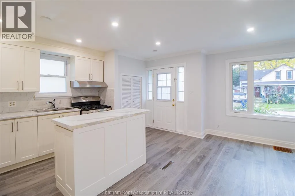 Welcome Home! This charming brick bungalow is the perfect place to start your homeownership journey. Featuring 2+2 bedrooms and 2 full bathrooms, this move-in ready home is located in a quiet, family-friendly neighborhood on Chathamâs north side. Youâll love the bright, open-concept layout, ideal for family time or entertaining friends. The modern kitchen offers plenty of cabinet space and a convenient island that connects seamlessly to the dining and living areas. Two comfortable bedrooms with a stylish 4-piece bathroom complete the main floor. Downstairs is a fully finished basement with its own side entrance provides extra living space - perfect for a rec room, home office, or guest suite along with a 3-piece bath, two more bedrooms and plenty of storage. Outside enjoy a private, fully fenced backyard with a spacious patio, perfect for BBQs or relaxing after a long day. A detached garage adds even more value for parking or hobbies. Just some updates include, baths, kitchen, flooring, Central Air (2025) - Close to schools, parks, and everyday amenities, this charming bungalow offers comfort, convenience, and affordability truly a great opportunity! (id:27476)