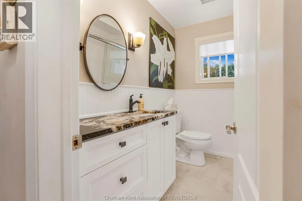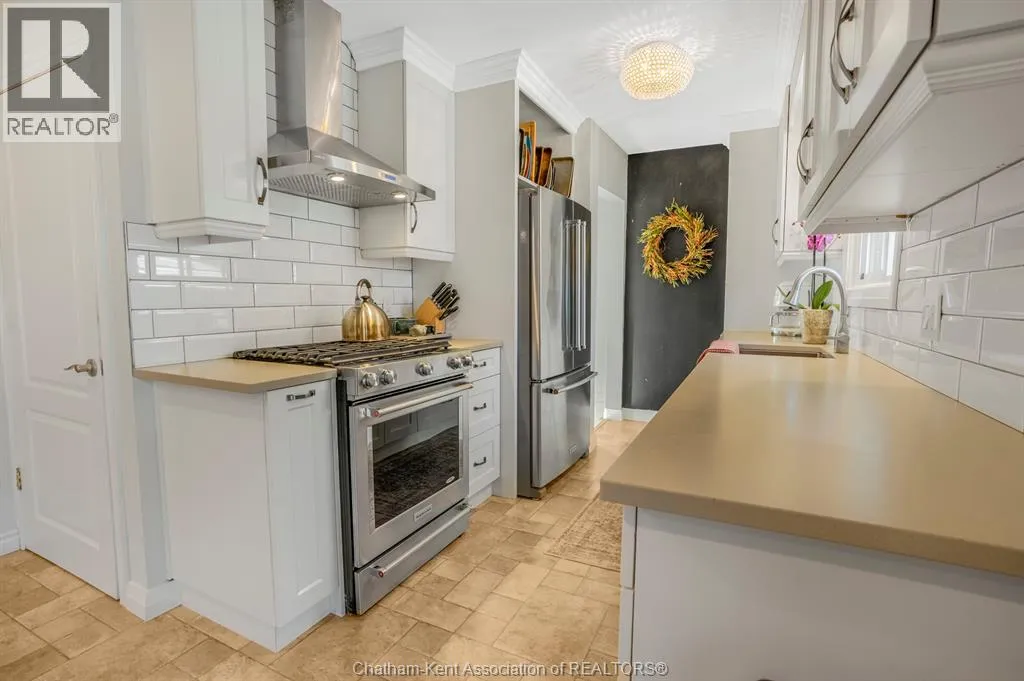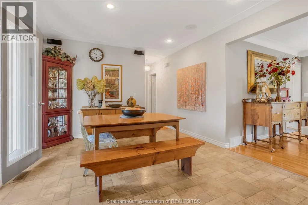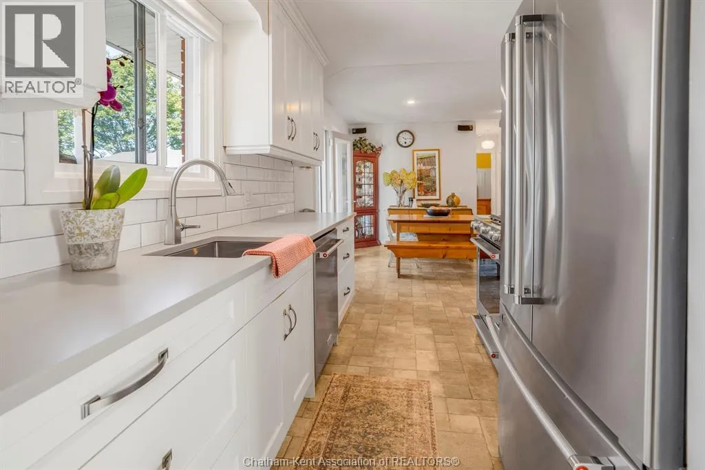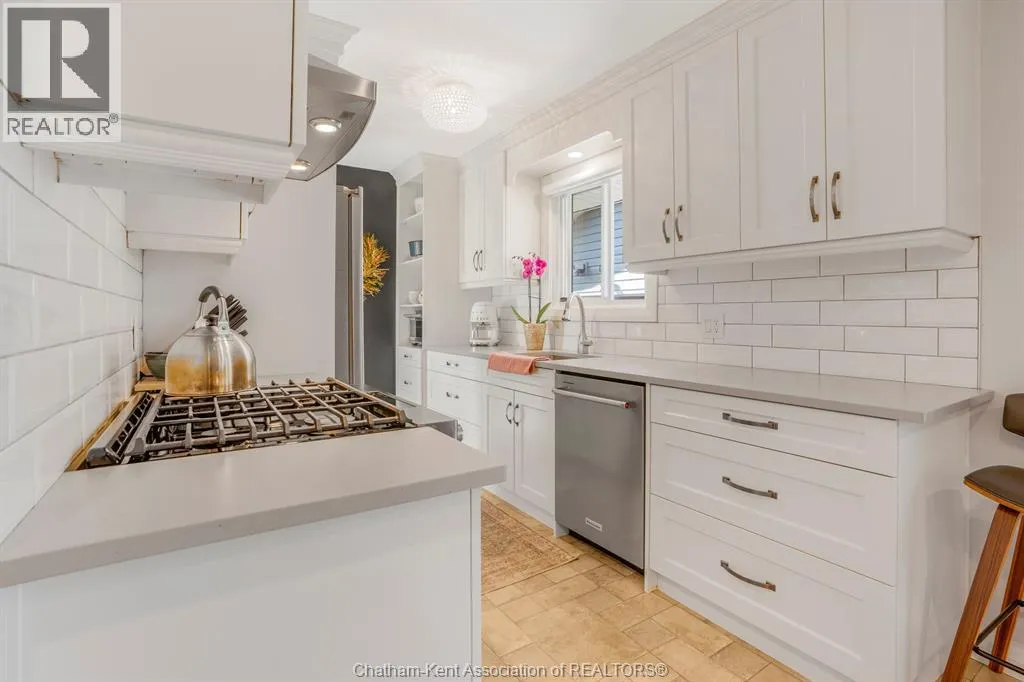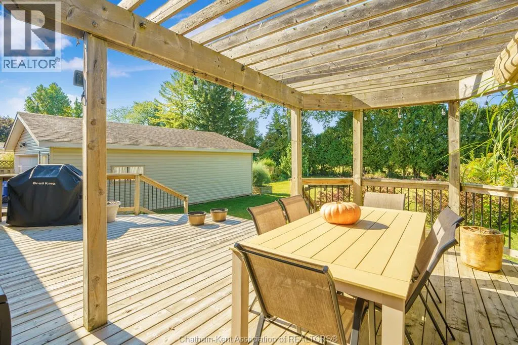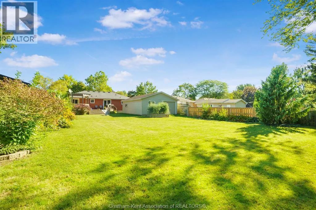South on Sylvester Dr, Left onto Heather dr, House is on the right. Welcome to this beautifully updated brick rancher located on Chathamâs desirable Southside, just minutes from walking paths, grocery stores, the golf course, and easy access to Highway 401. This charming home sits on a massive fully fenced yard, offering plenty of space to relax, garden, or entertain. Enjoy outdoor living on the large deck and semi-covered patio, perfect for summer evenings or weekend barbecues. A detached double car garage provides ample parking and storage. Inside, the main level features 2 bedrooms, including a very spacious primary, and an open-concept kitchen and dining area with gorgeous white cabinetry. The cozy gas fireplace adds warmth and charm to the living space, creating a comfortable and inviting atmosphere. The finished basement offers even more living space, with a rec room and a possible additional bedroom â ideal for guests, a home office, or hobbies. Situated on a quiet street in a great neighbourhood, this home has been updated throughout and is completely move-in ready. Just unpack and enjoy easy, modern living in one of Chathamâs most convenient locations! (id:27476)